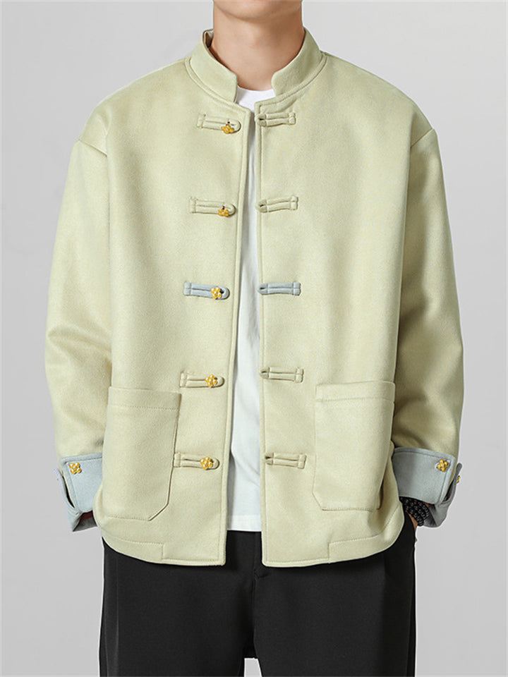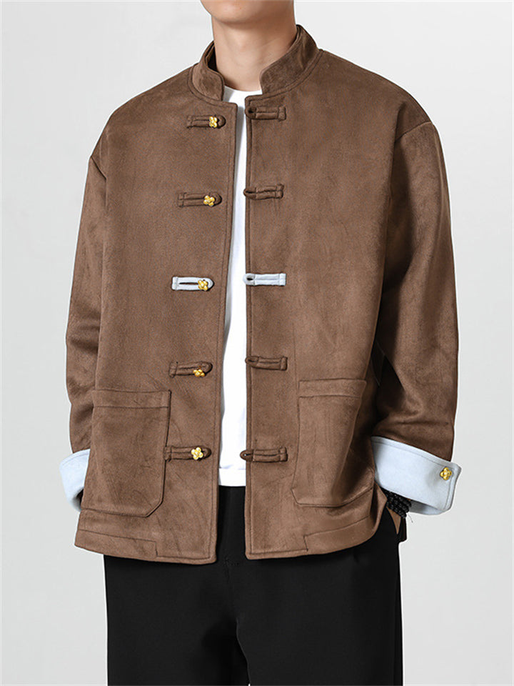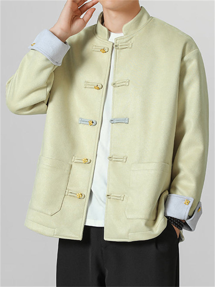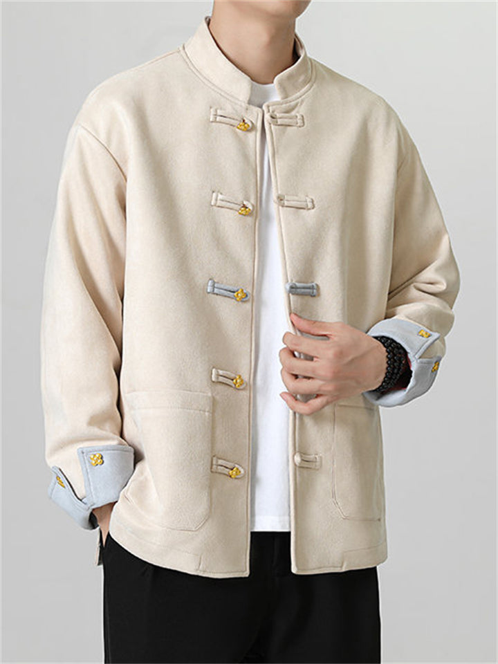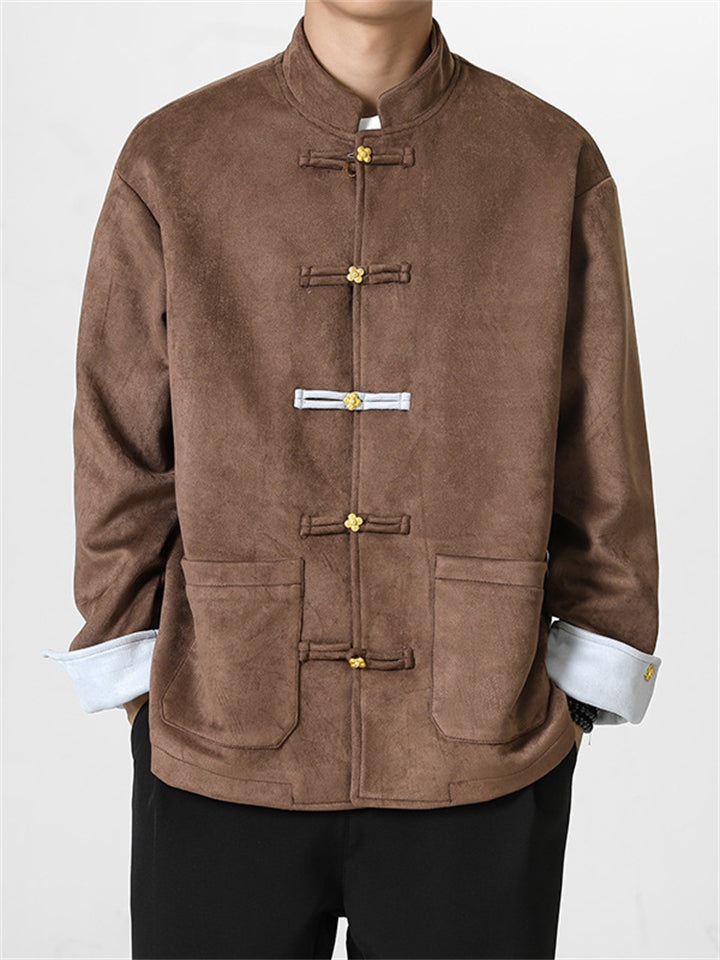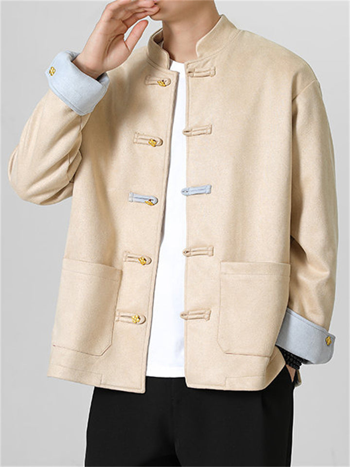 Men's Autumn Chinese Style Corduroy Contrast Color Tangsuit Jackets