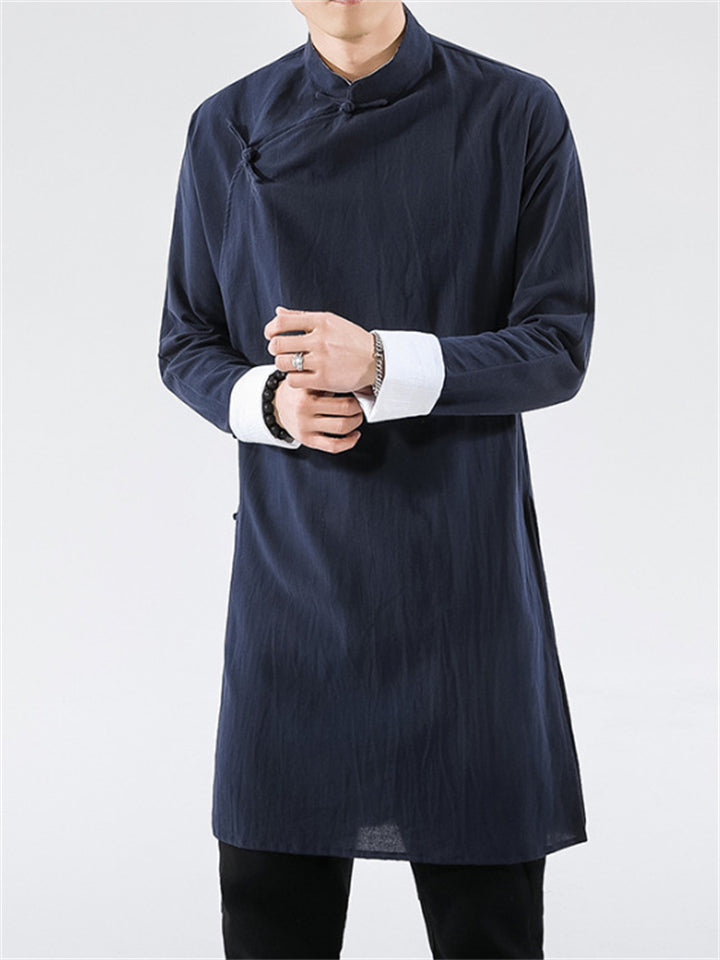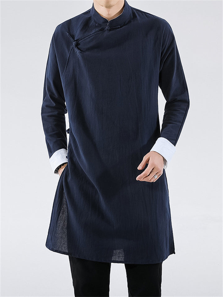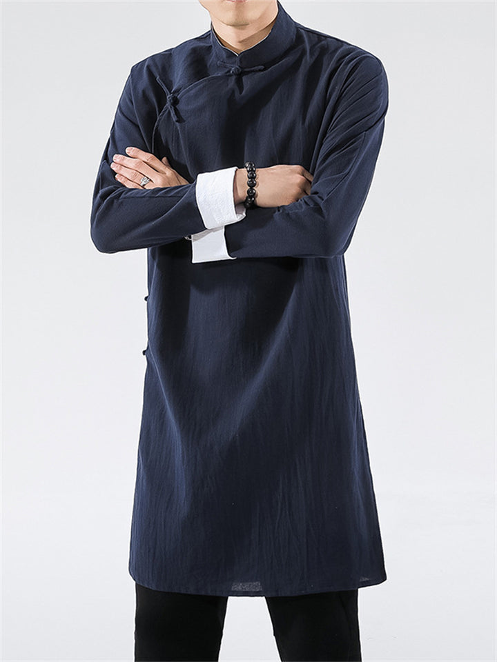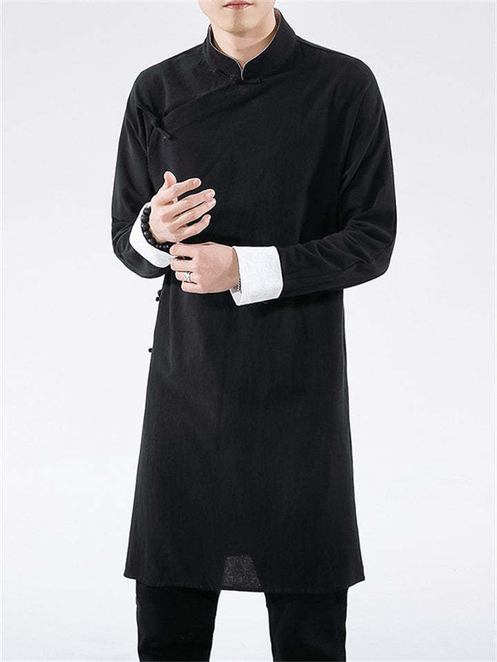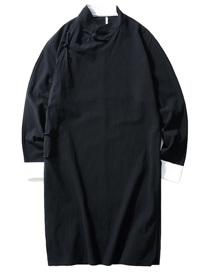 Men's Autumn Chinese Zen Style Black Long Sleeve Cardigan Jackets