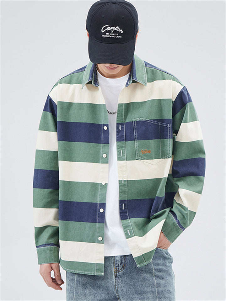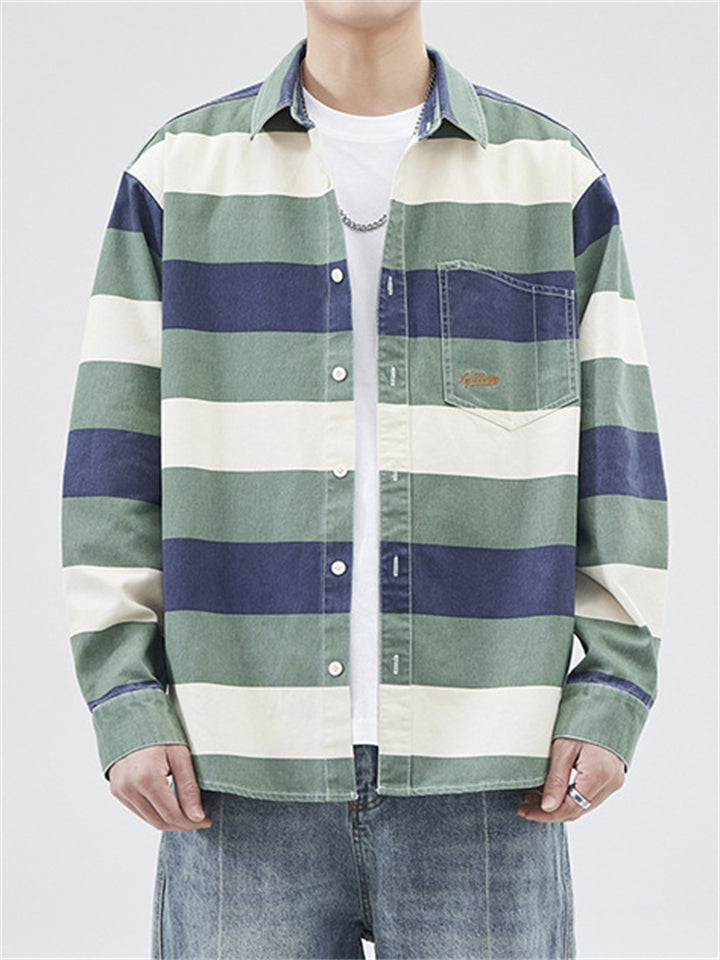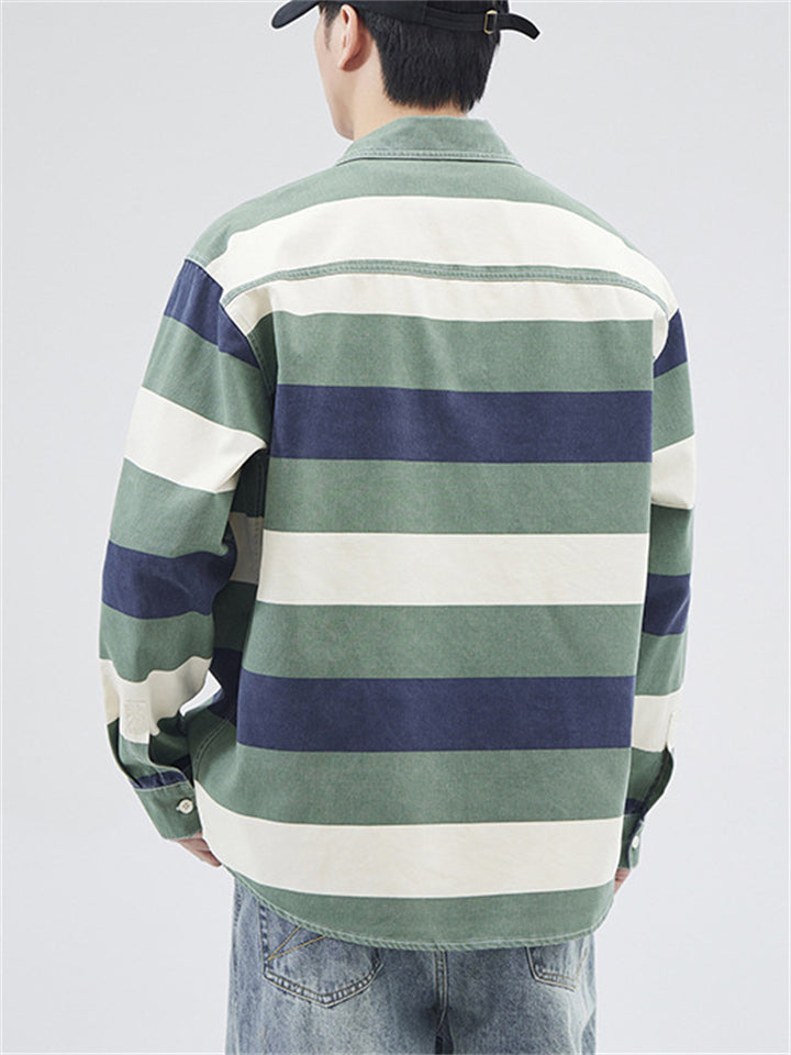 Men's Lapel Contrast Color Striped Button Up Jackets