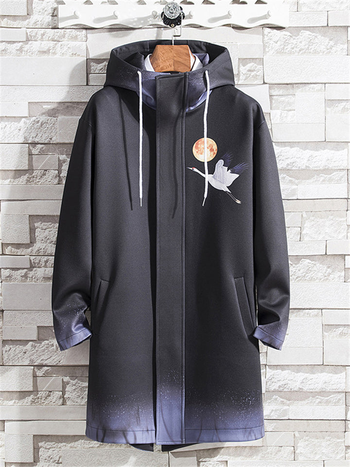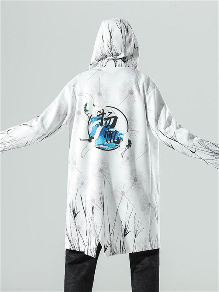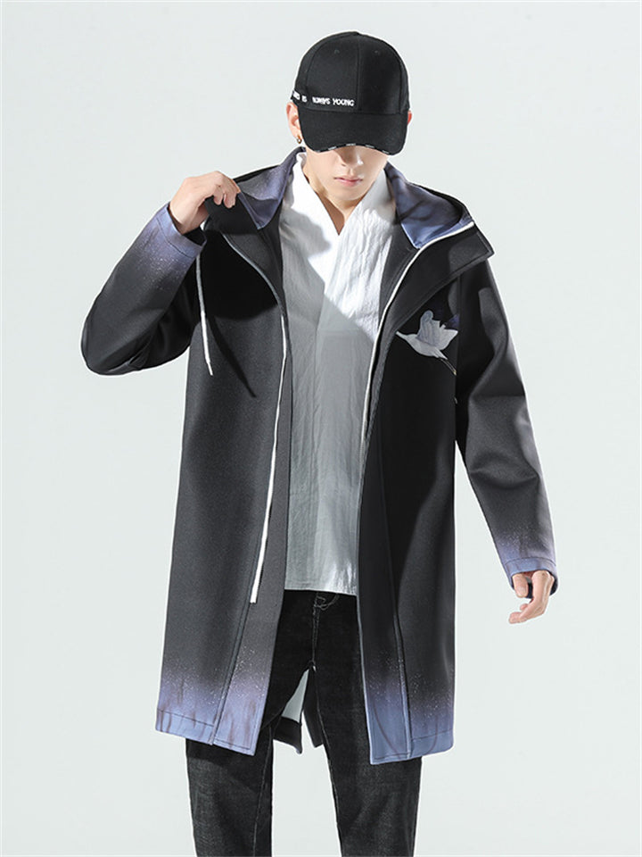 Men's Chinese Style Black Jacquard Corduroy Hooded Cloak Robe Jackets