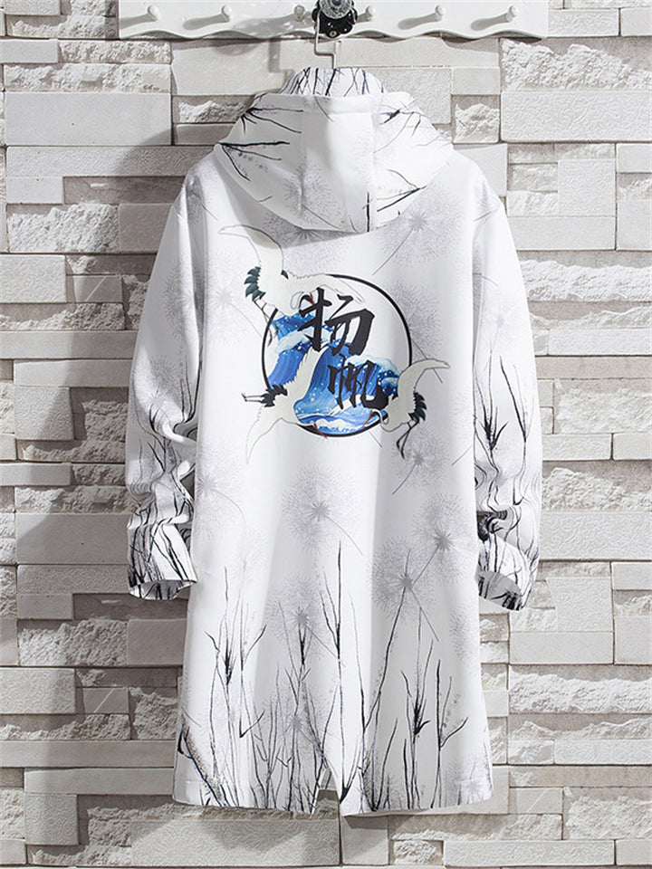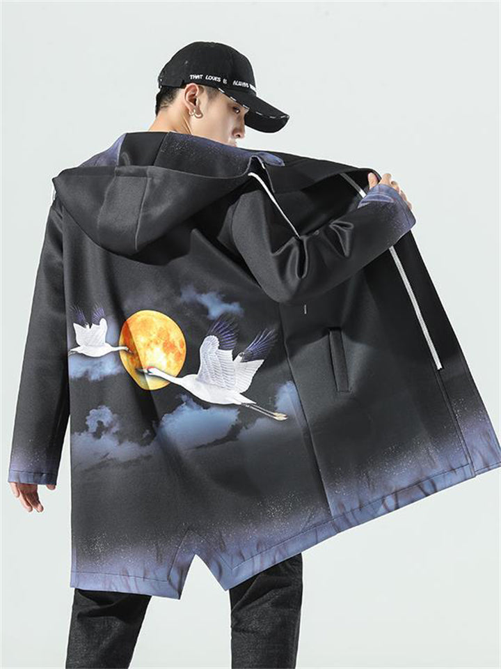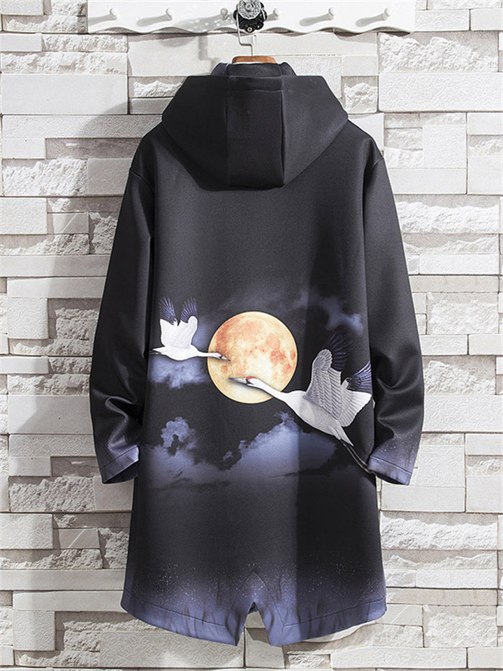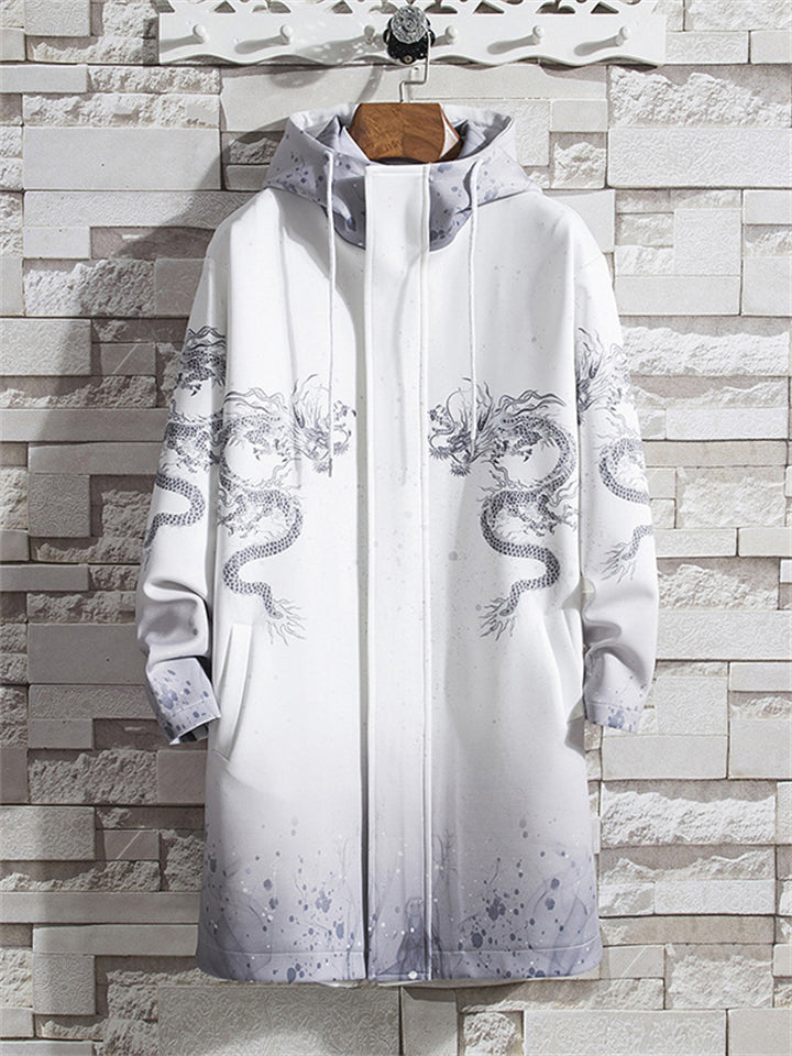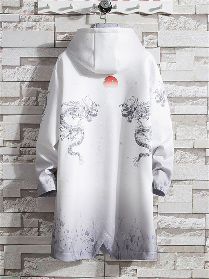 Men's Autumn Cartoon Loong Print Stand Collar Tangsuit Cardigan Jackets