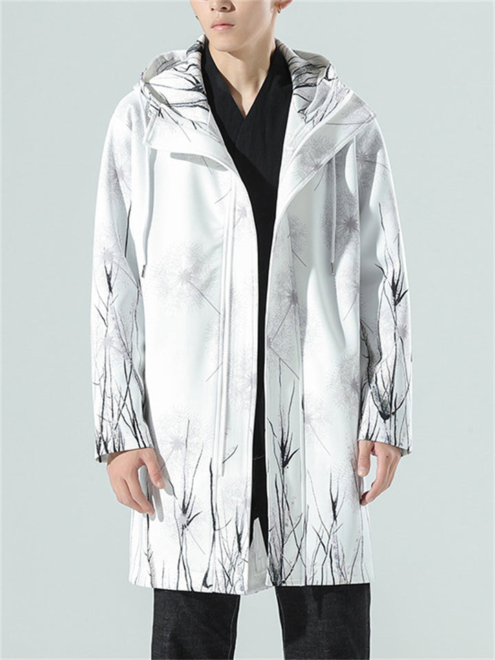 Men's Autumn Peaches Print Stand Collar Tangsuit Cardigan Jackets