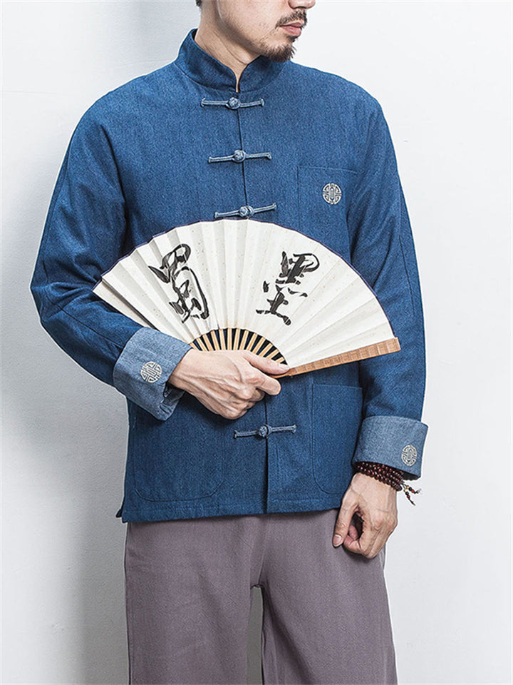 Men's Autumn Chinese Style Corduroy Contrast Color Tangsuit Jackets