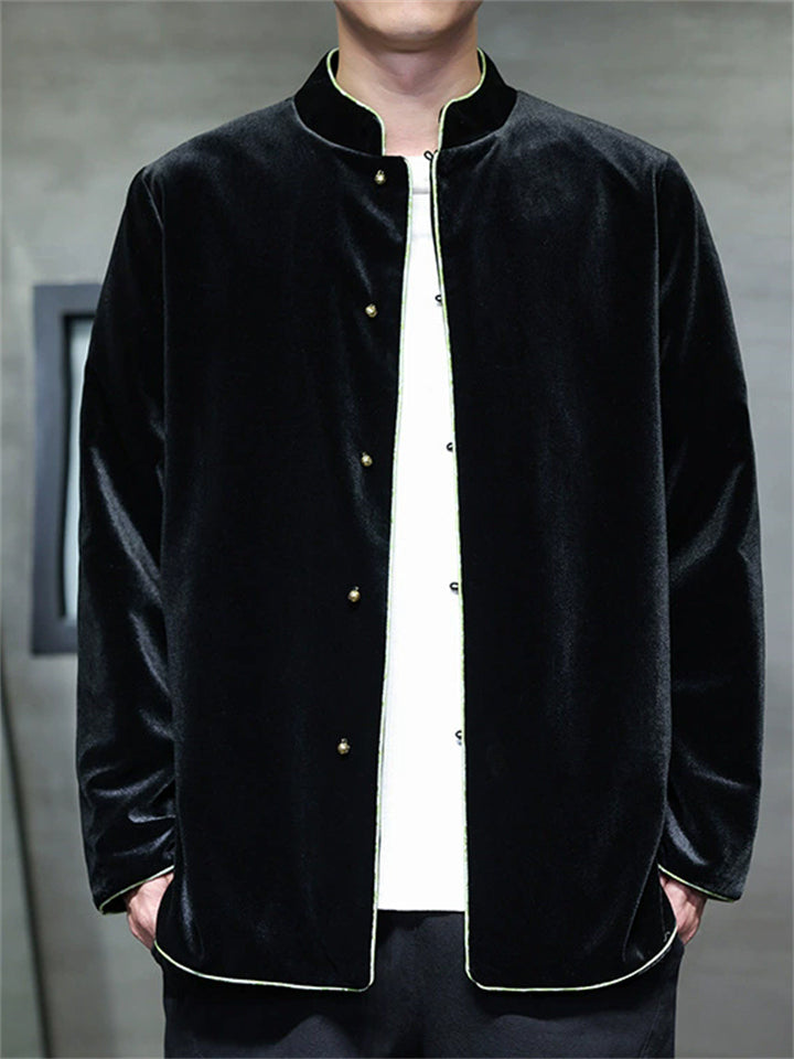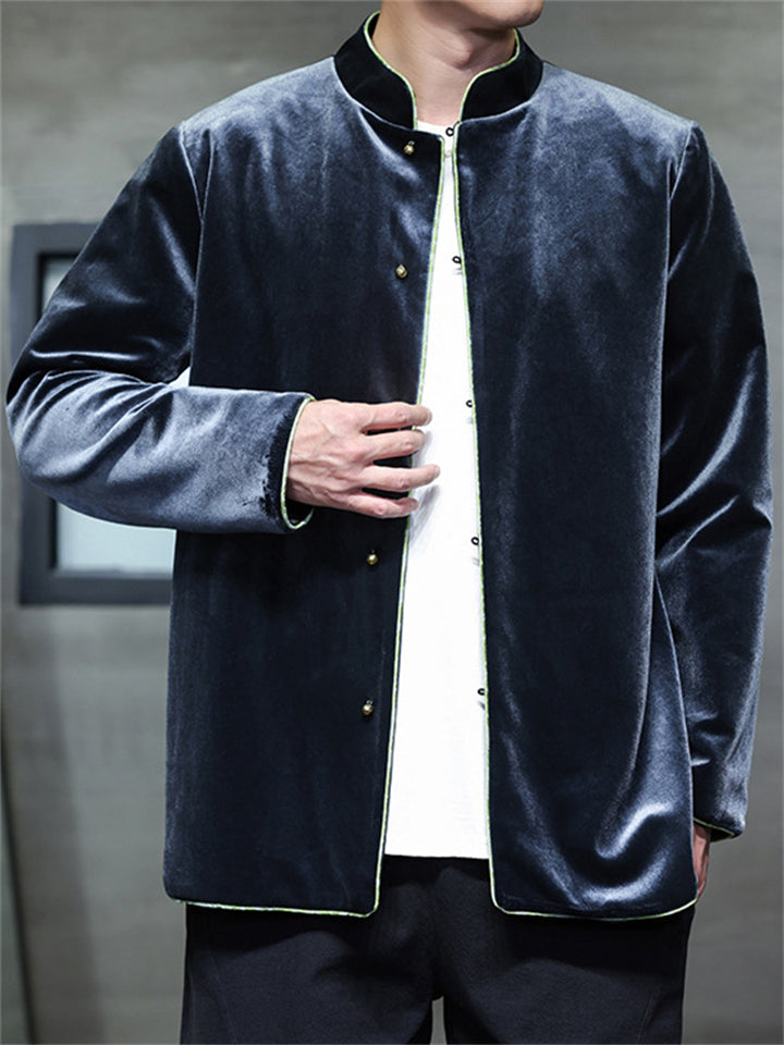 Men's Retro Chinese Style Autumn Velvet Contrast Trim TangSuit Jackets