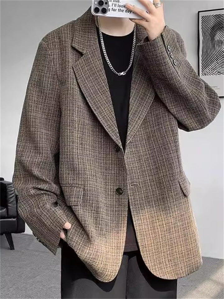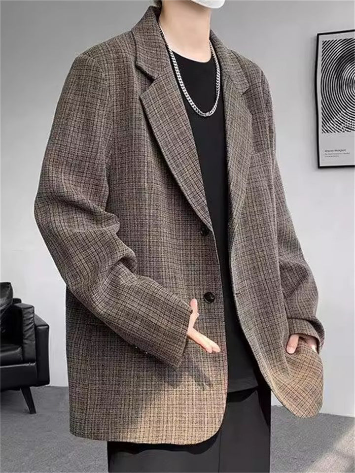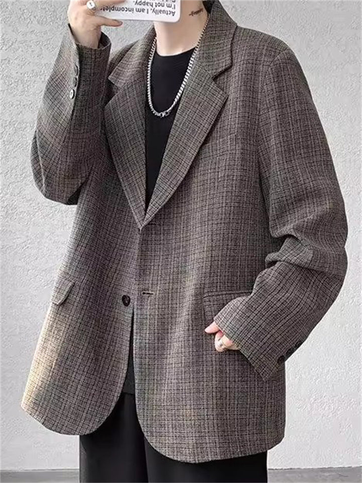 Men's Retro Loose Long Sleeve Single Breasted Plaid Suit Jacket