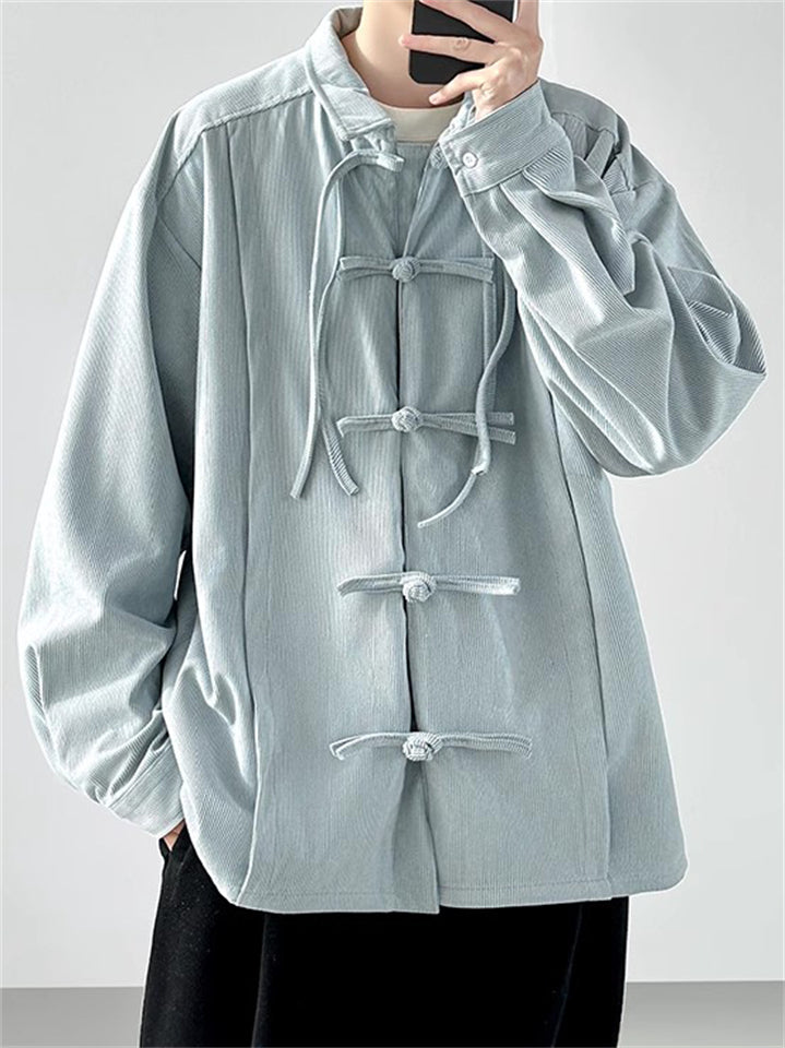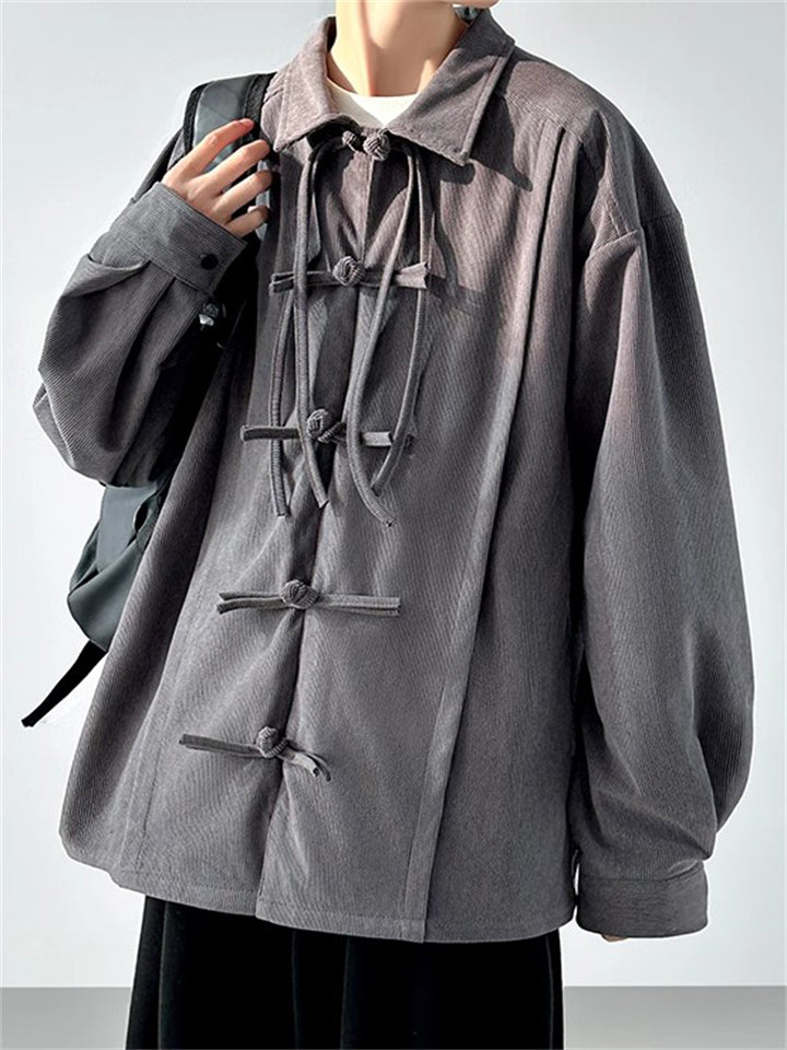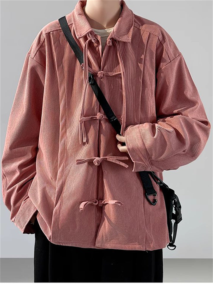 Men's Autumn Solid Color Corduroy Zen Style Lace Up Cardigan Jackets
