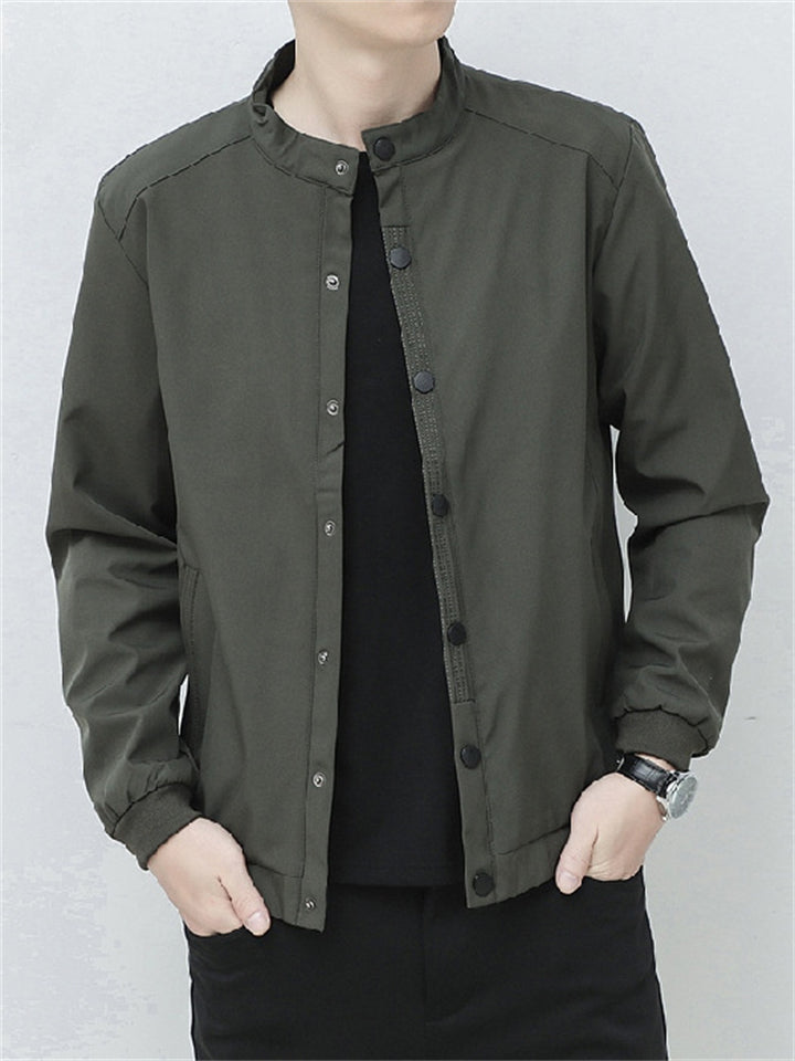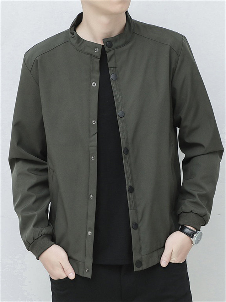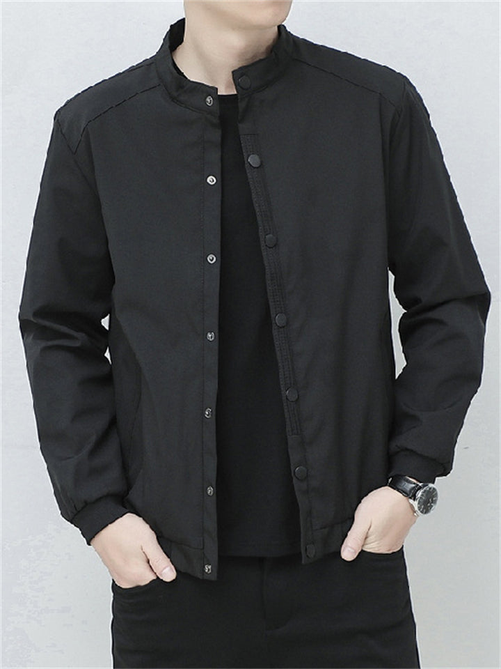 Men's Solid Color Stand Collar Waist Length Long Sleeve Jackets
