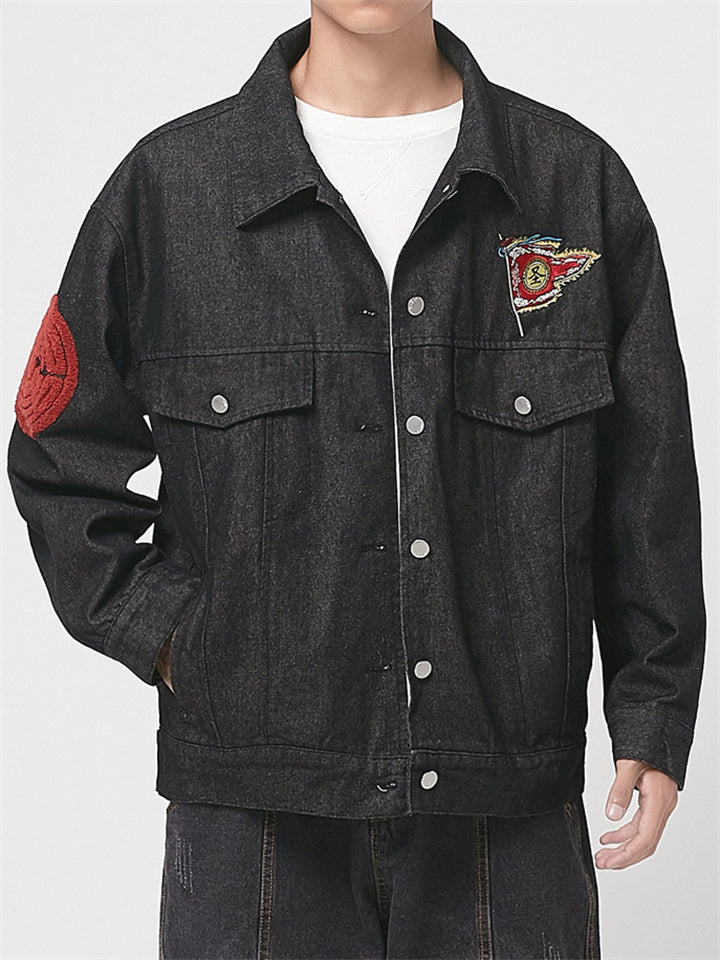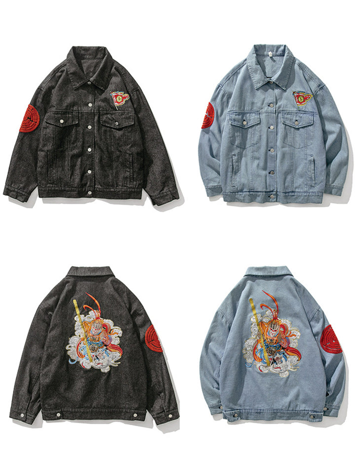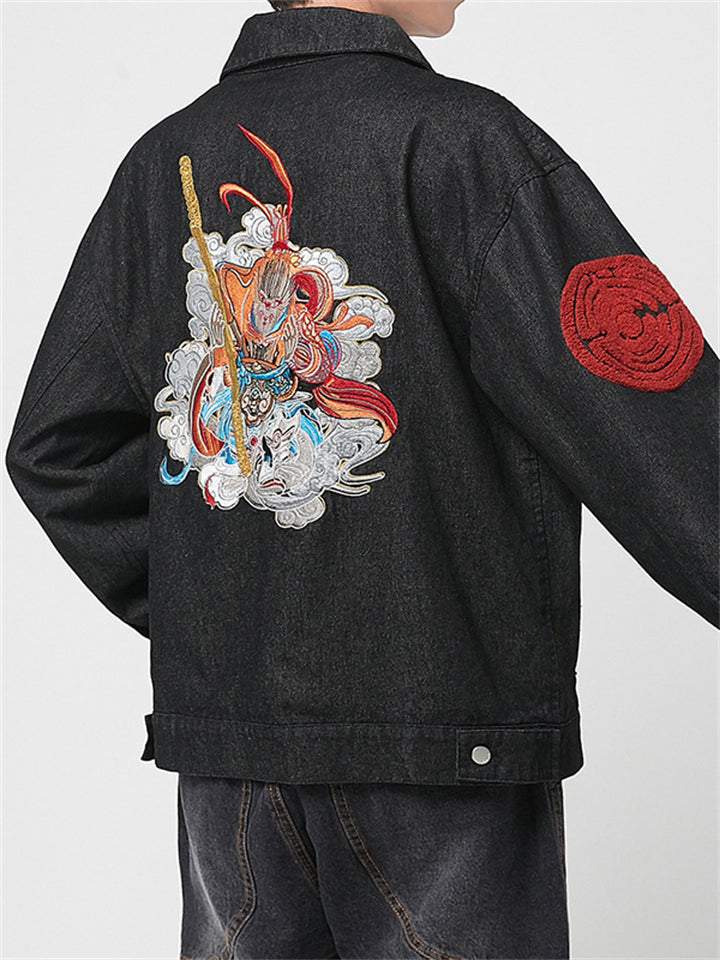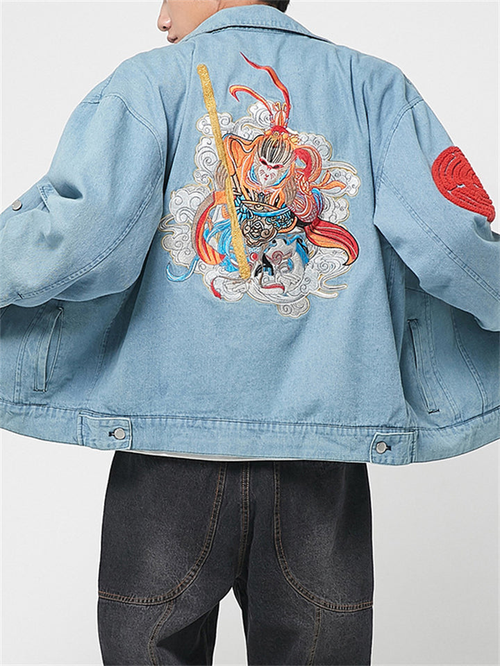 Men's Spring Autumn Monkey King Embroidery Trendy Lapel Jacket