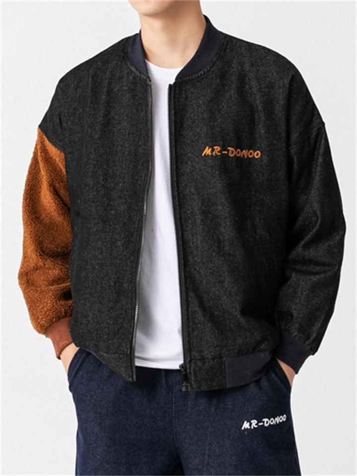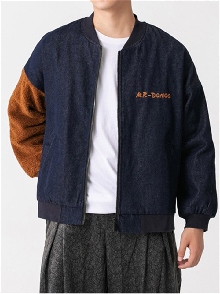 Men's Autumn Chinese Style Corduroy Contrast Color Tangsuit Jackets