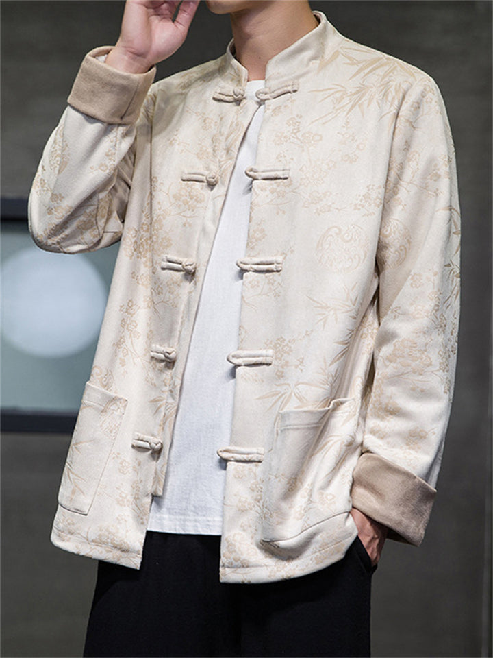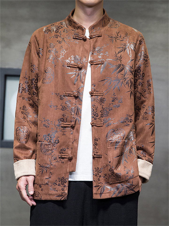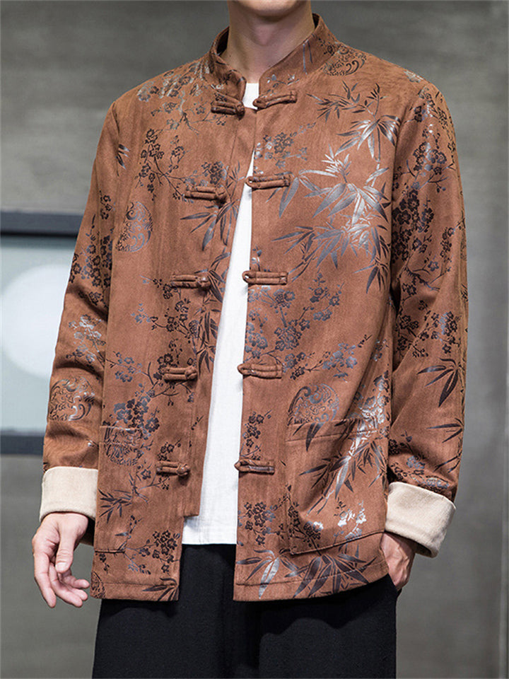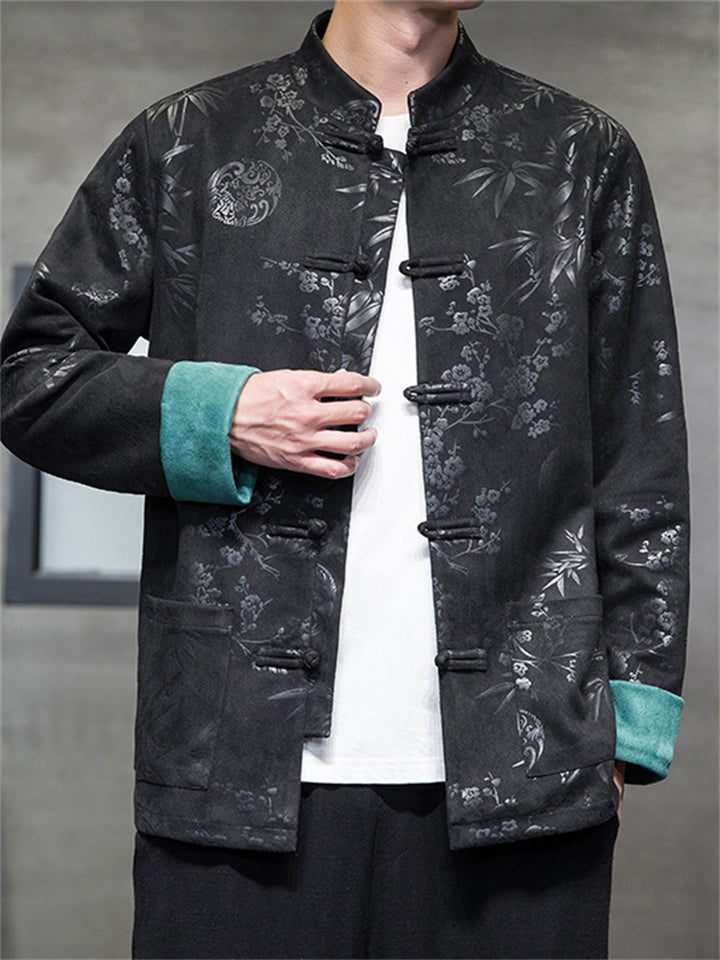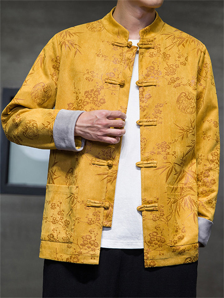 Men's Tang Suit Jacket with Plum Blossom Bamboo Leaf Print