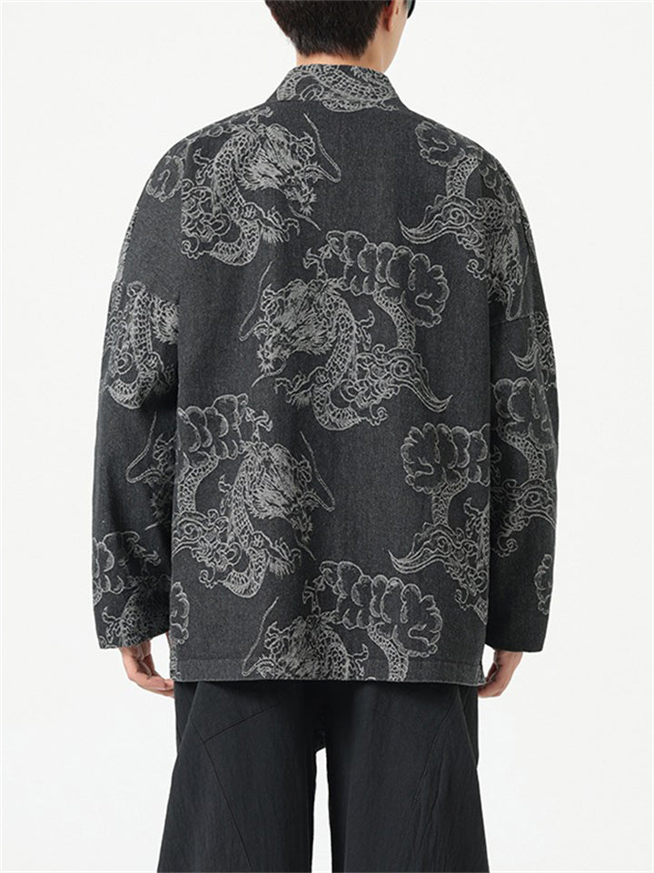 Men's Autumn Cartoon Loong Print Stand Collar Tangsuit Cardigan Jackets