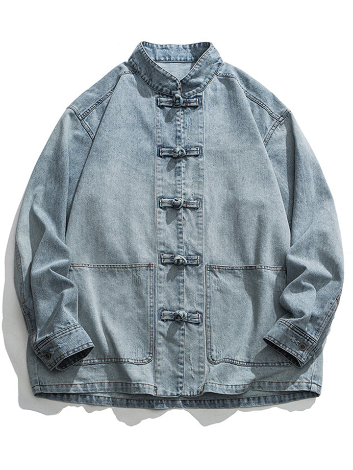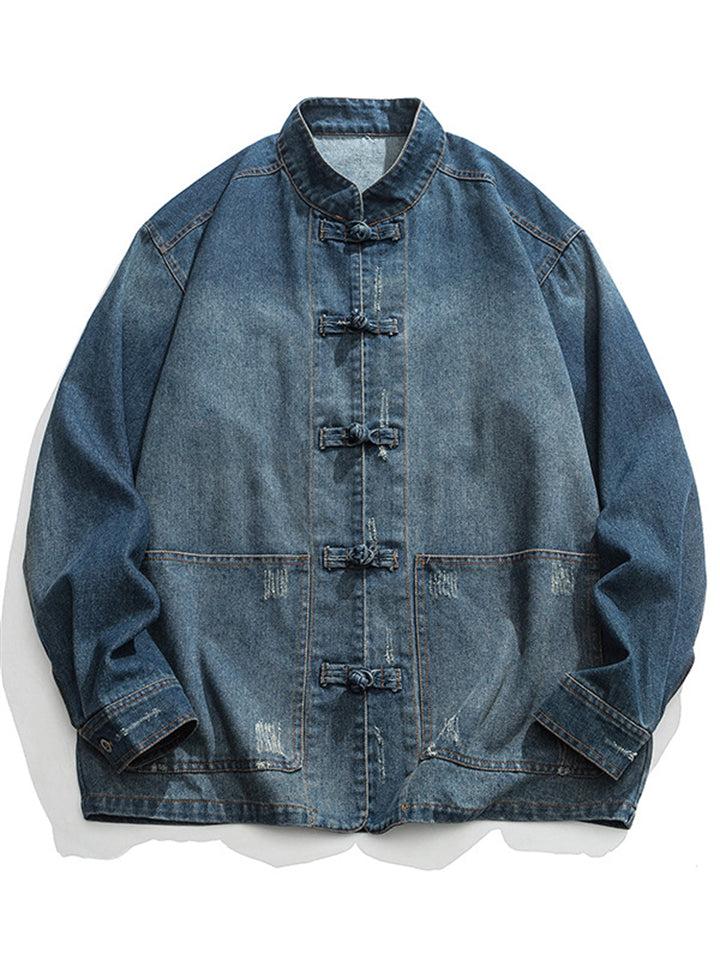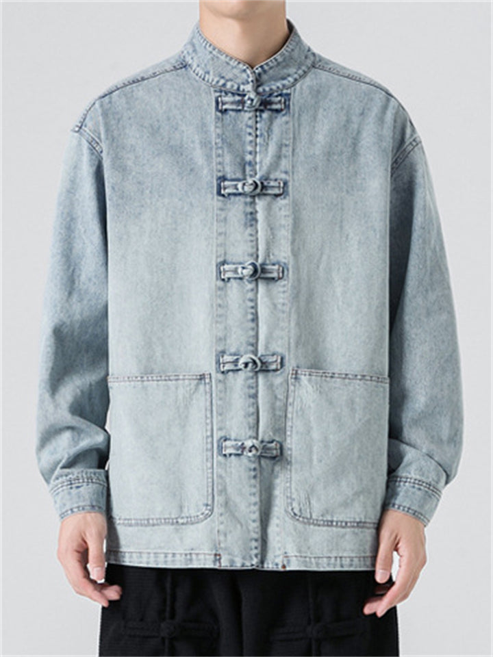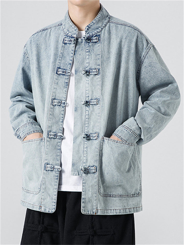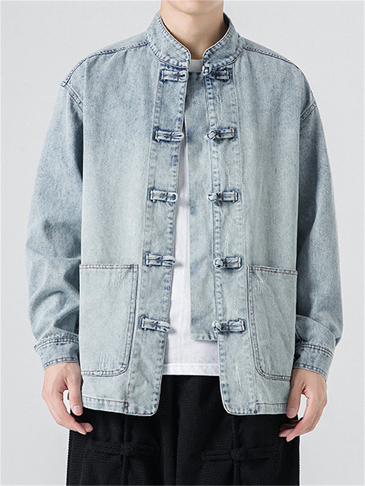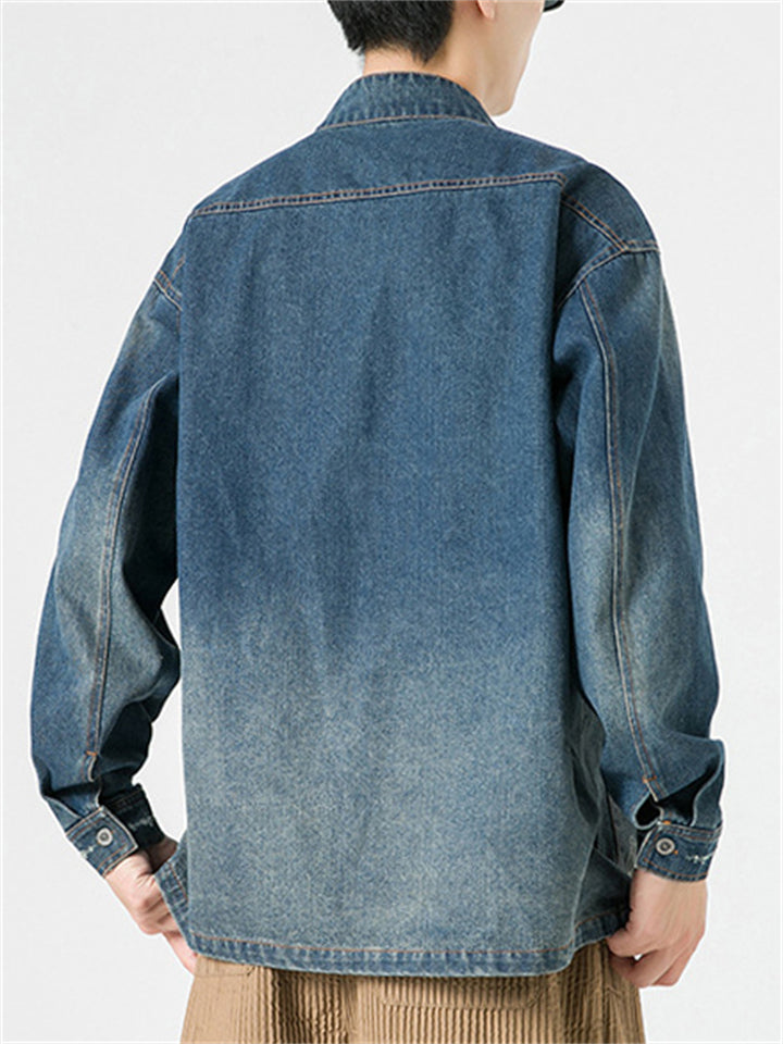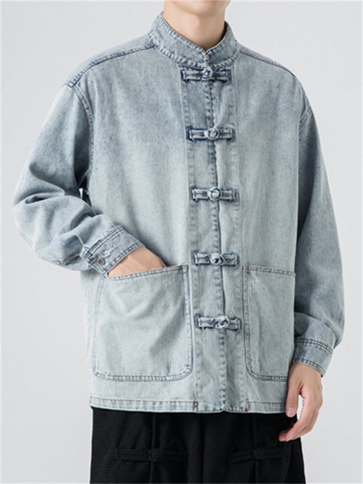 Men's Trendy Stand Collar Patch Pocket Washed Denim Jacket
