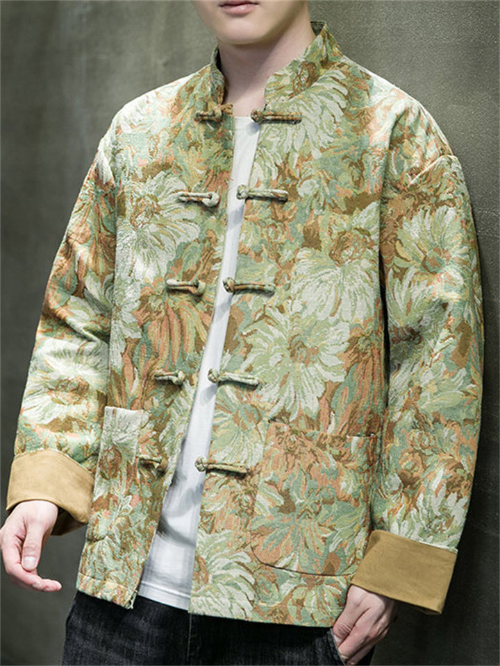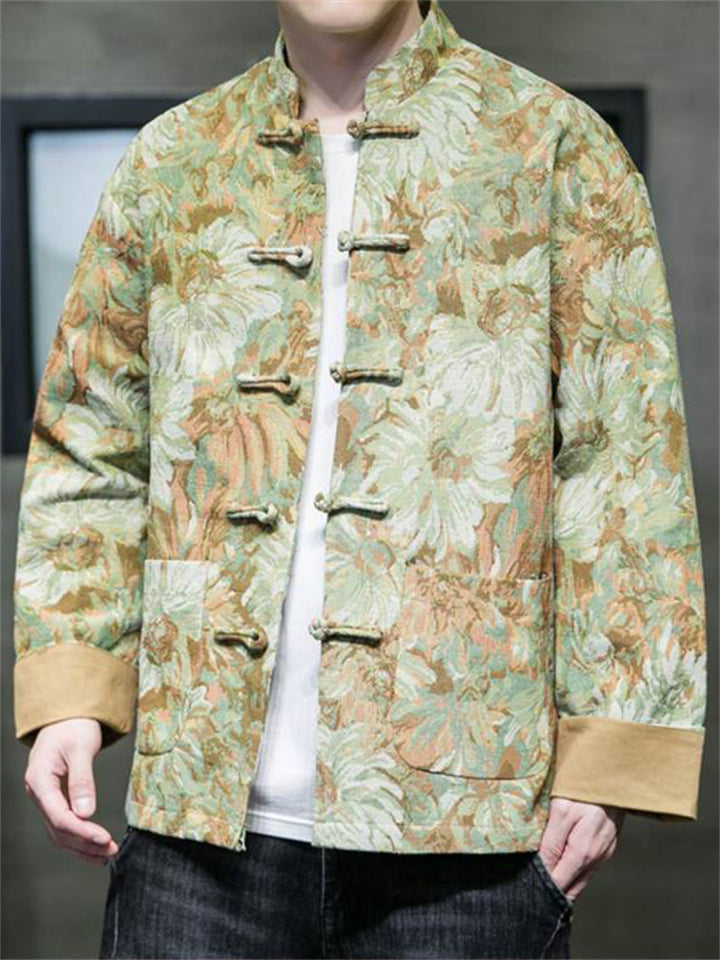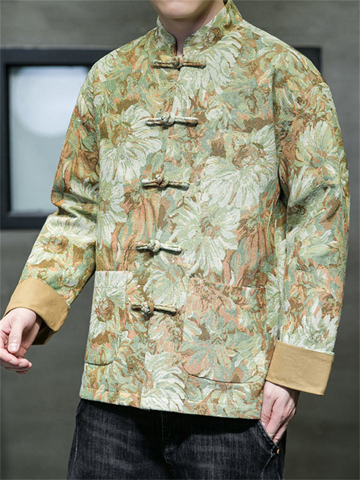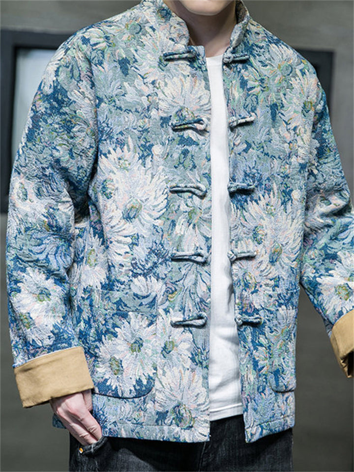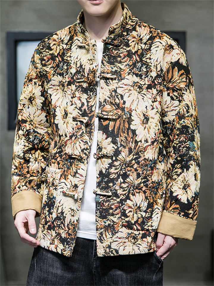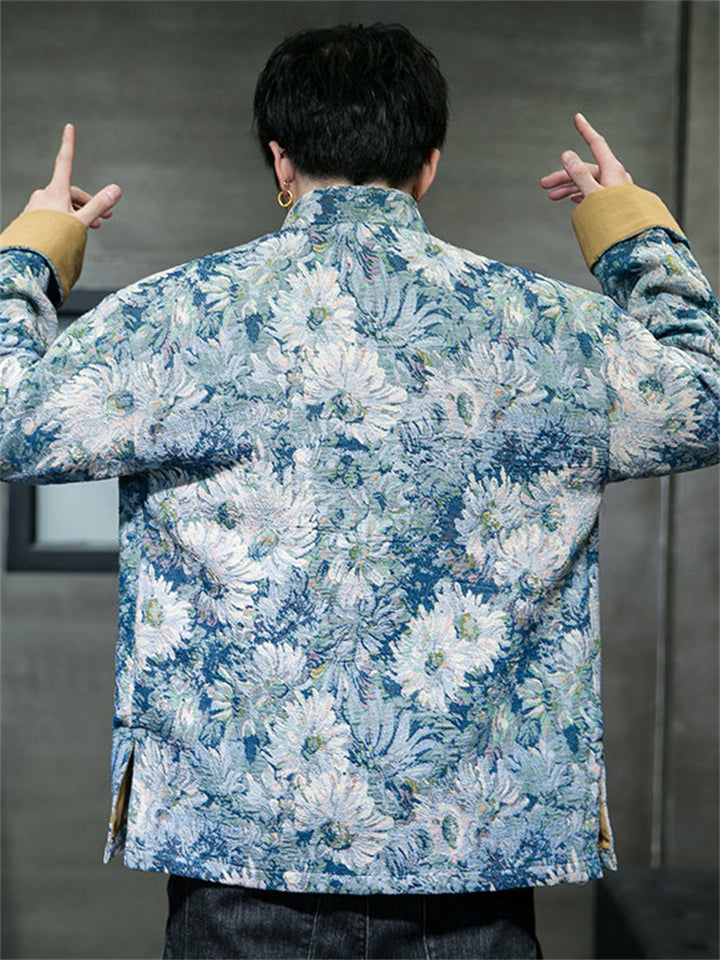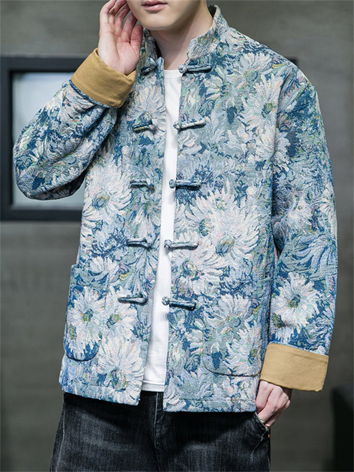 Men's Vintage Daisy Jacquard Long Sleeve Button Jacket