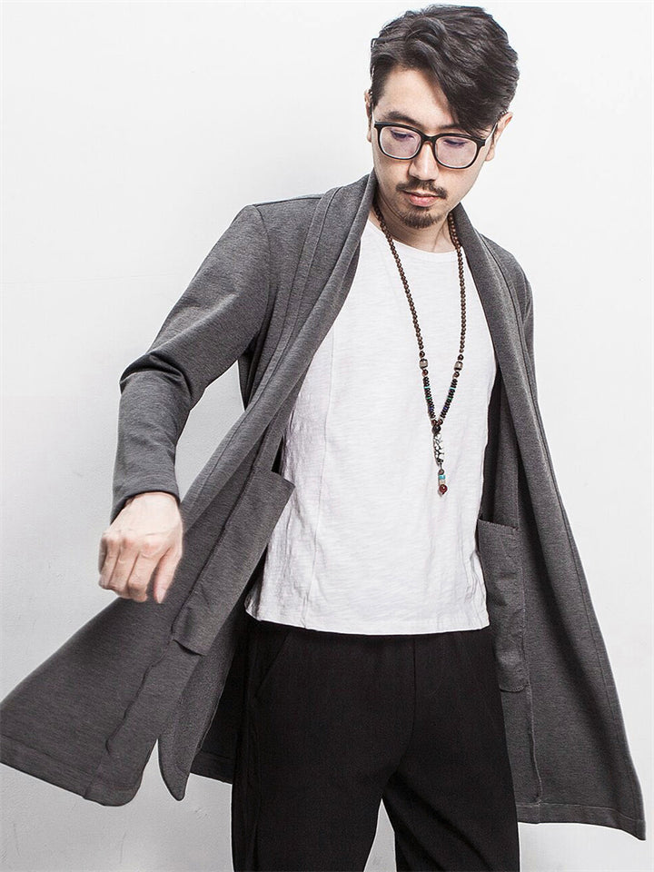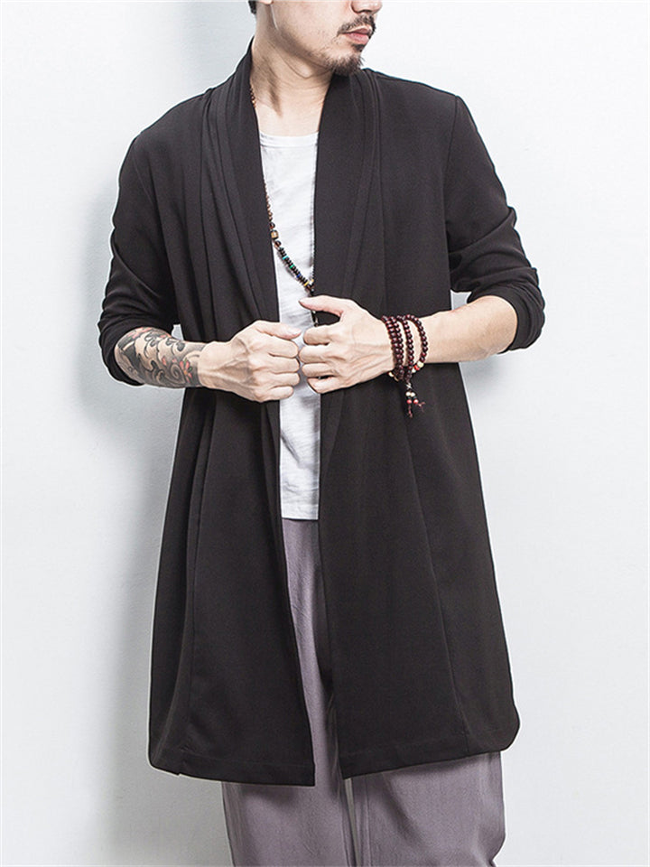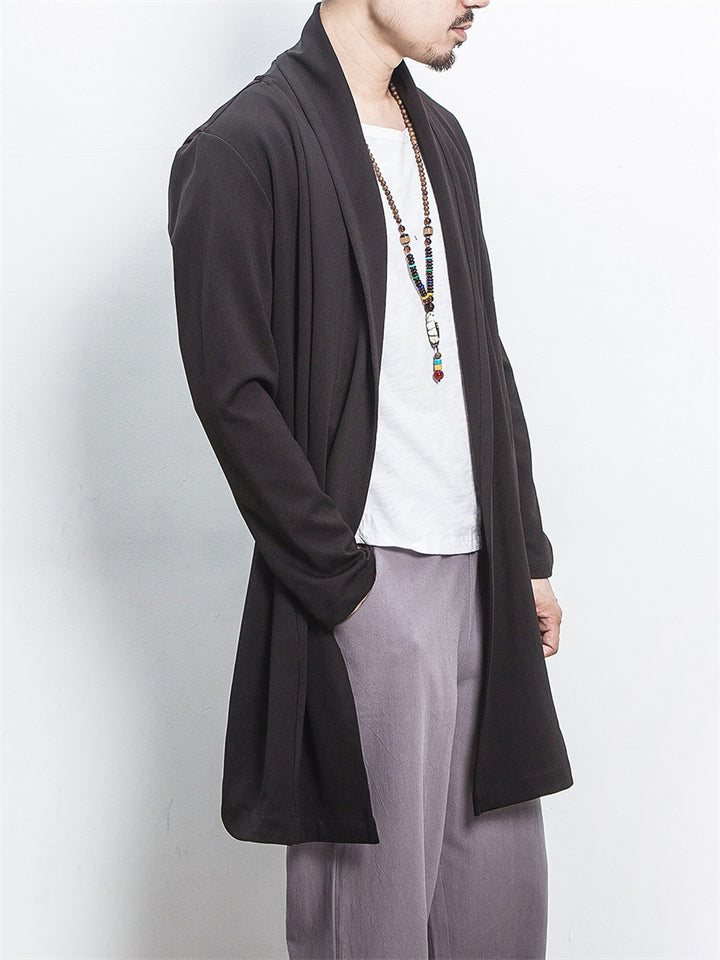 Men's Autumn Chinese Zen Style Black Long Sleeve Cardigan Jackets
