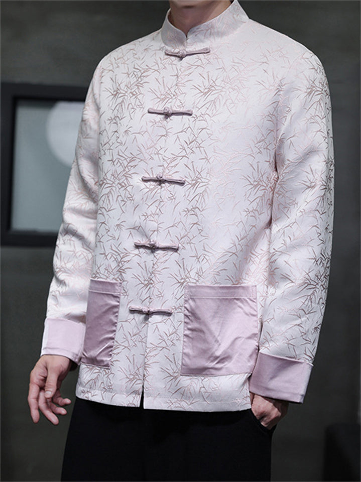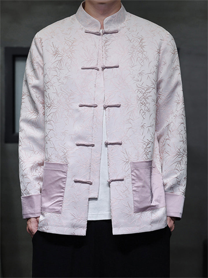 Oriental Style Bamboo Jacquard Casual Tang Suit Jacket for Men