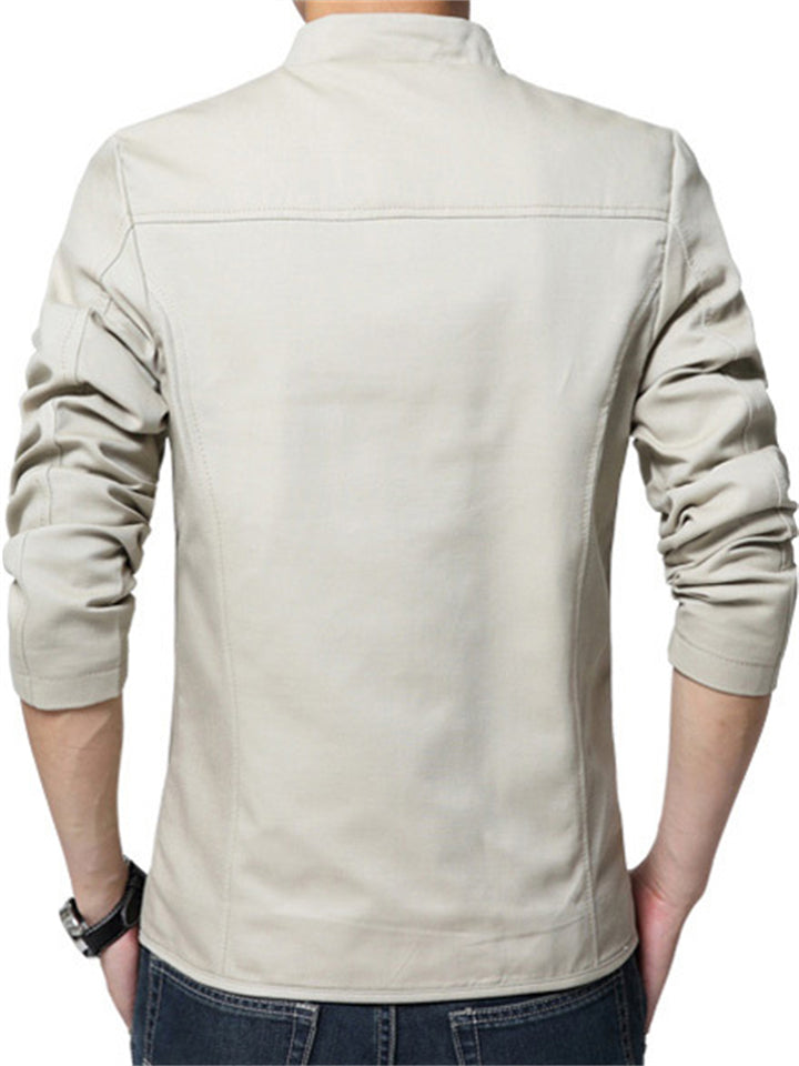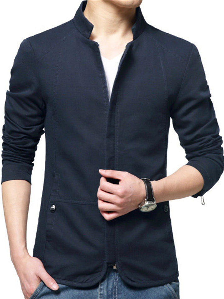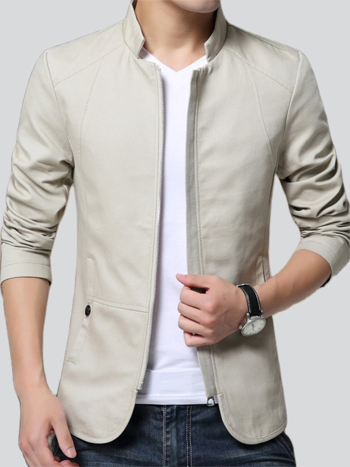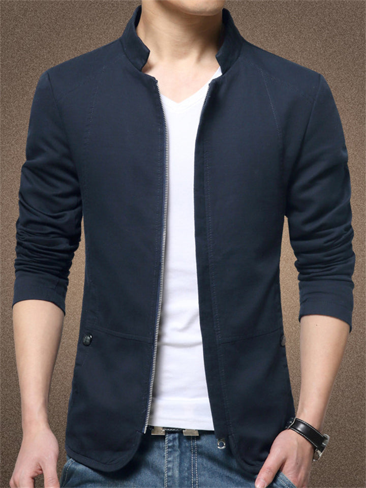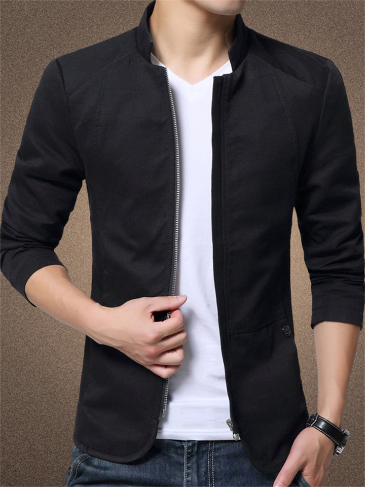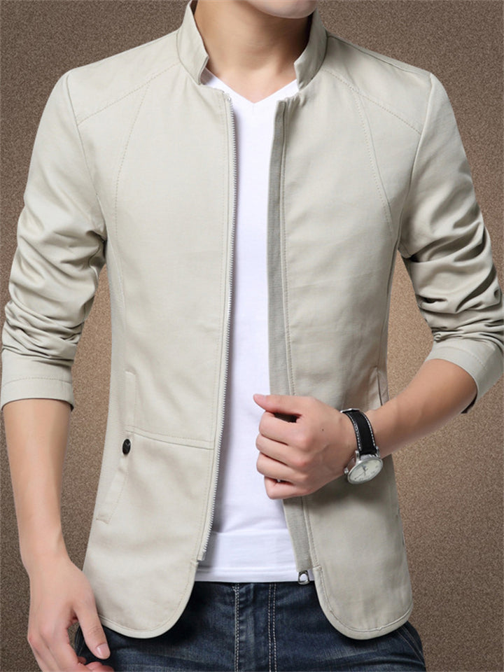 Plain Stand Collar Slim Fit Zipper Jacket for Men
