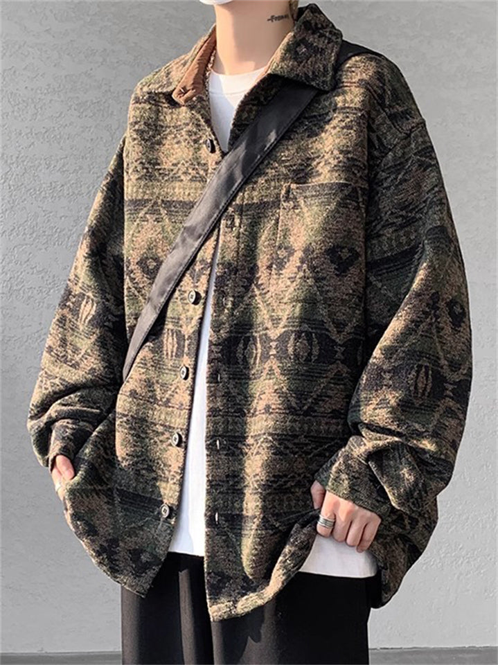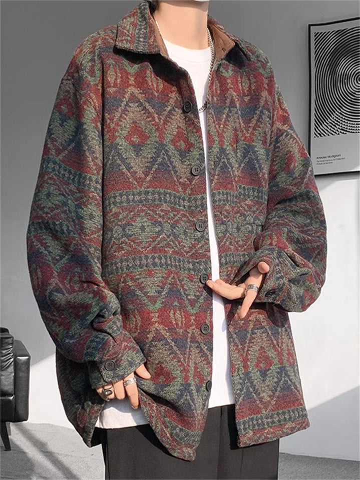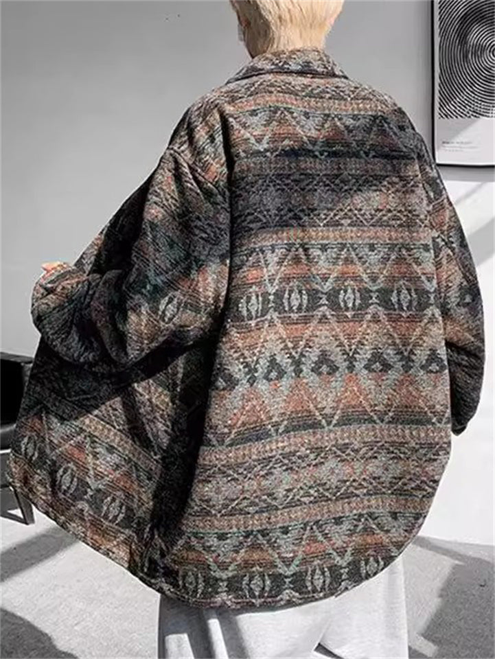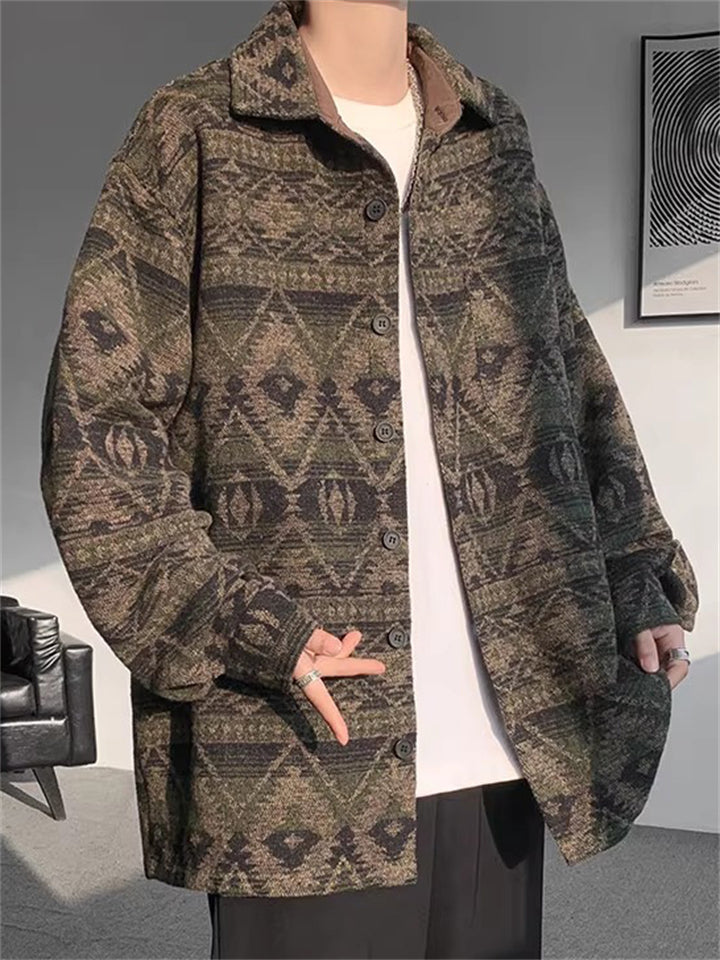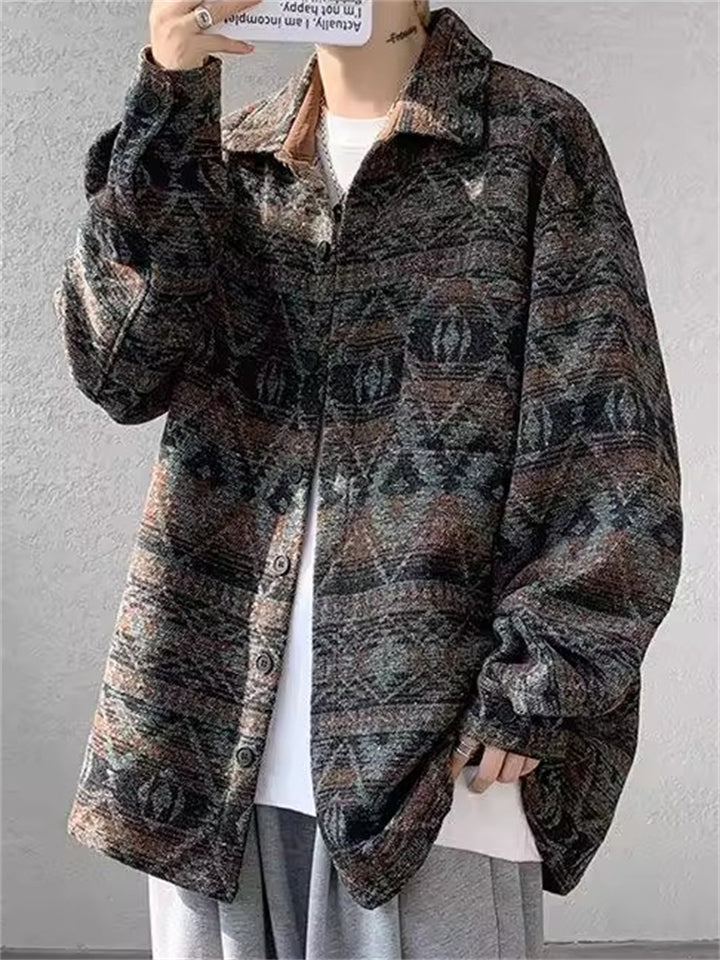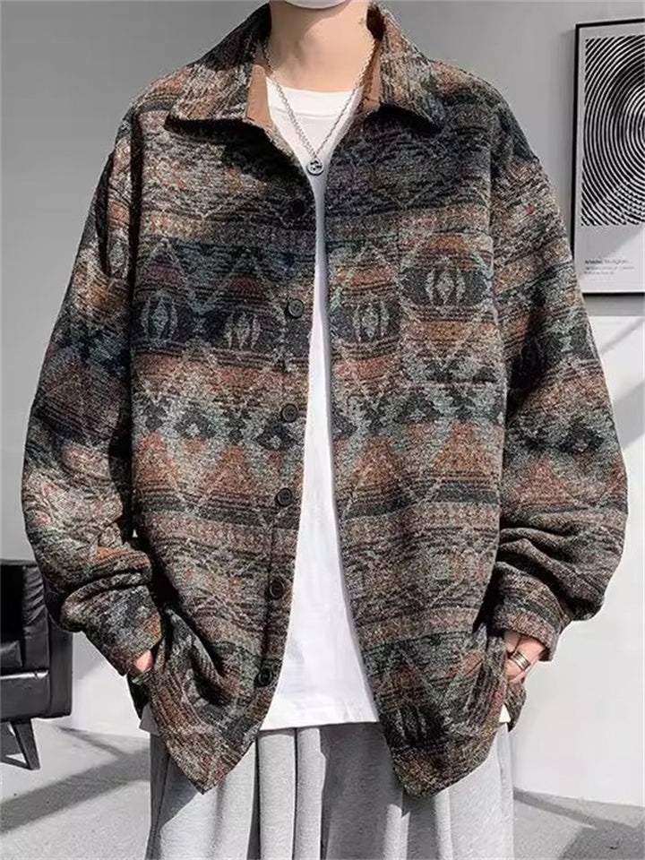 Plus Size Loose Long Sleeve Geometry Print Jackets for Men