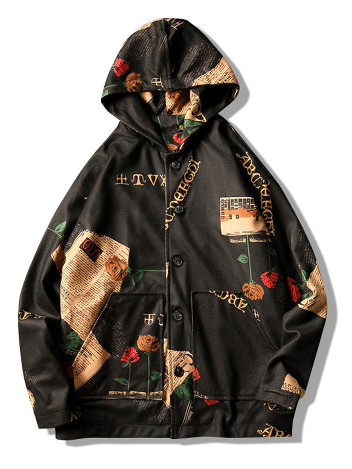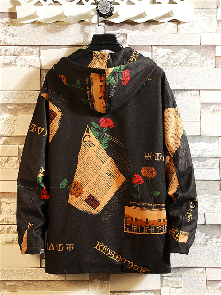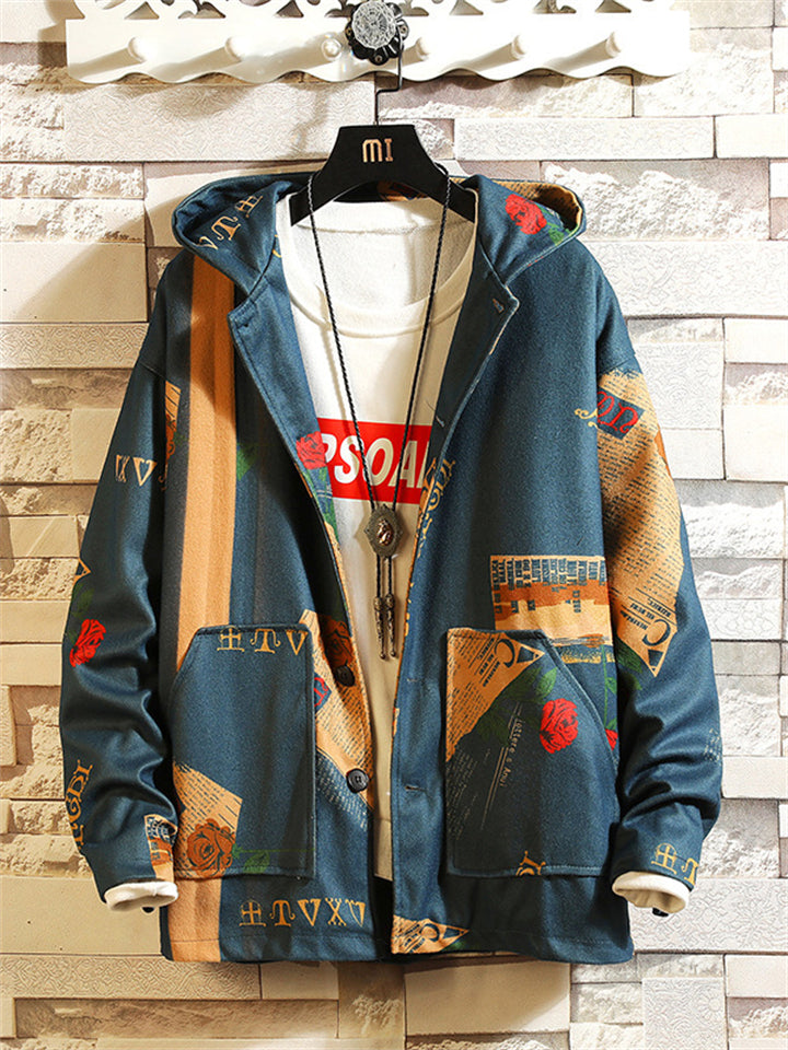 Men's Autumn Peaches Print Stand Collar Tangsuit Cardigan Jackets