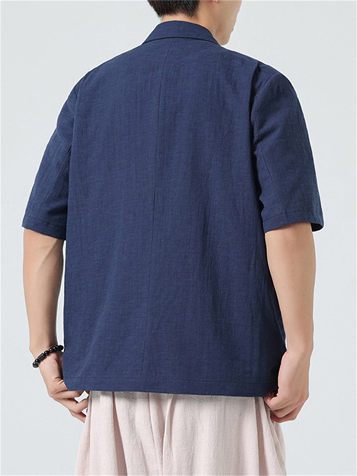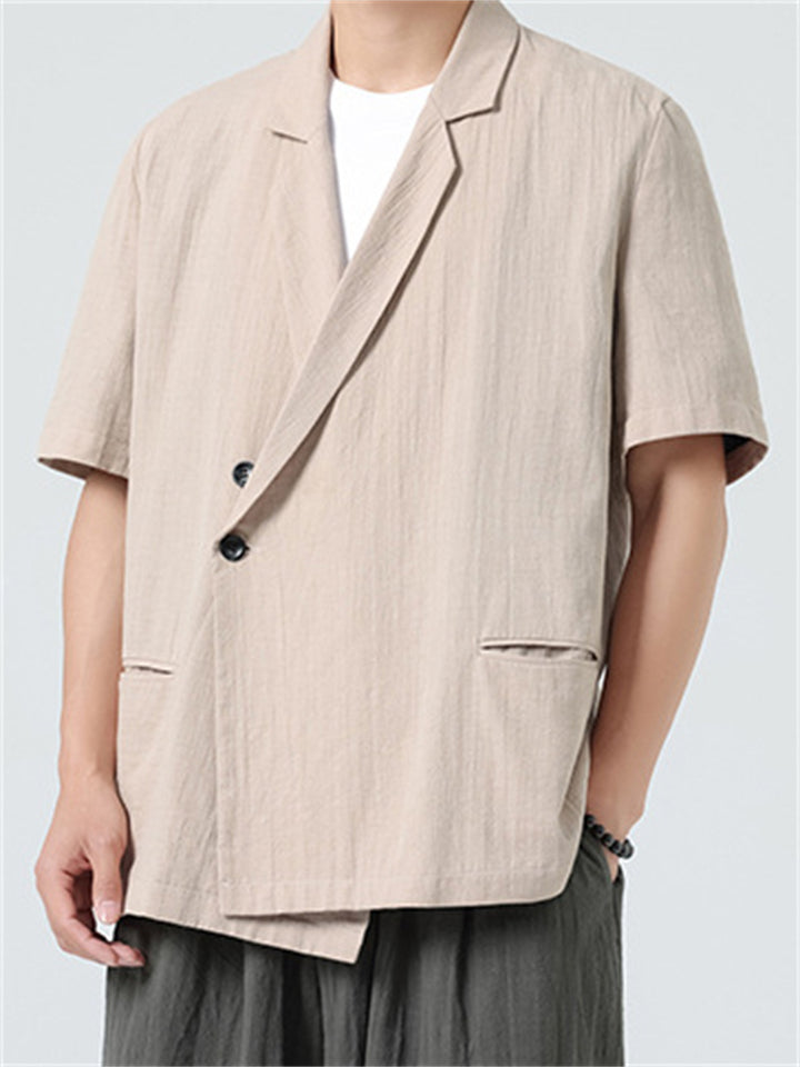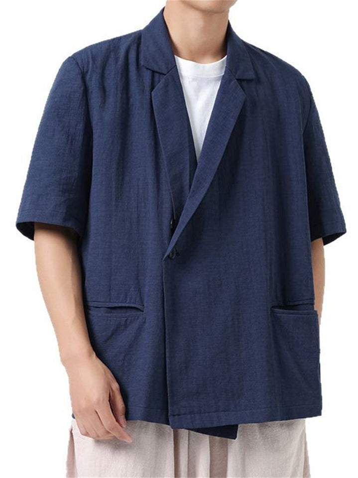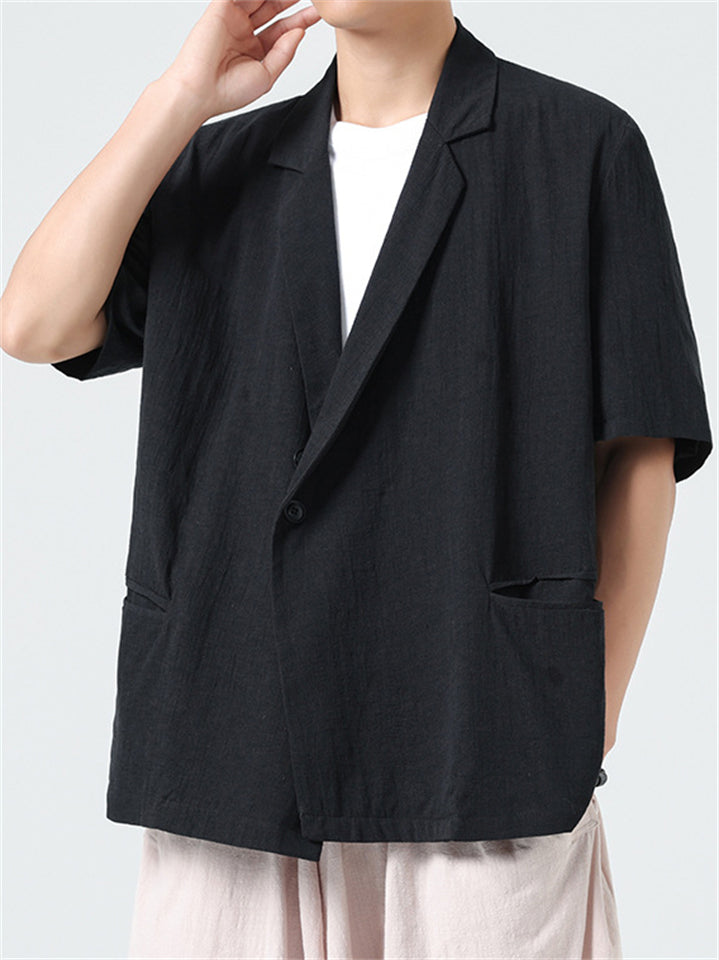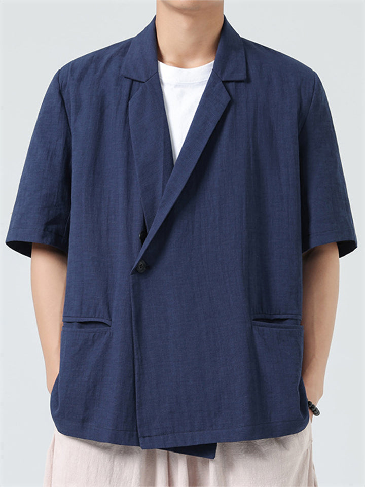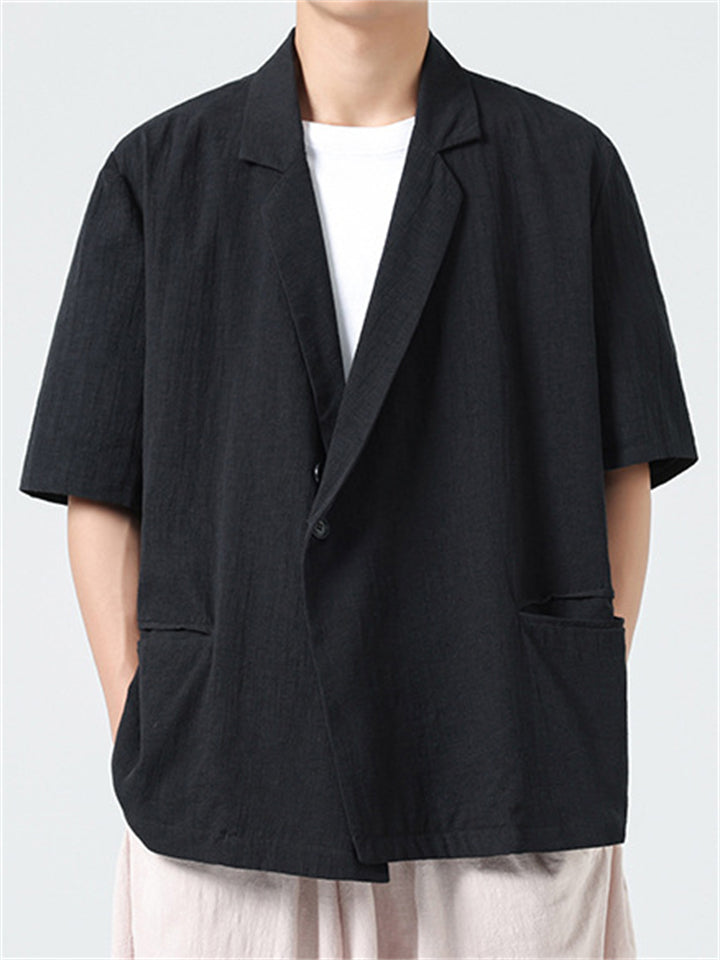 Retro Men's Solid Color Short Sleeve Suit Jacket
