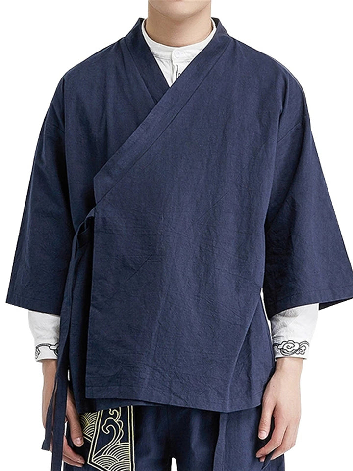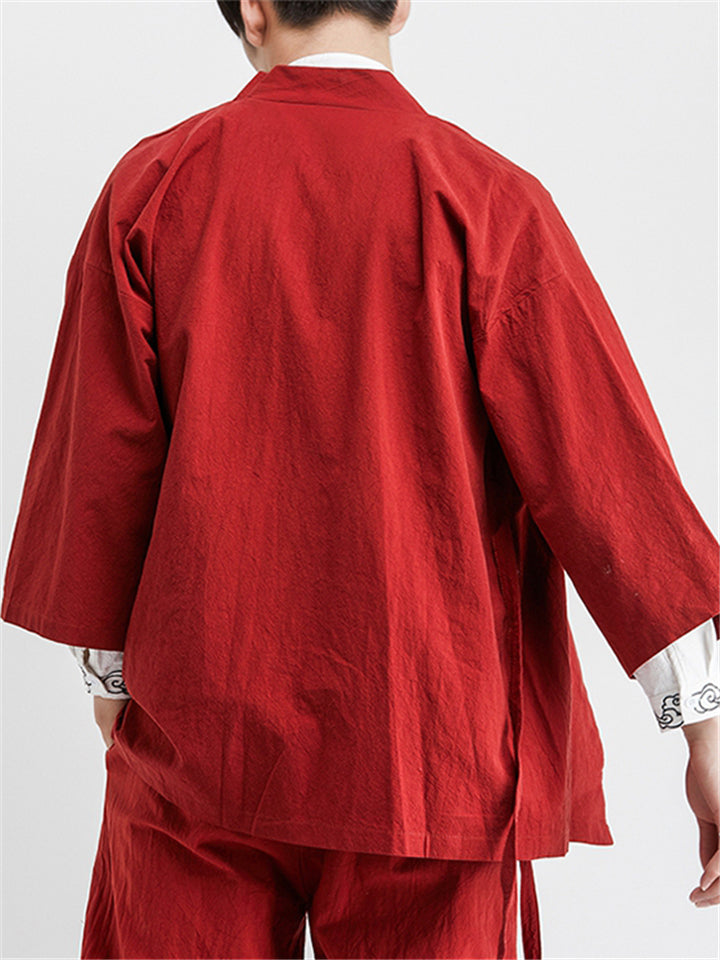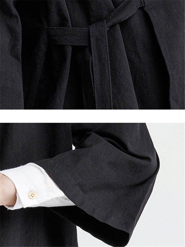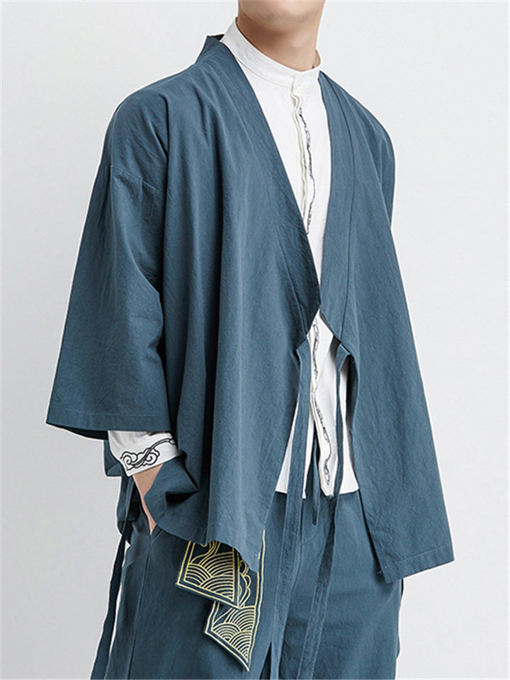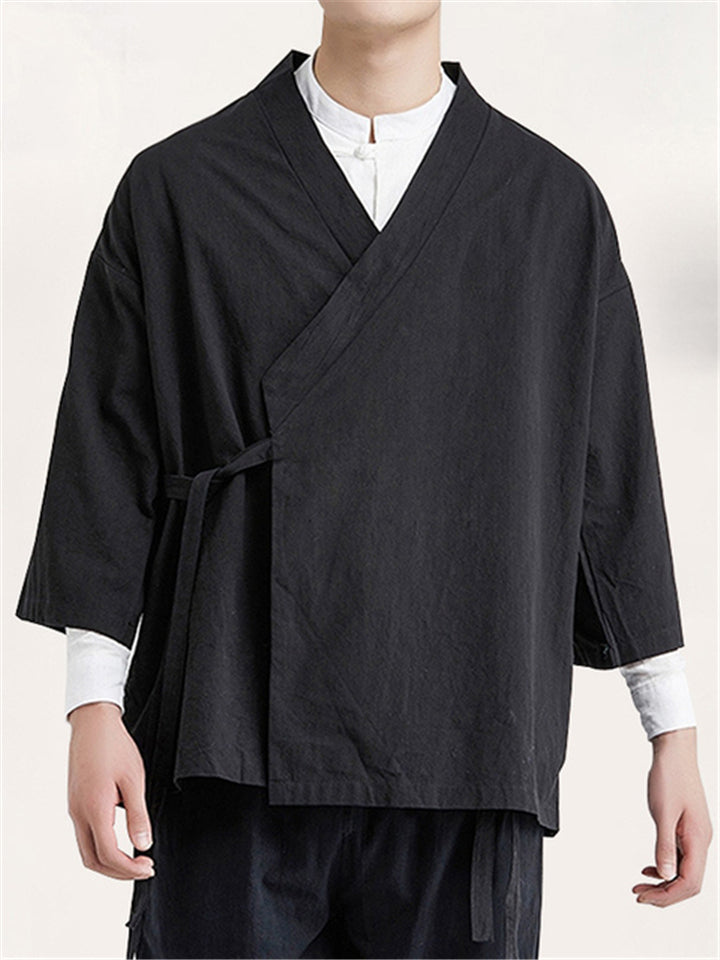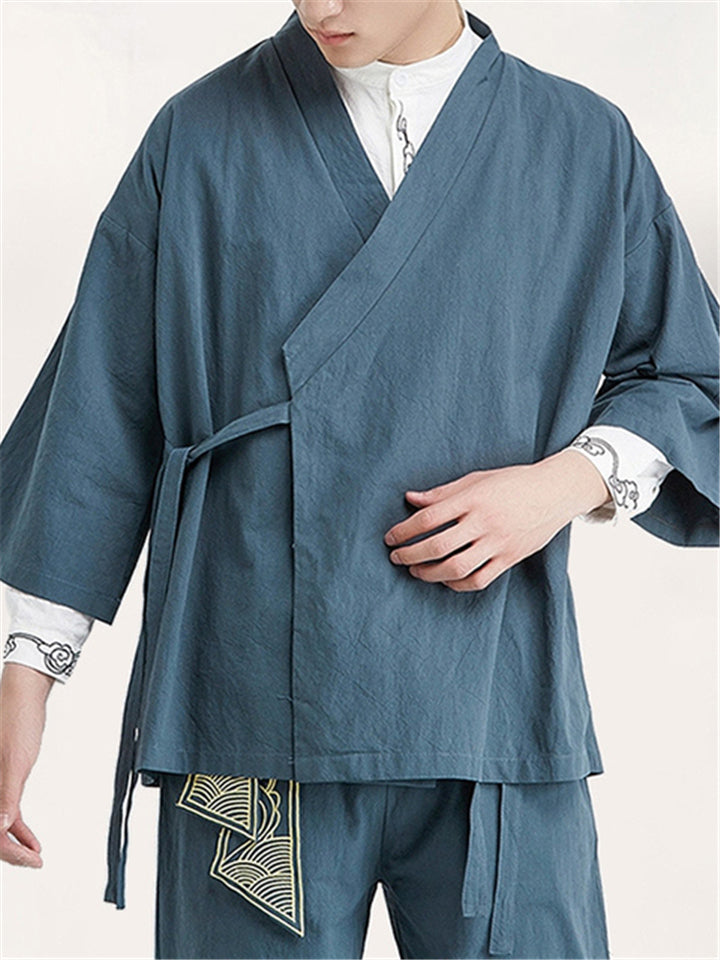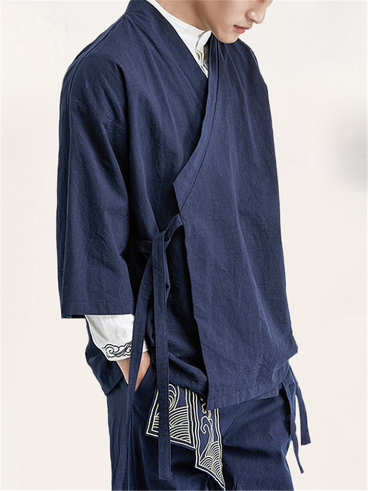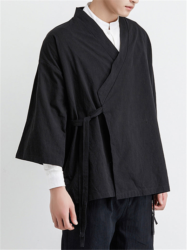 Men's Autumn Solid Color Corduroy Zen Style Lace Up Cardigan Jackets