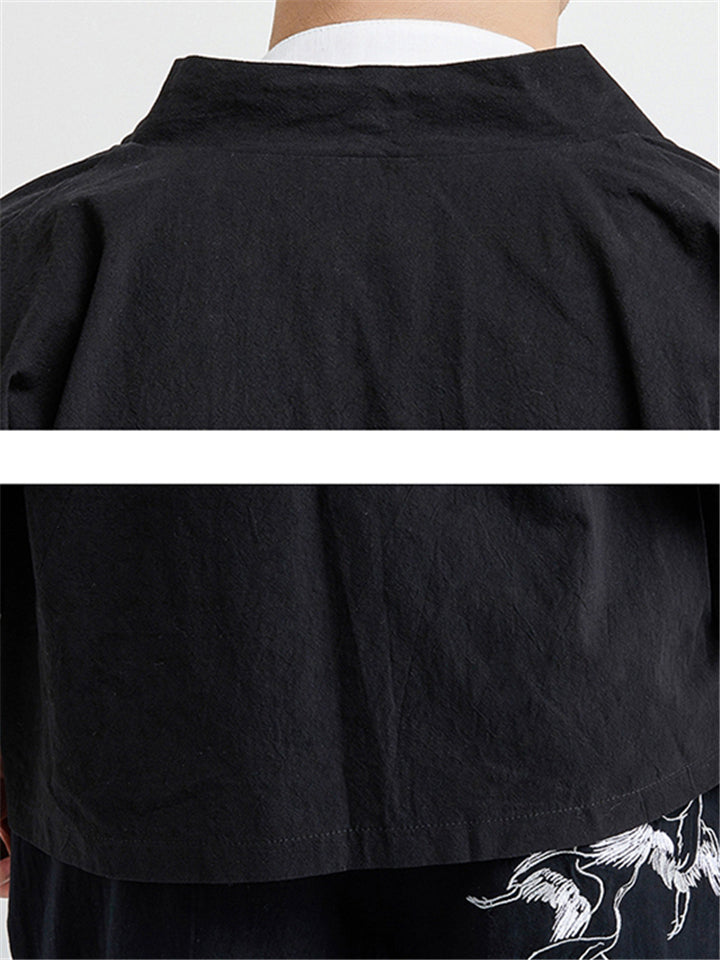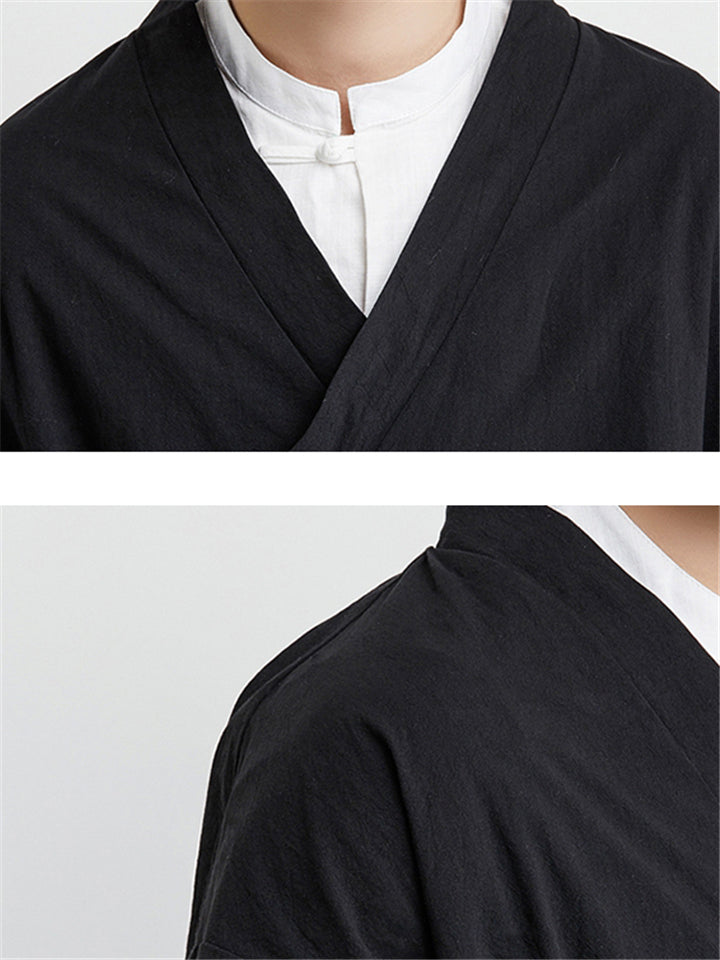 Men's Autumn Chinese Zen Style Black Long Sleeve Cardigan Jackets