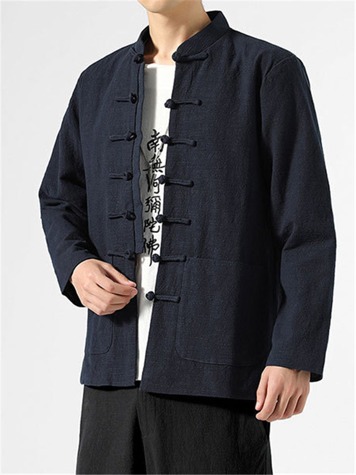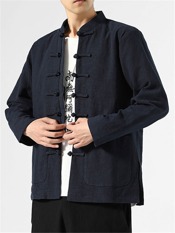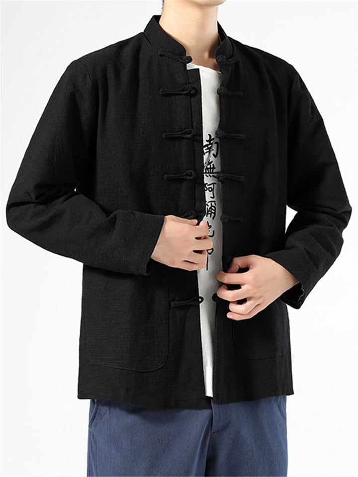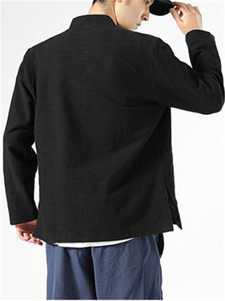 Men's Autumn Chinese Zen Style Black Long Sleeve Cardigan Jackets