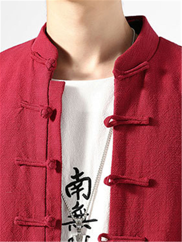 Men's Retro Chinese Style Contrast Stand Collar Corduroy Tangsuit Jackets
