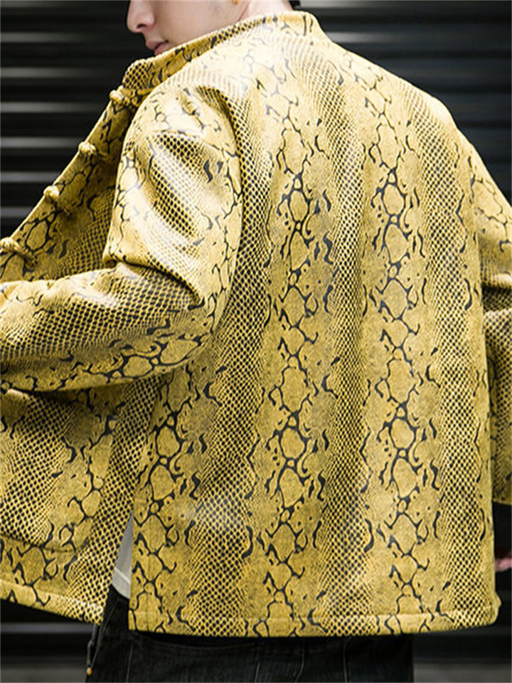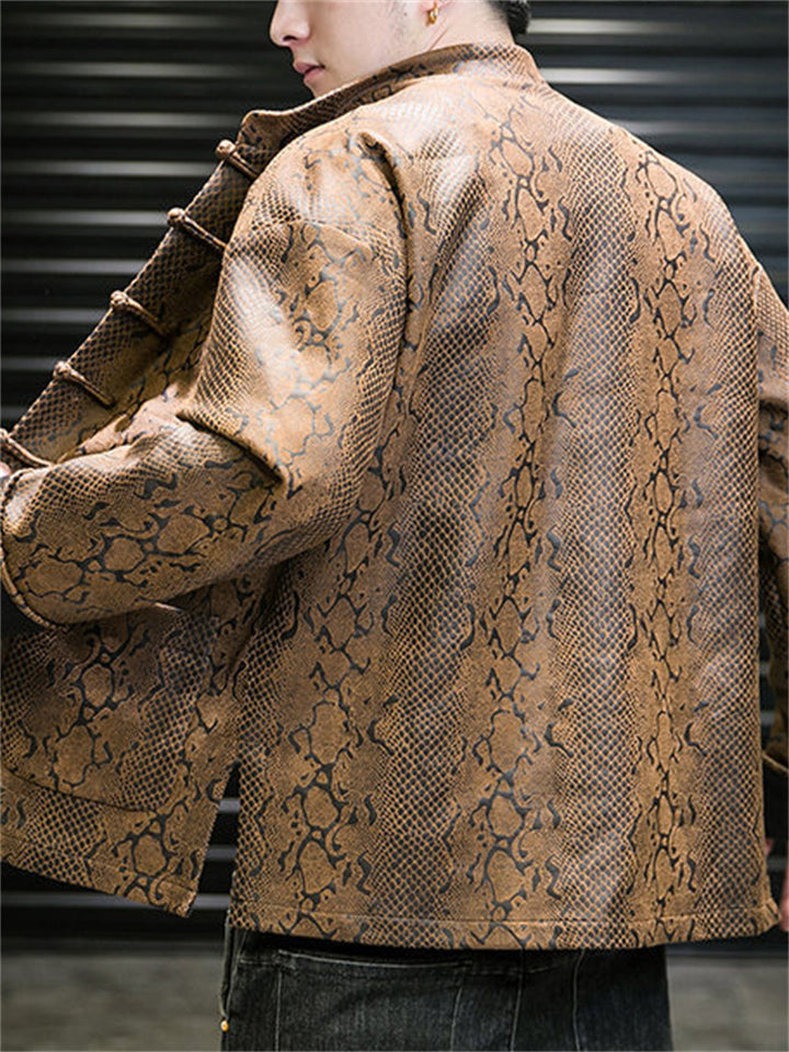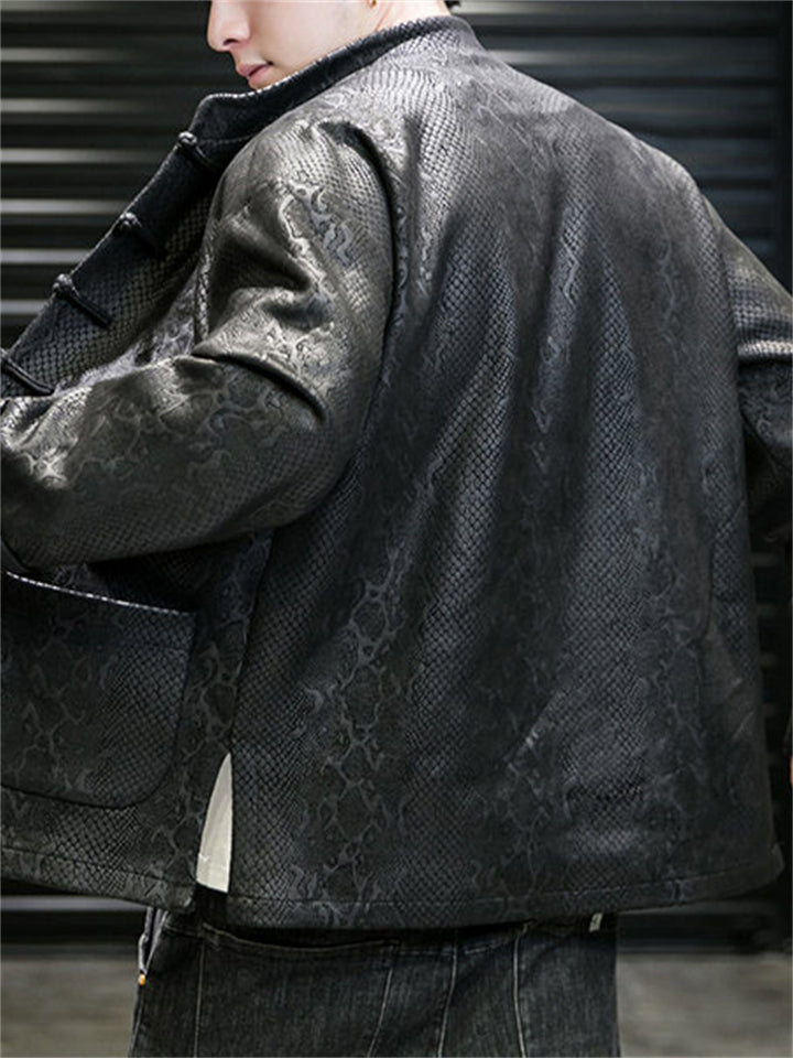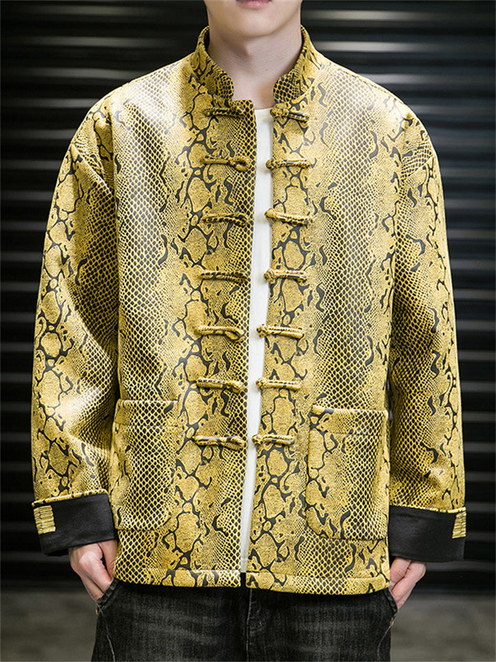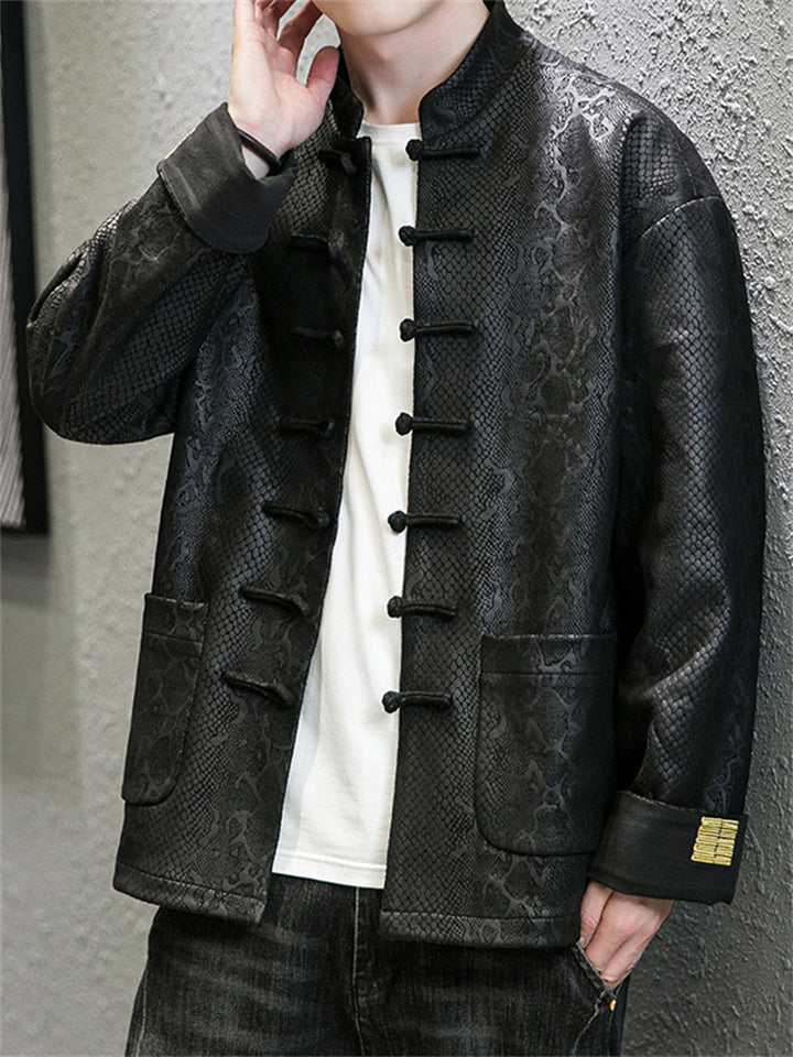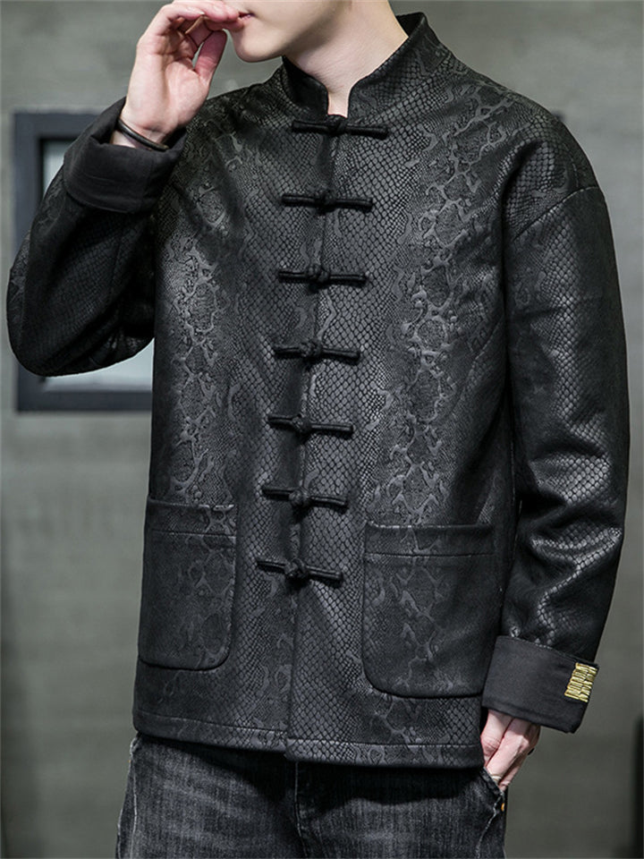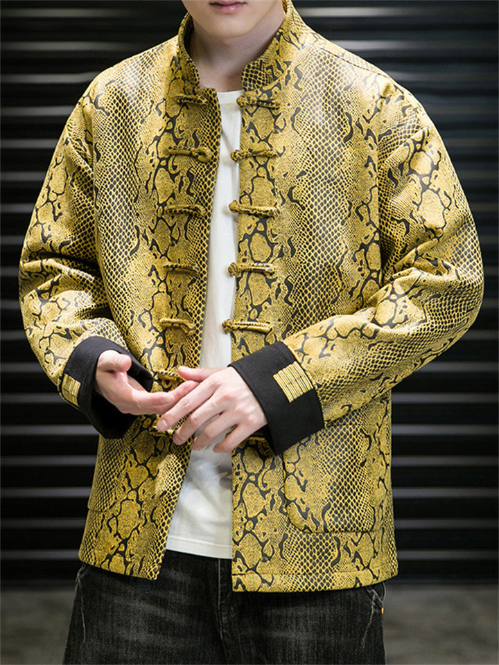 Men's Autumn Cartoon Loong Print Stand Collar Tangsuit Cardigan Jackets