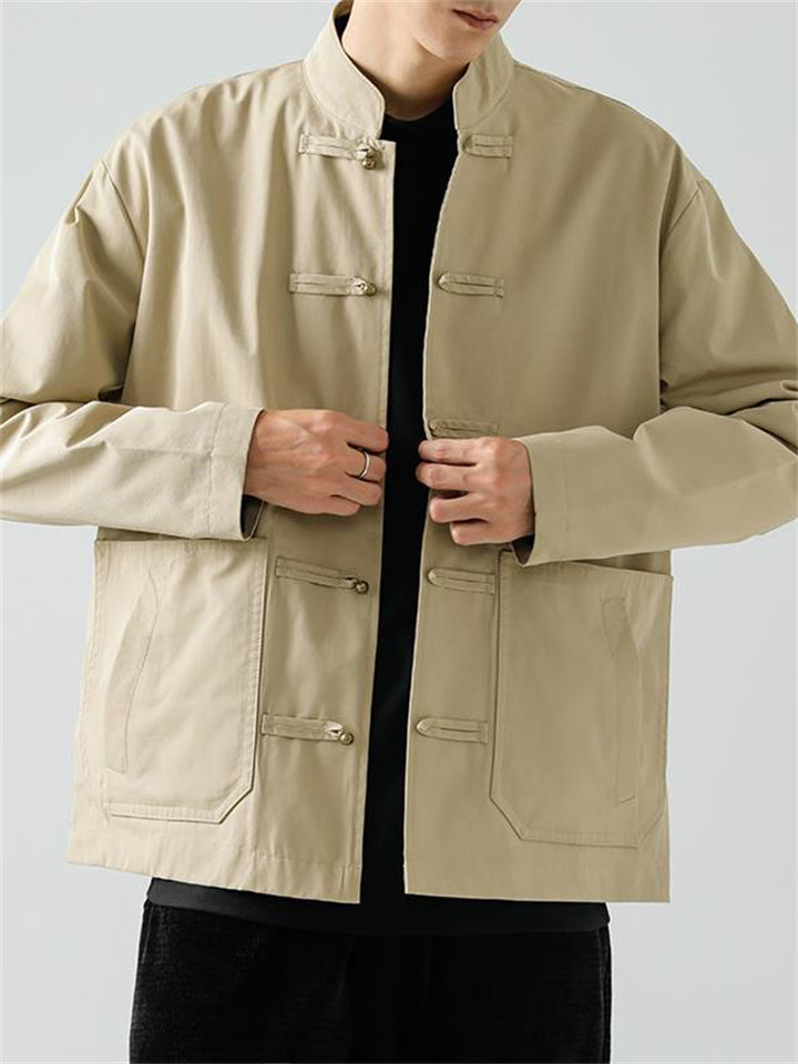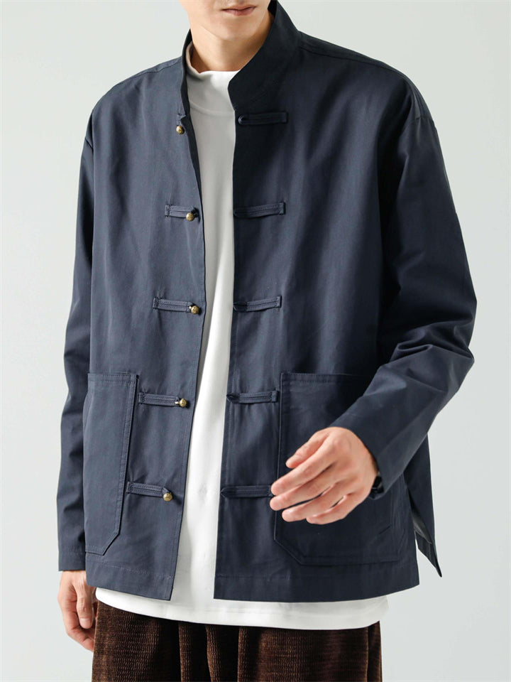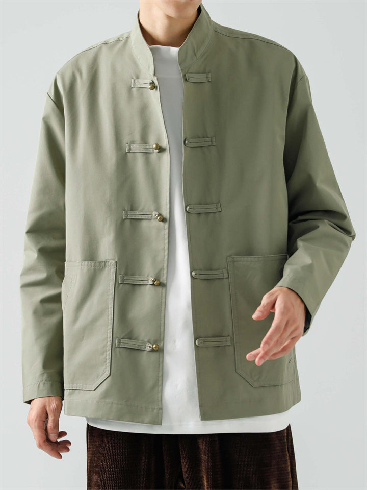 Men's Autumn Cartoon Loong Print Stand Collar Tangsuit Cardigan Jackets