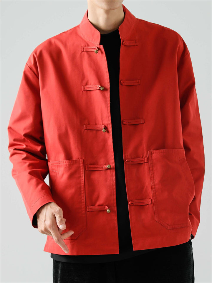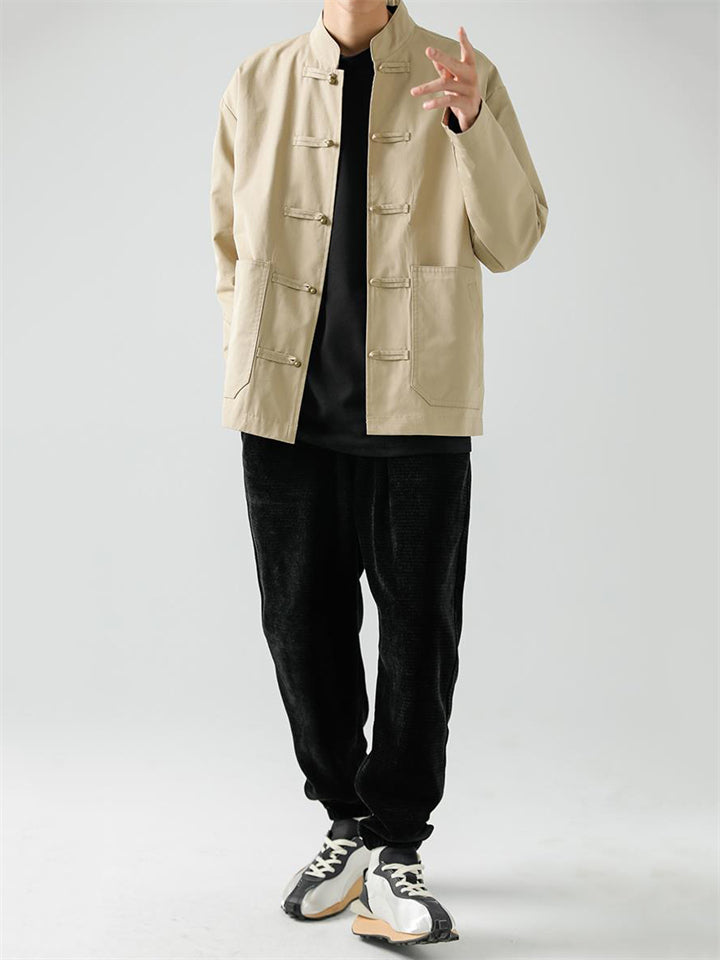 Men's Autumn Chinese Style Corduroy Contrast Color Tangsuit Jackets