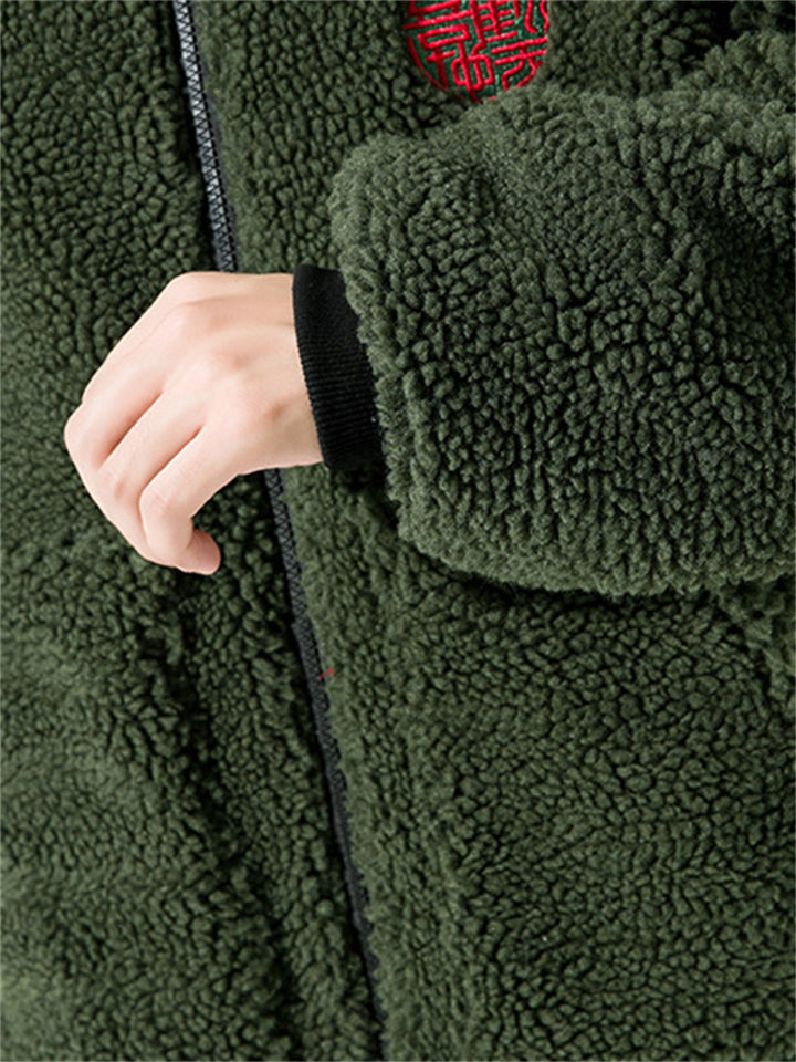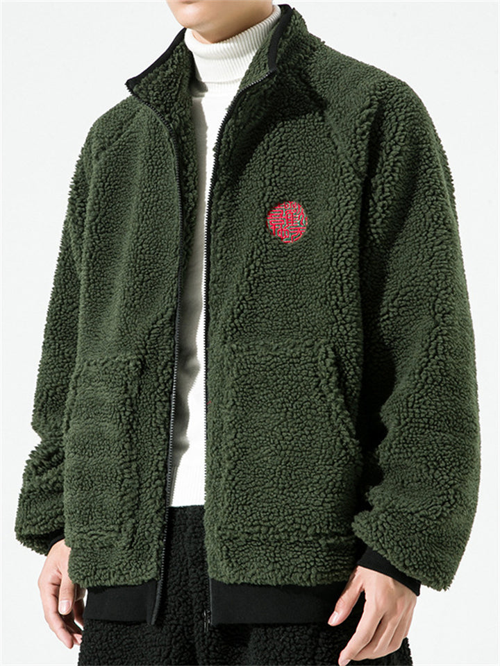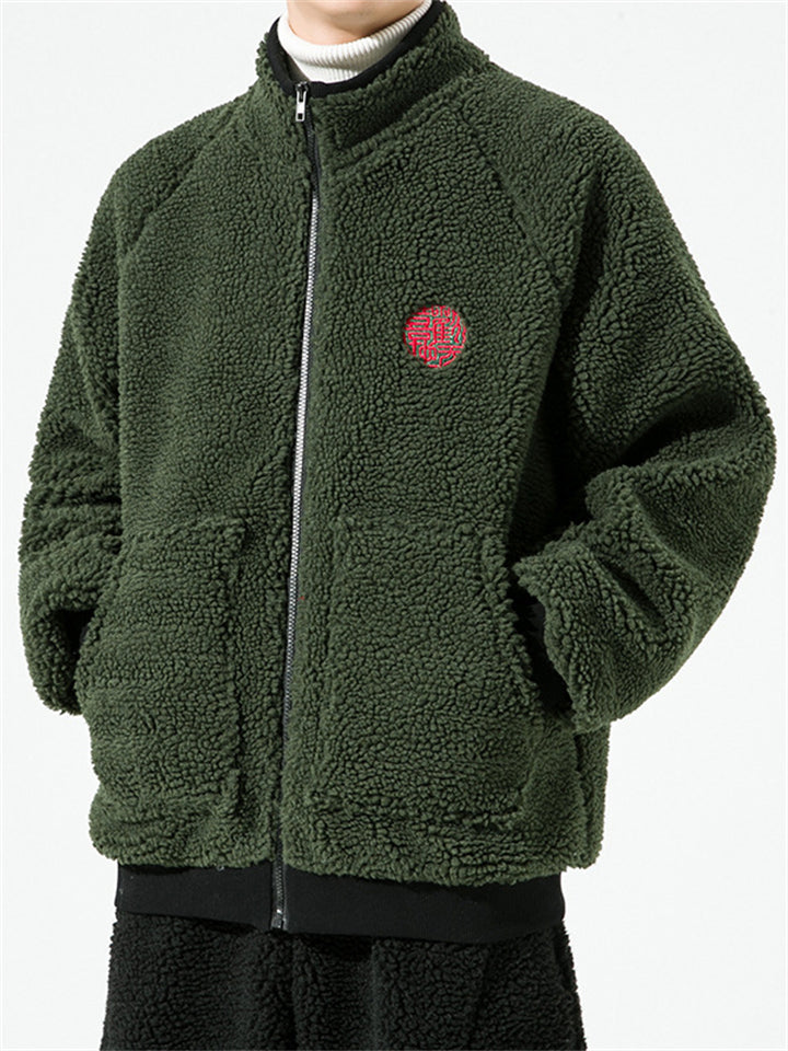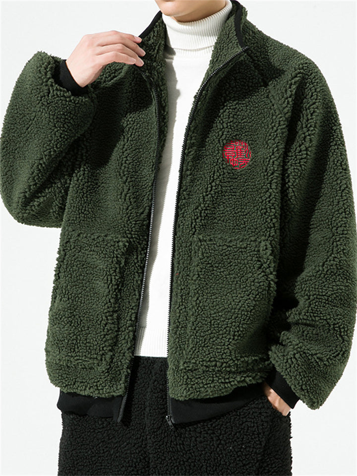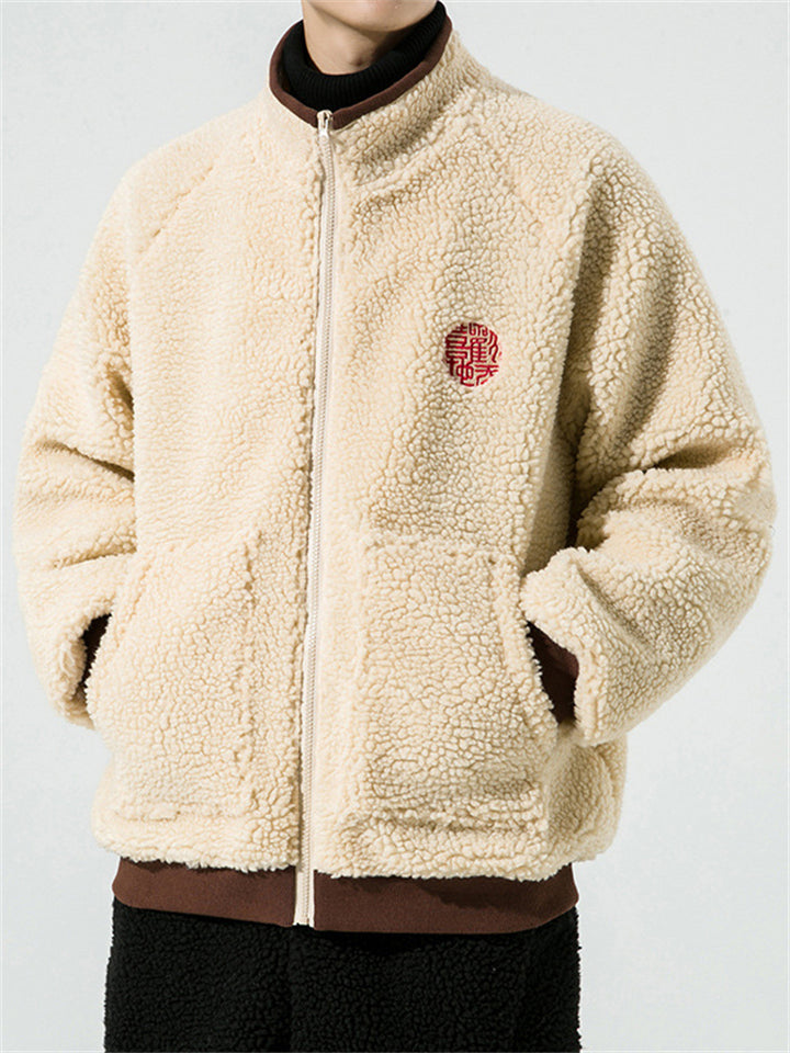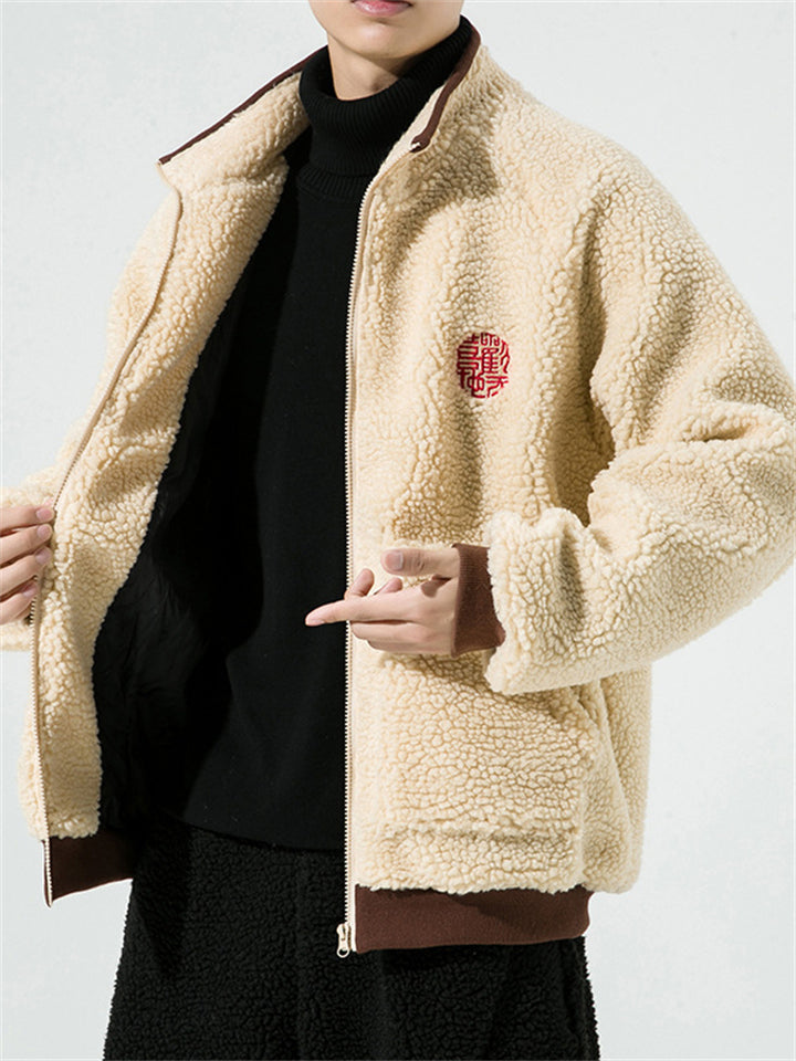 Stylish Men's Faux Lamb Wool Zipper Contrast Color Jackets