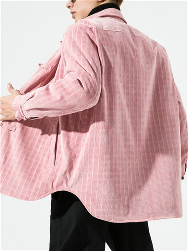 Men's Autumn Solid Color Corduroy Zen Style Lace Up Cardigan Jackets