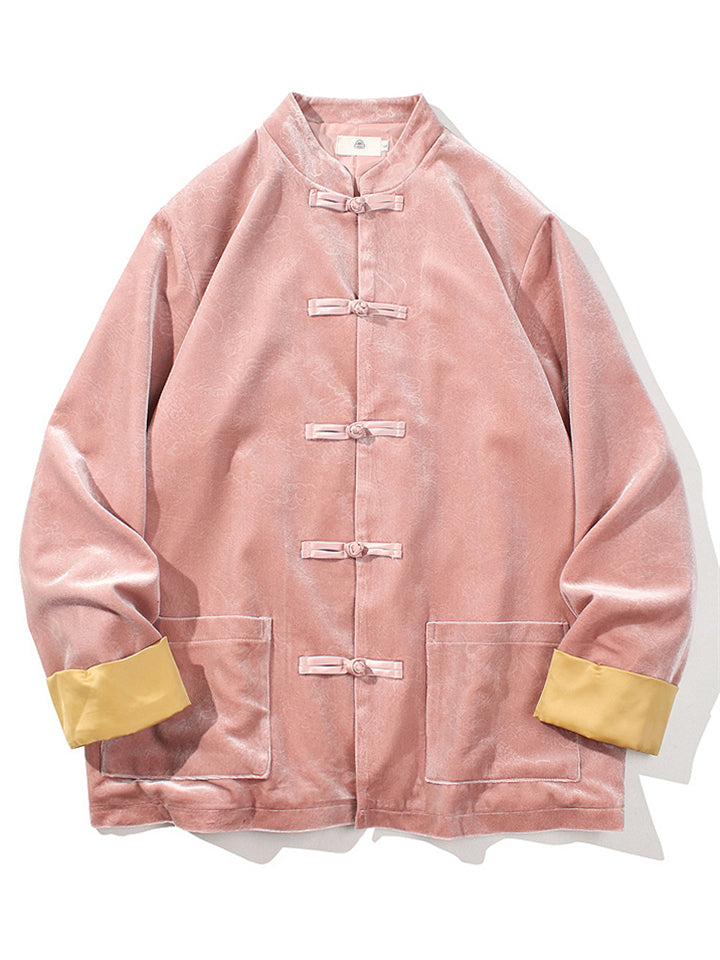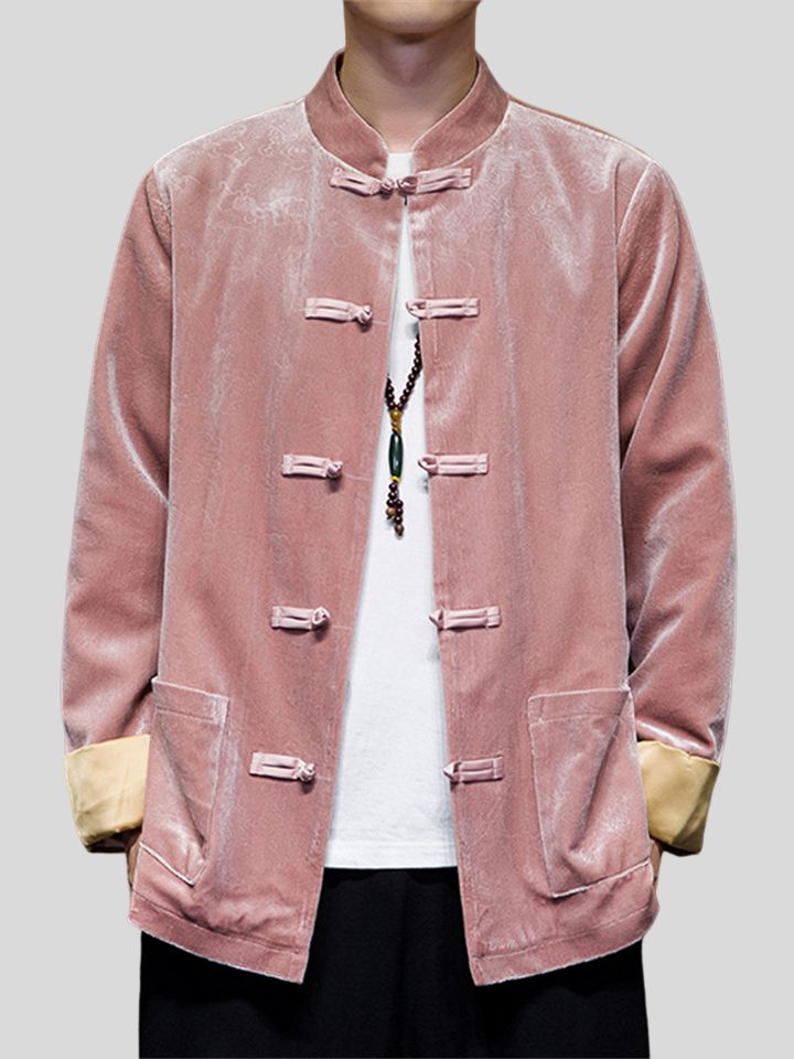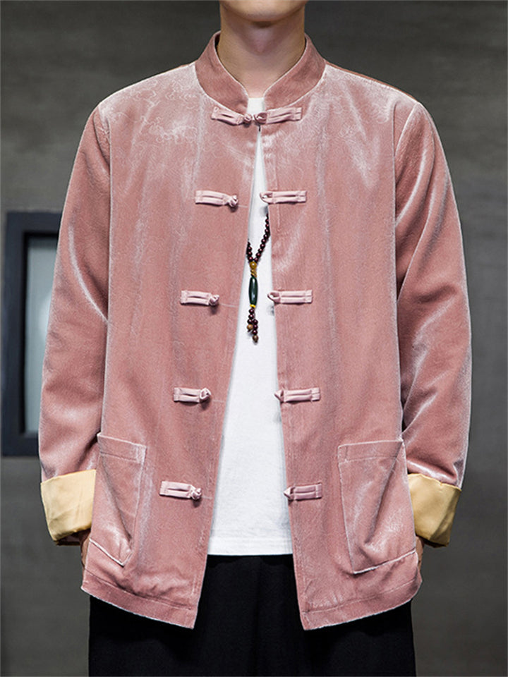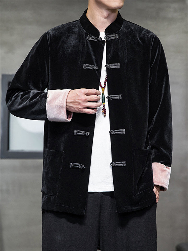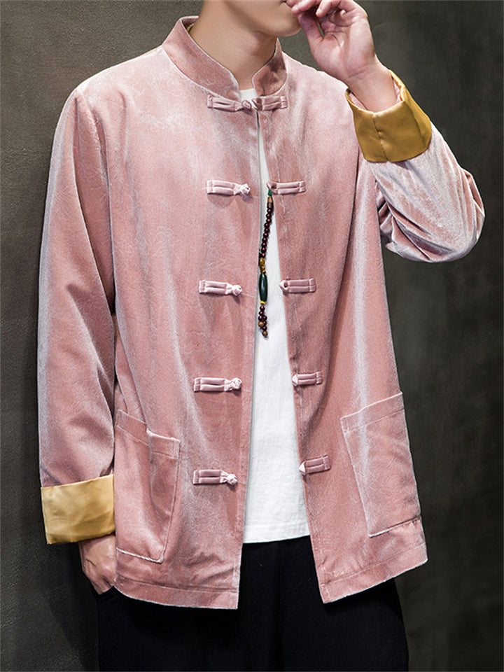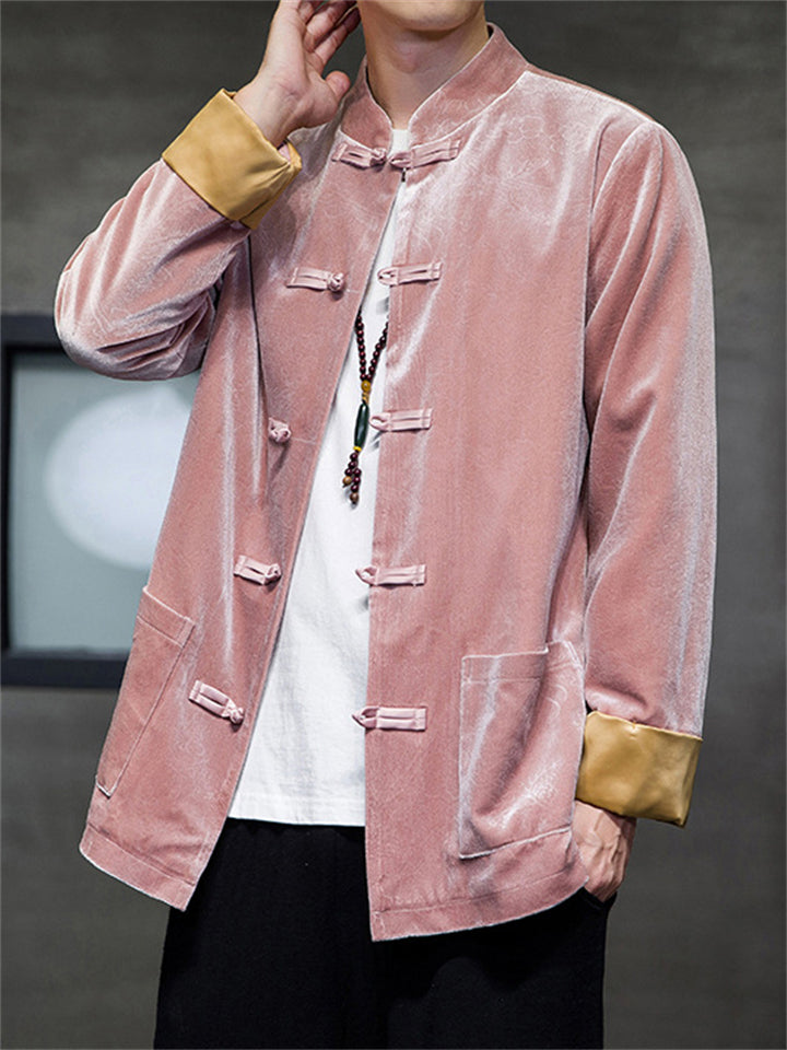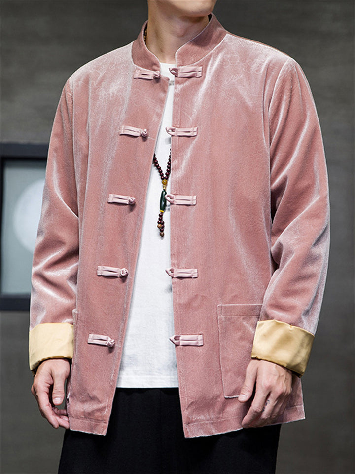 Men's Autumn Chinese Style Corduroy Contrast Color Tangsuit Jackets