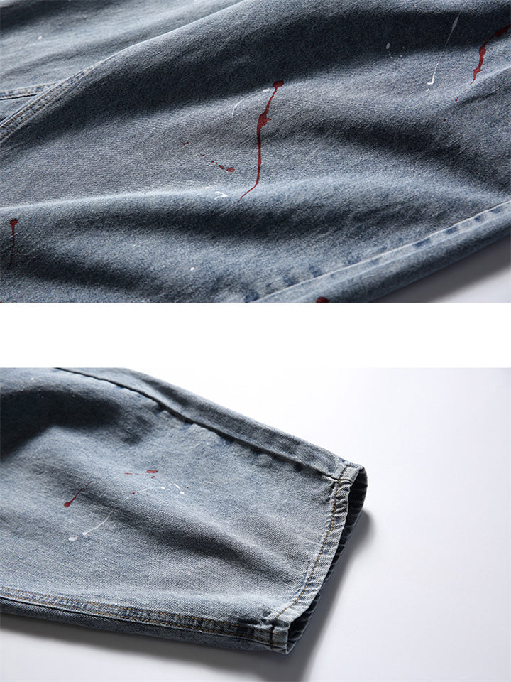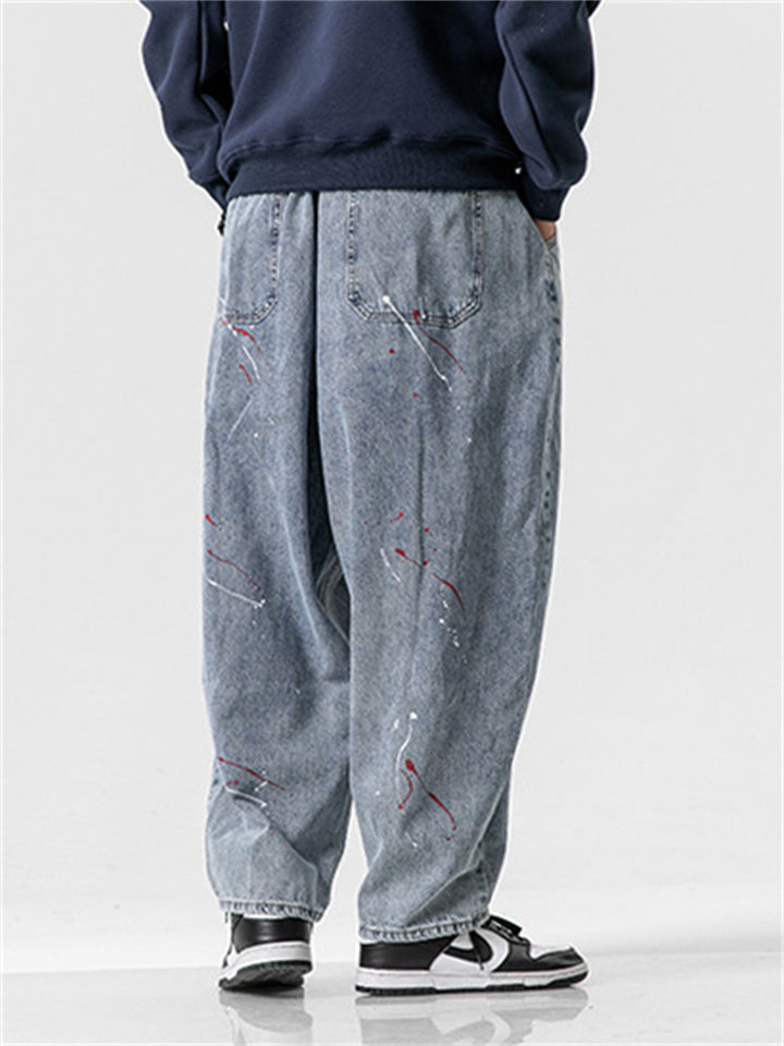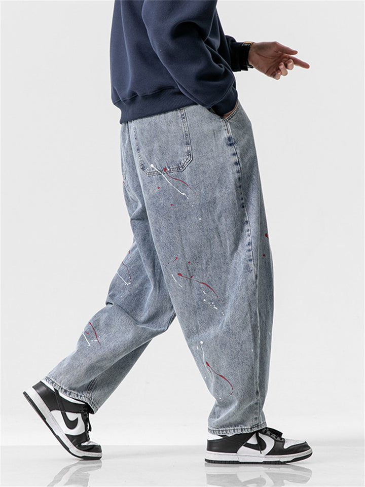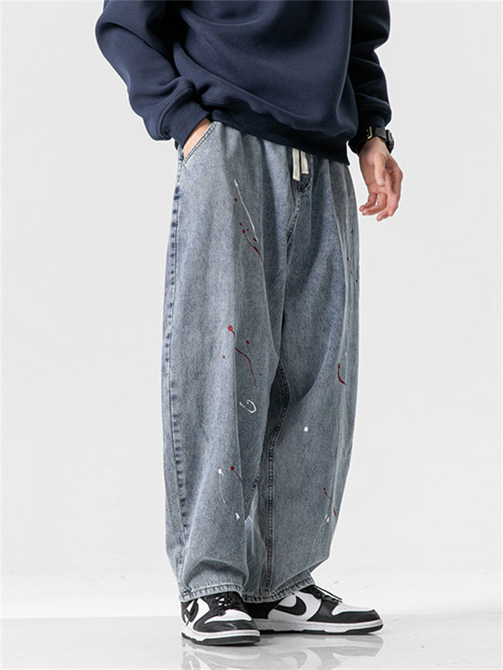Men's Vintage Contrast Color Printed Straight Wide Leg Jeans