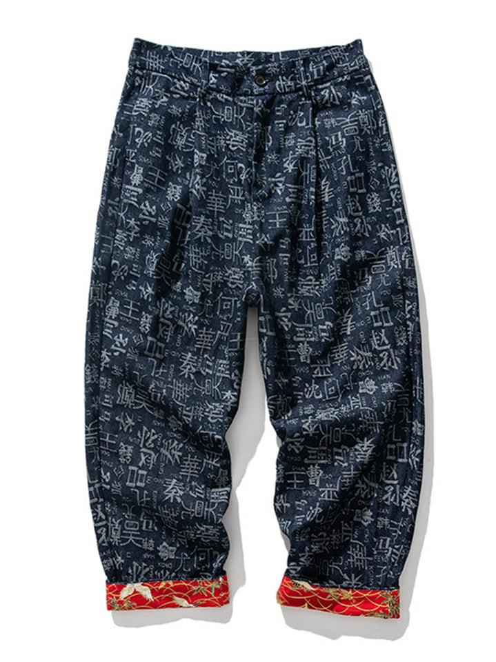 Men's Vintage Contrast Color Printed Straight Wide Leg Jeans