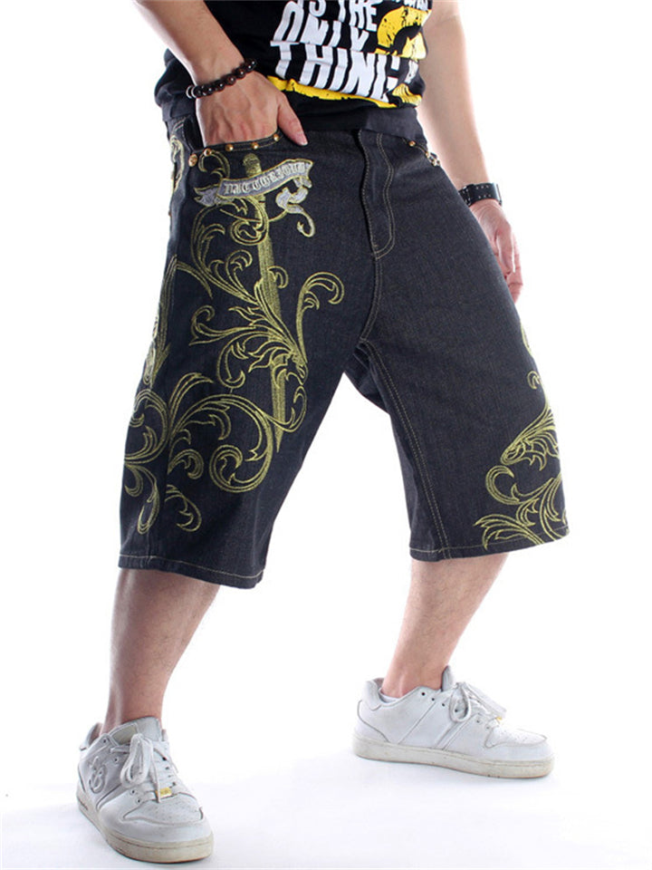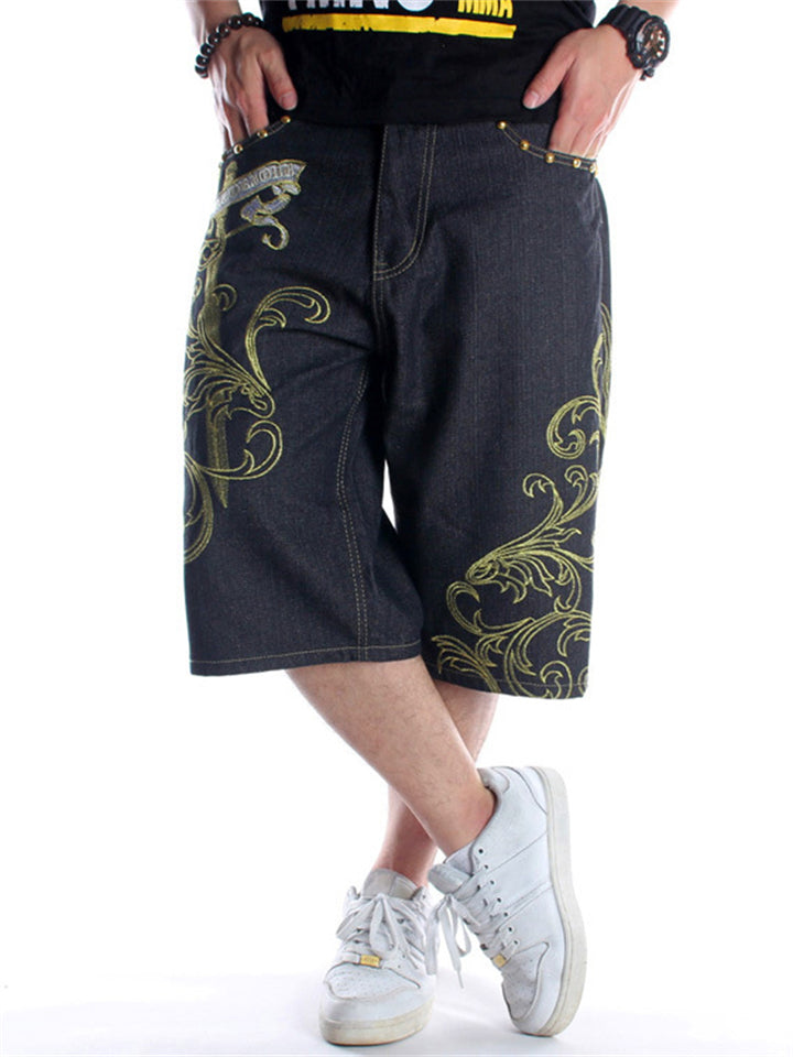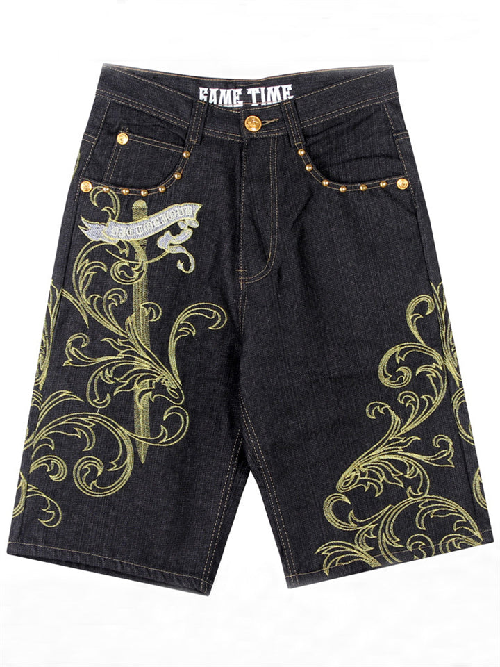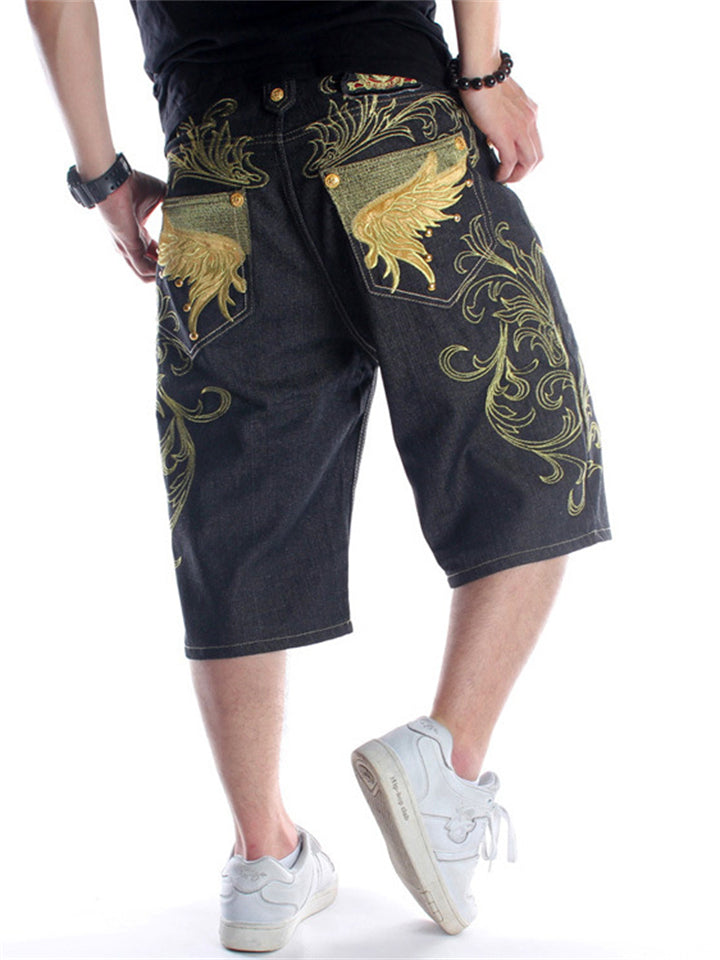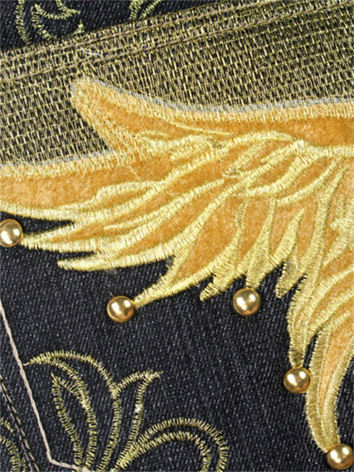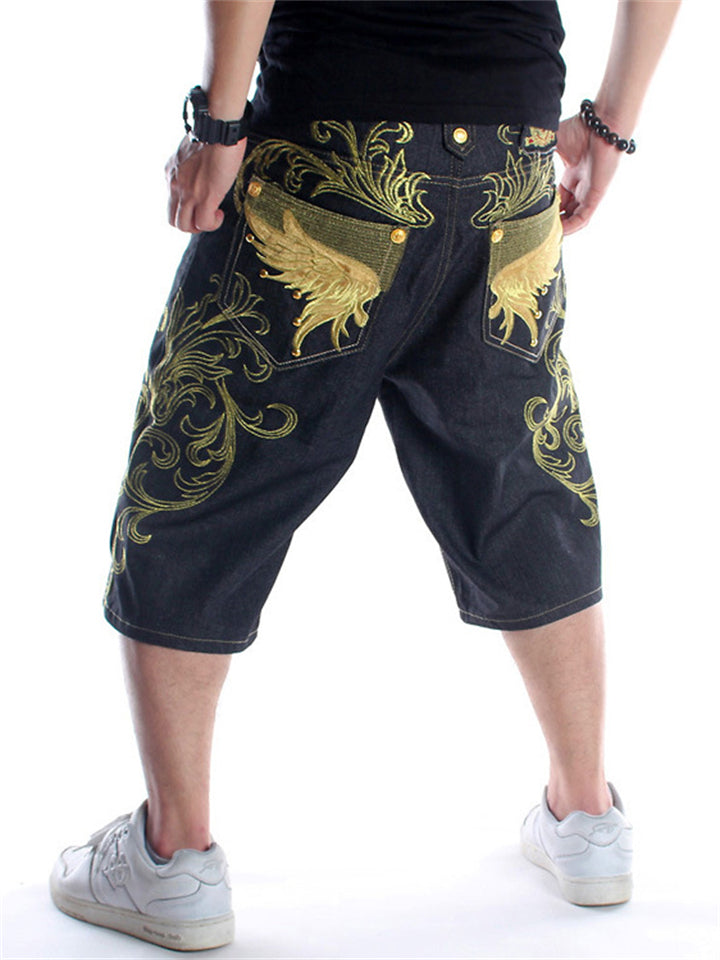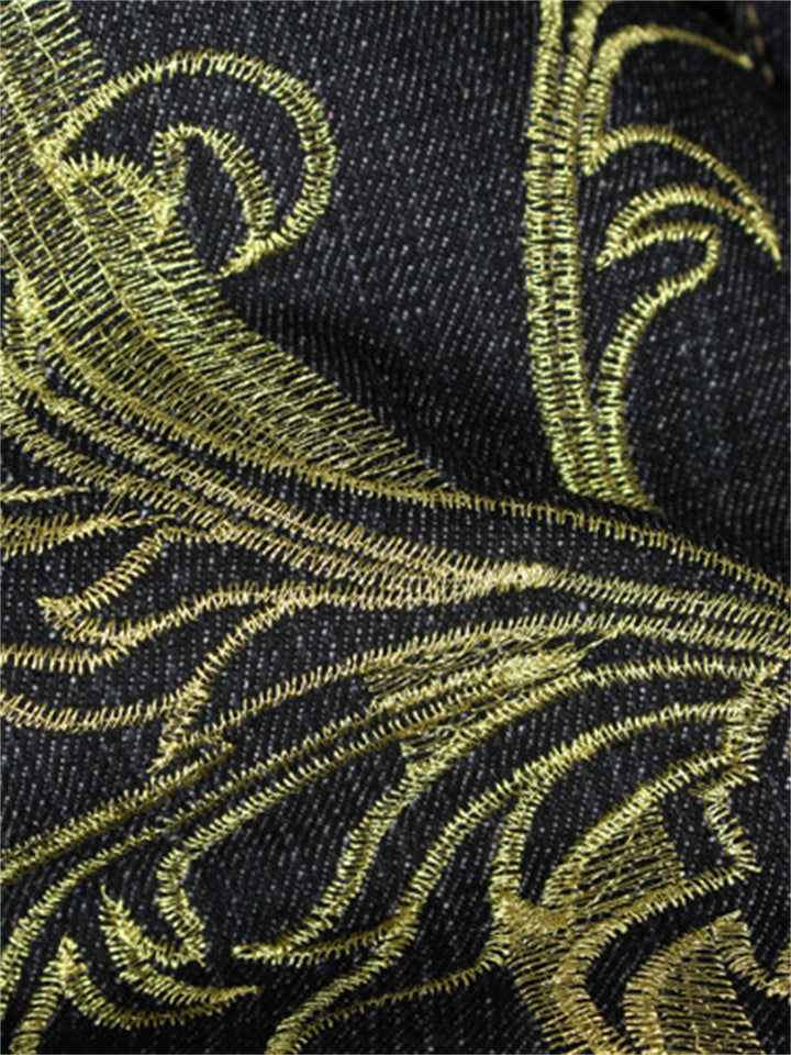 Gold Floral Pattern Wings Embroidered Men's Cropped Jeans