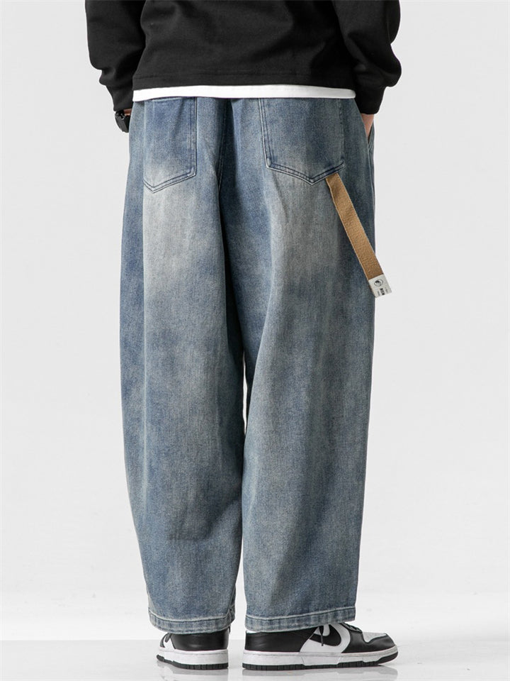 Japanese Style Men's Distressed Wide-Leg Straight Jeans