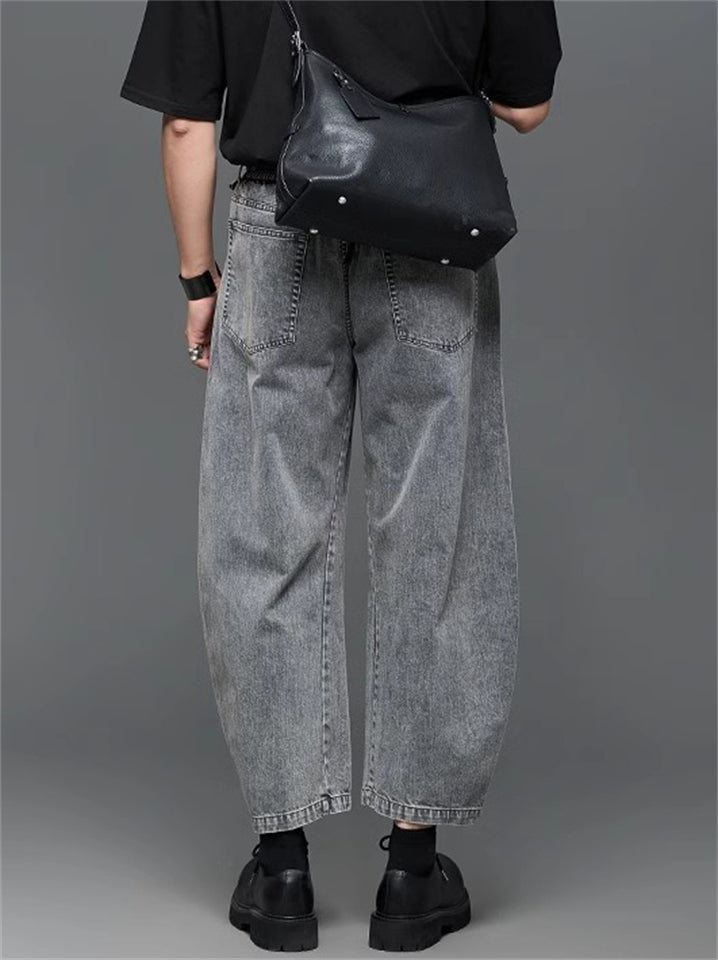 Japanese Style Retro Cotton Scimitar Cropped Jeans for Men