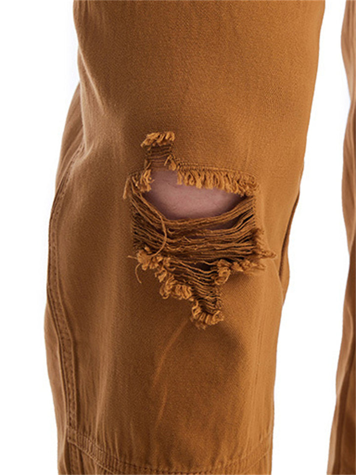 Men's Distressed Solid Color 3D Pockets Wide Leg Straight Jeans