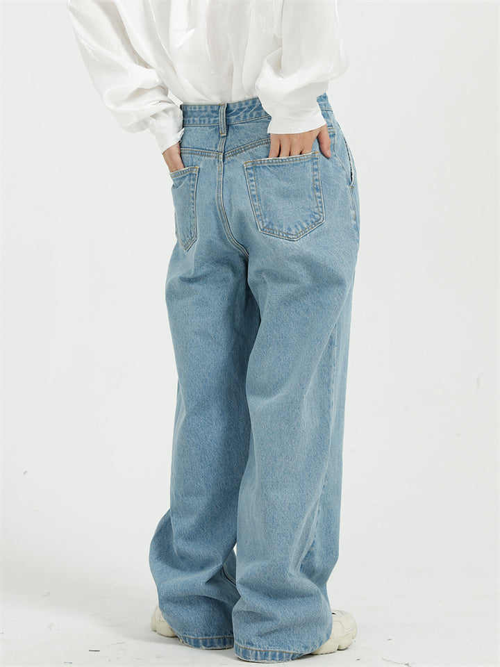 Men's Casual High Street Wide Leg Straight Whisker Jeans