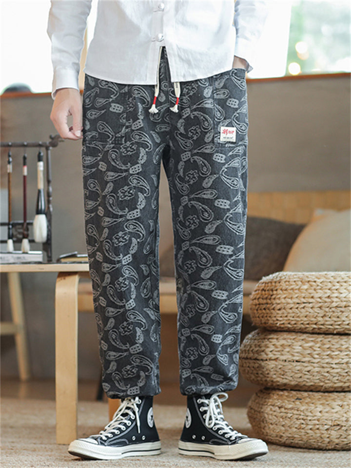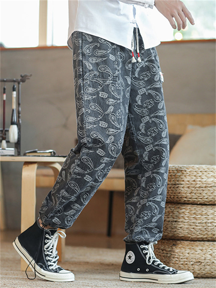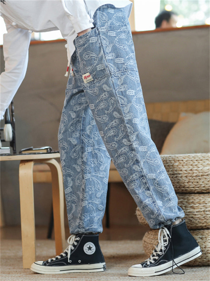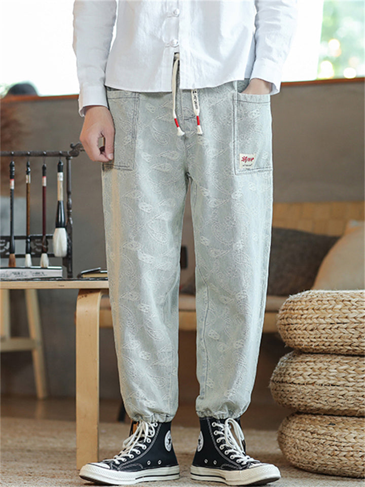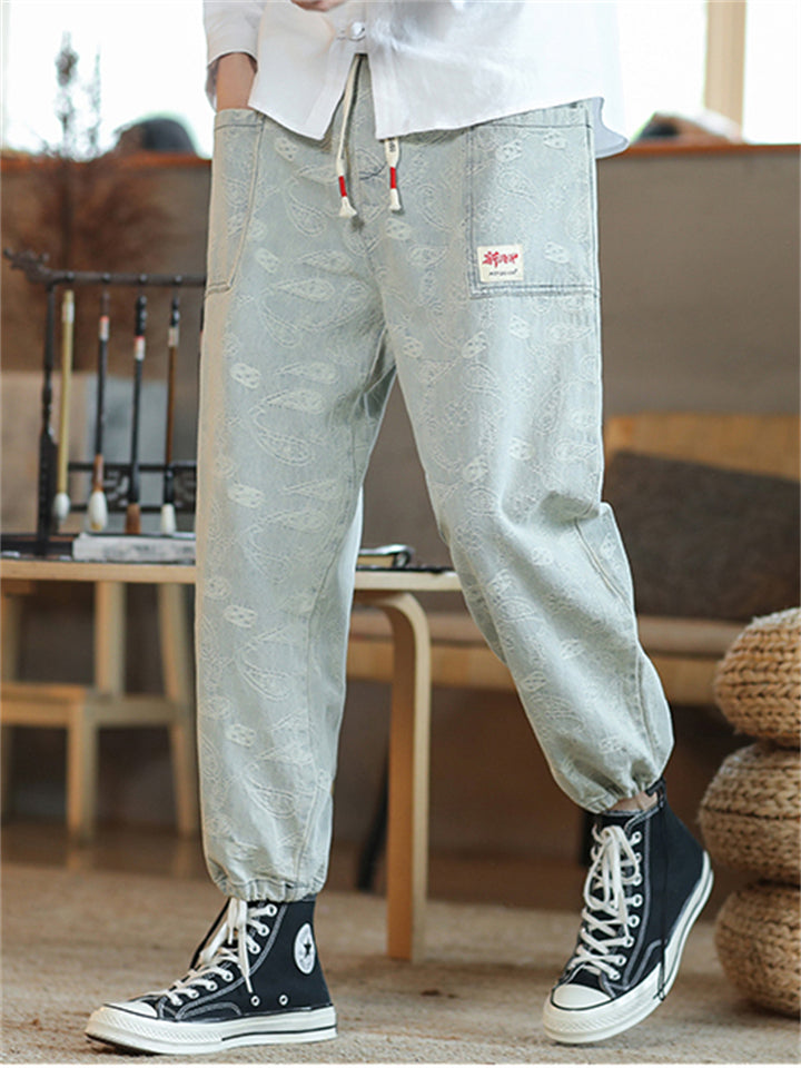 Men's Retro Solid Color Drawstring Loose Denim Pants