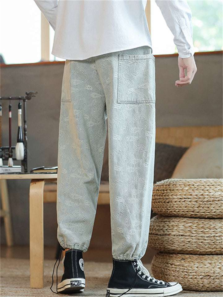 Japanese Style Retro Cotton Scimitar Cropped Jeans for Men