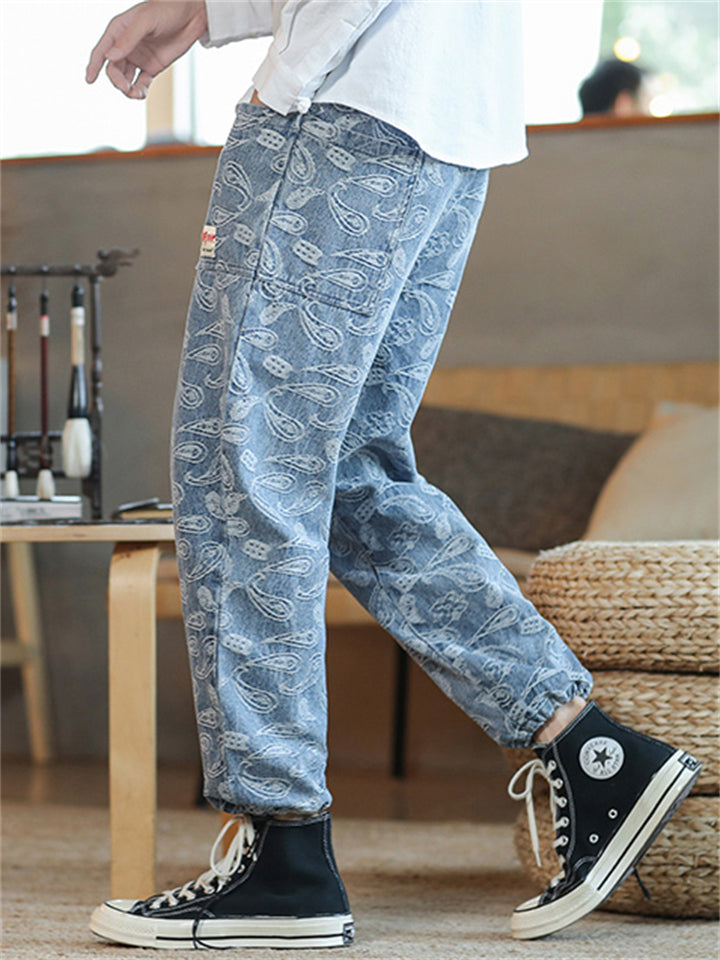 Men's Vintage Contrast Color Printed Straight Wide Leg Jeans