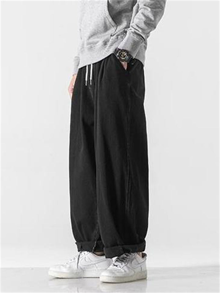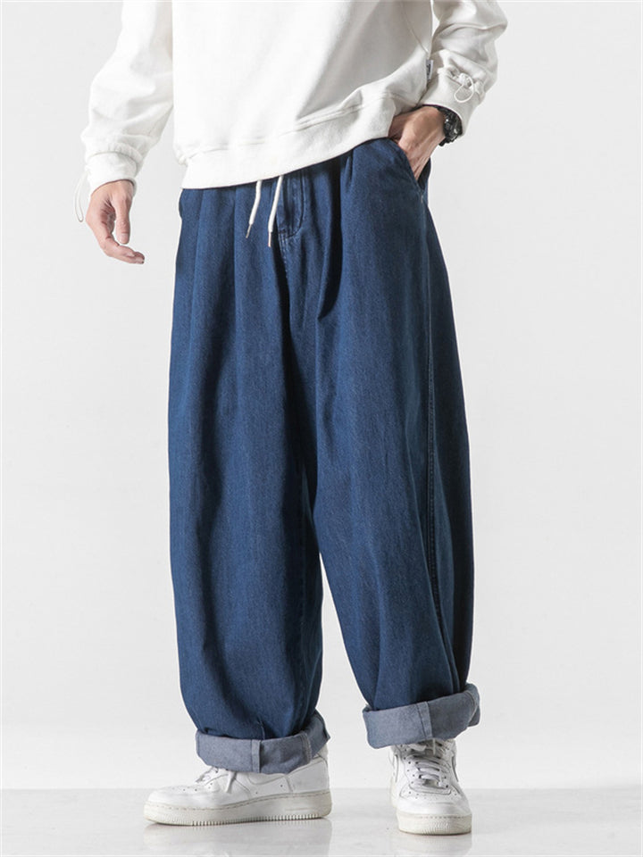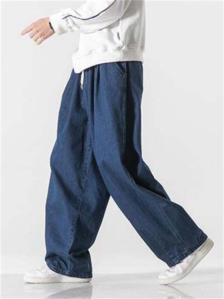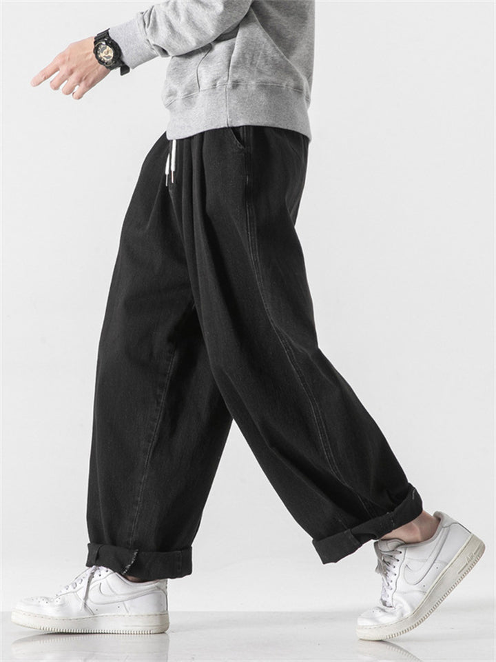 Men's Retro Solid Color Drawstring Loose Denim Pants