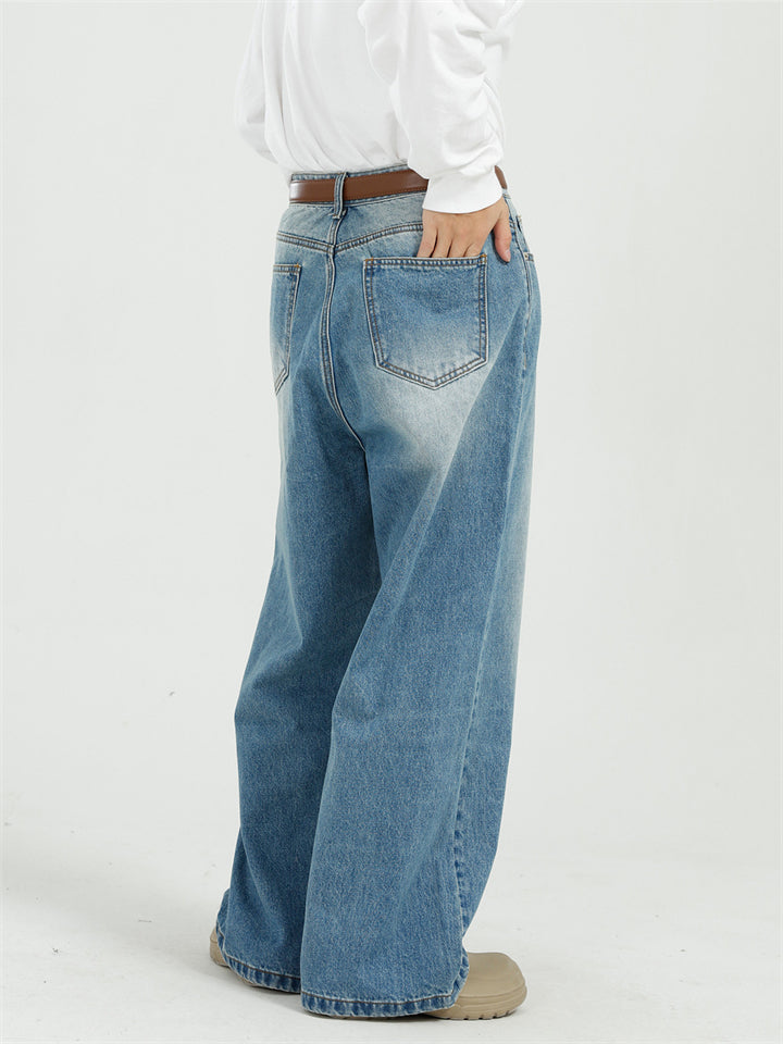 Men's Casual High Street Wide Leg Straight Whisker Jeans