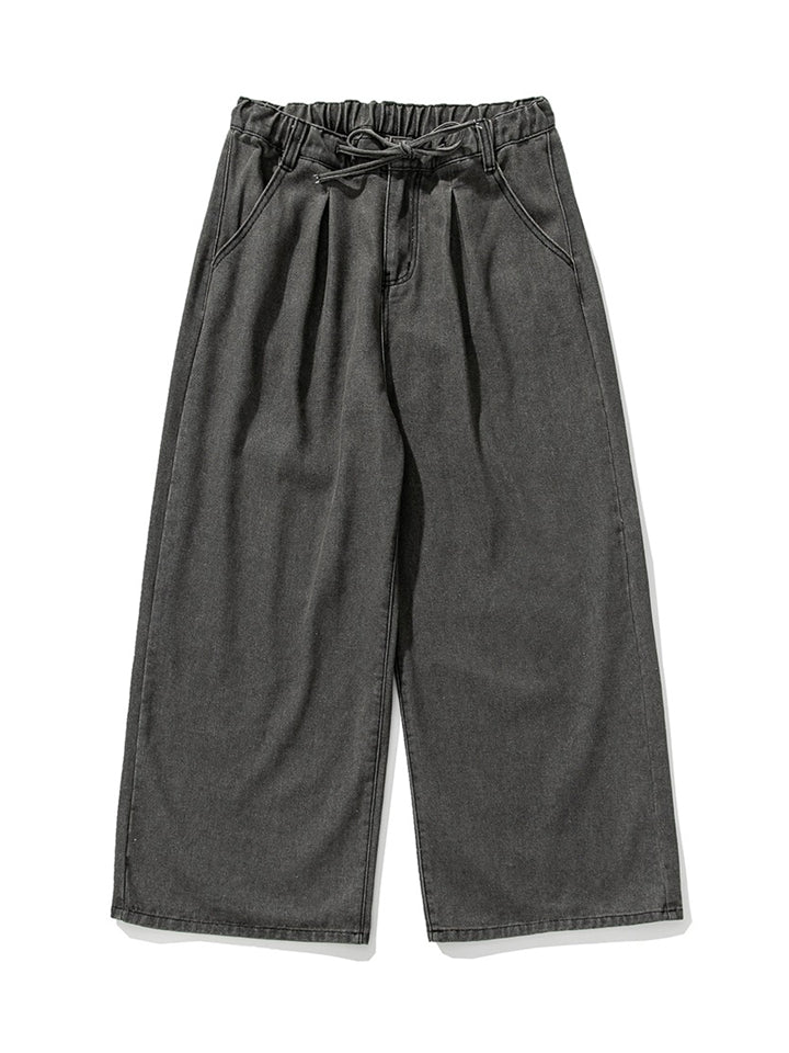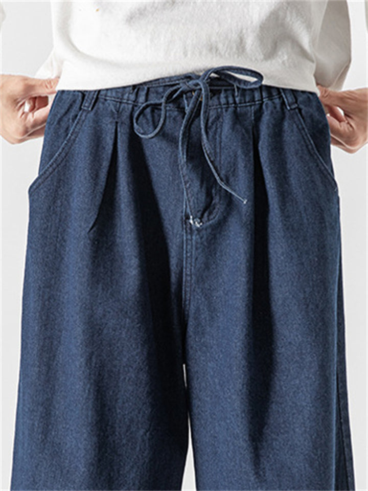 Men's Retro Solid Color Drawstring Loose Denim Pants