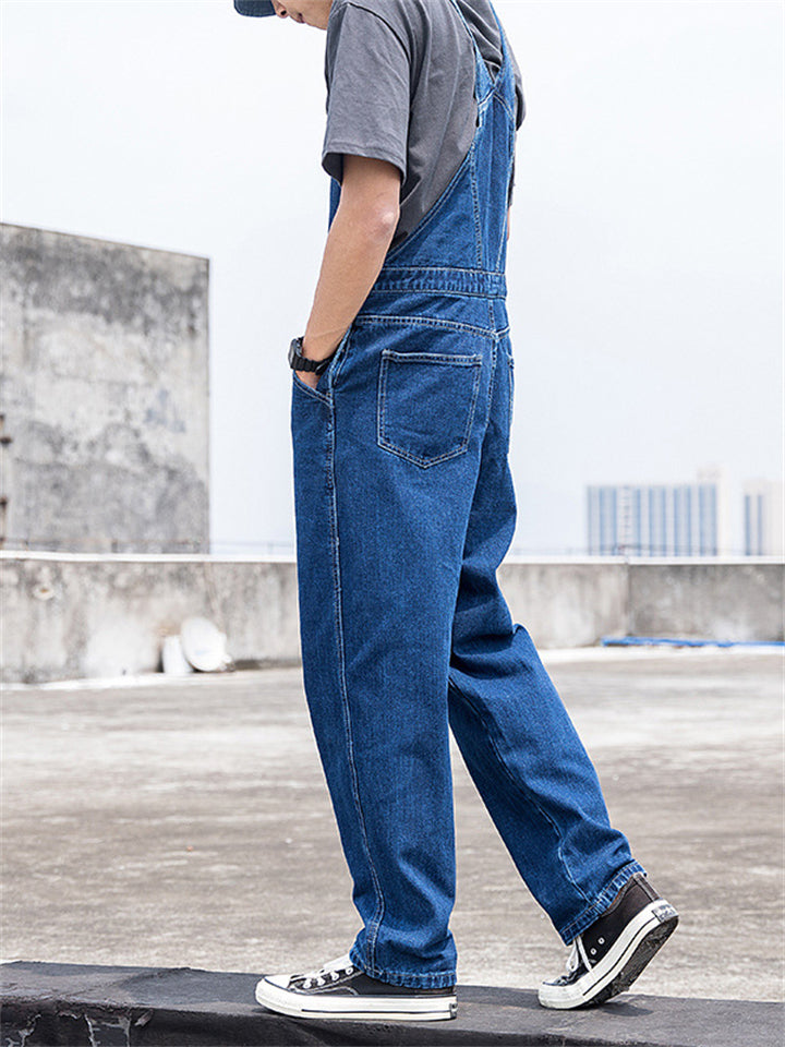 Men's Retro Solid Color Drawstring Loose Denim Pants