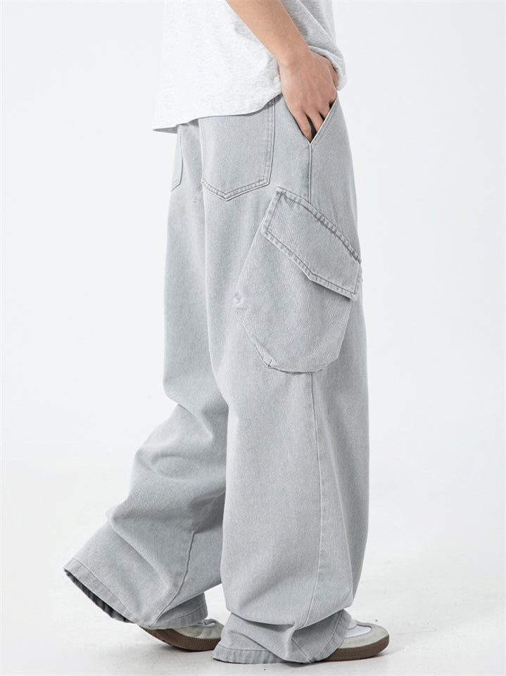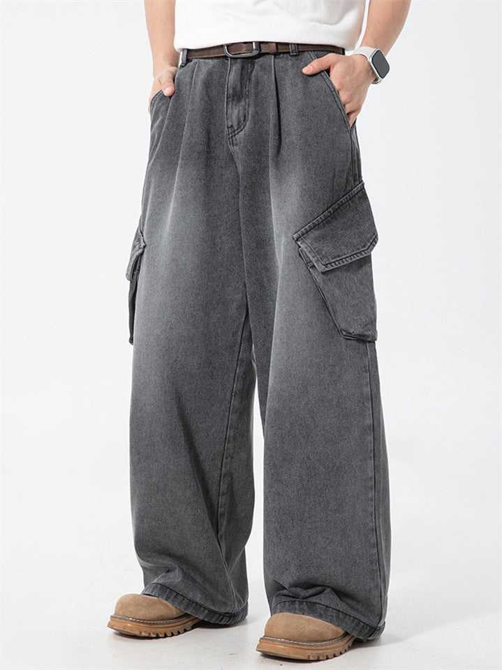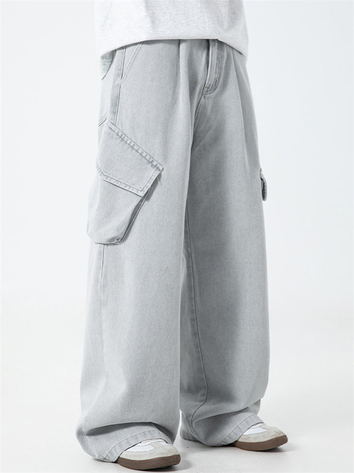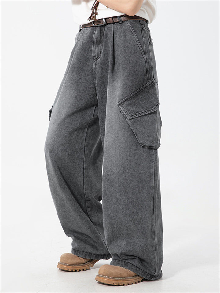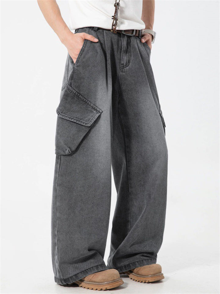 High Street Casual Patchwork Pockets Cargo Jeans for Men