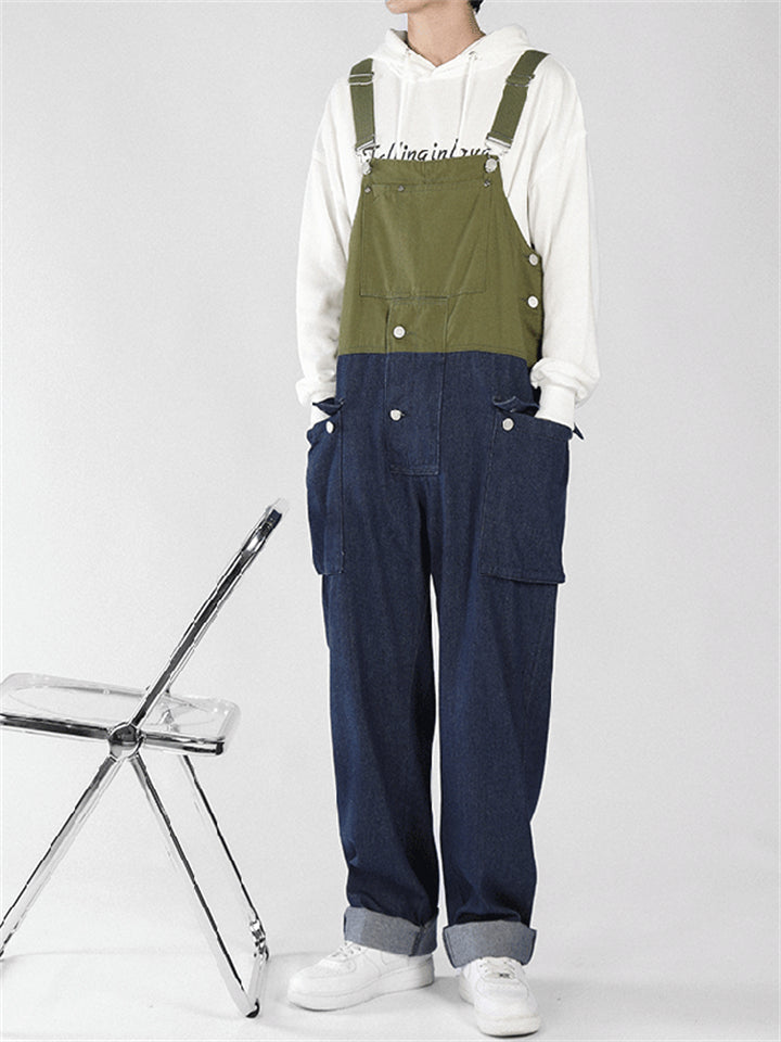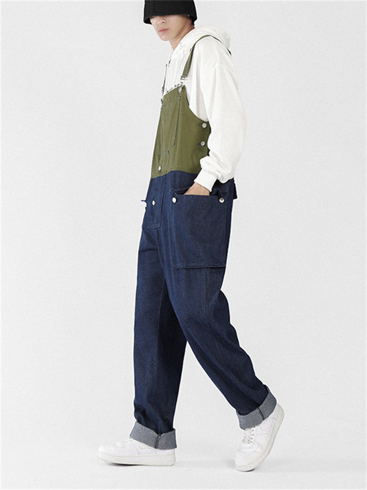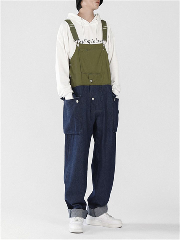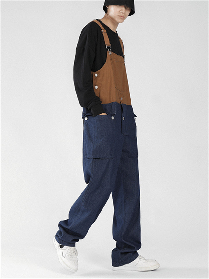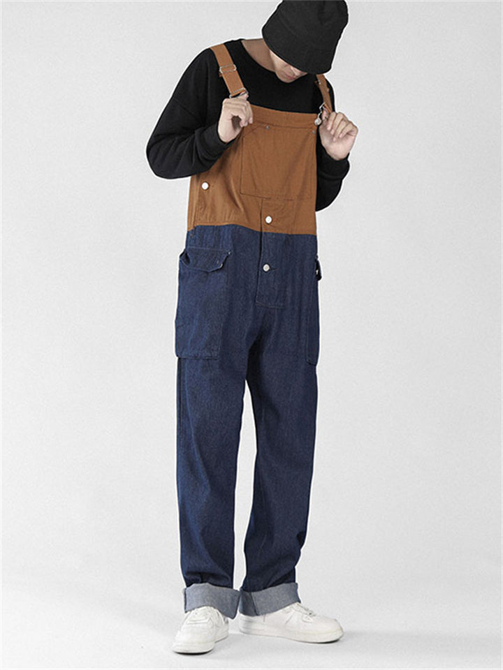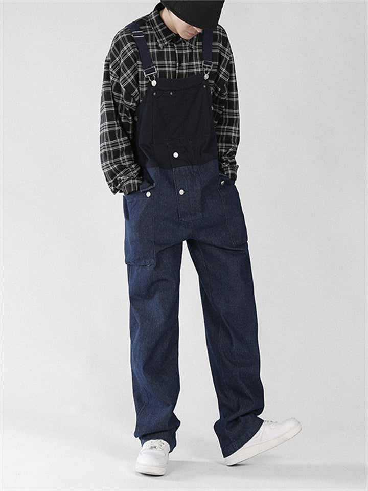 Men's Fashion Leisure Contrast Color Denim Overalls