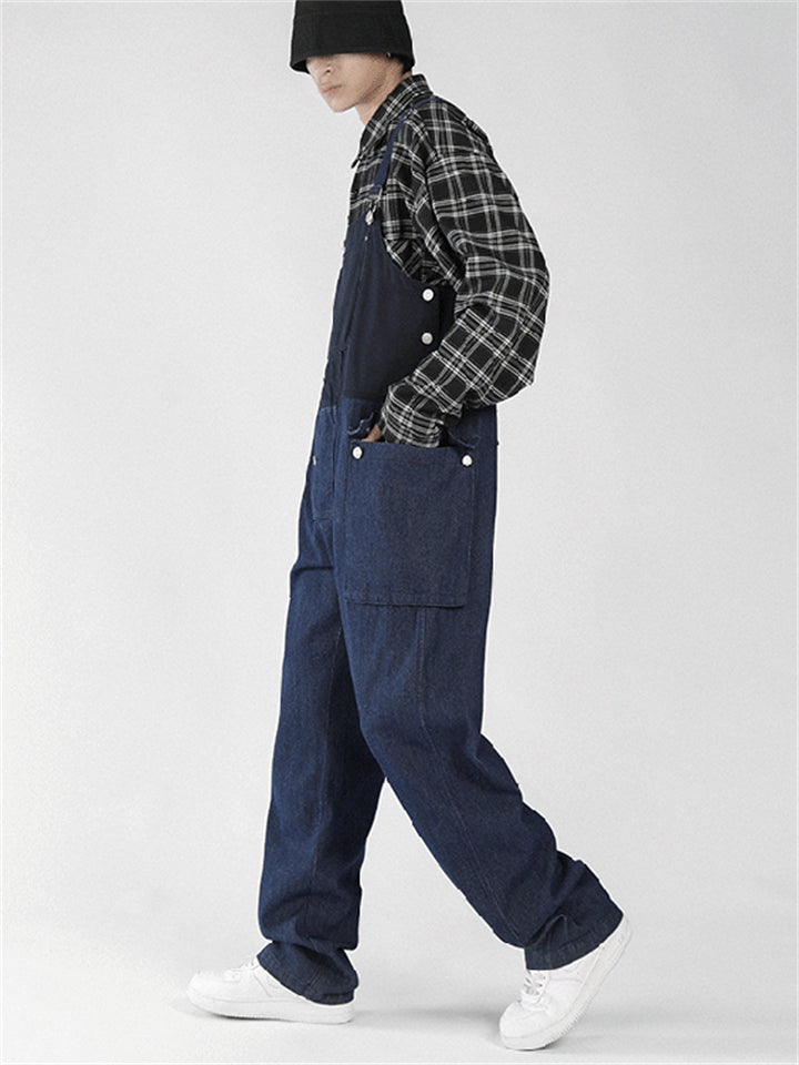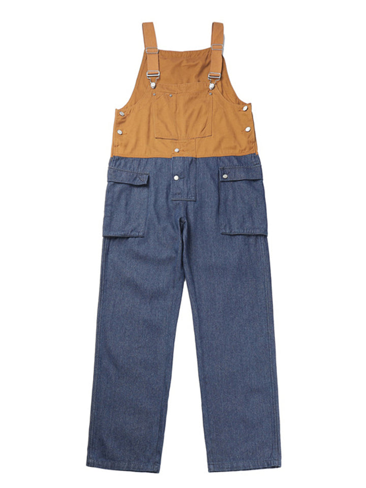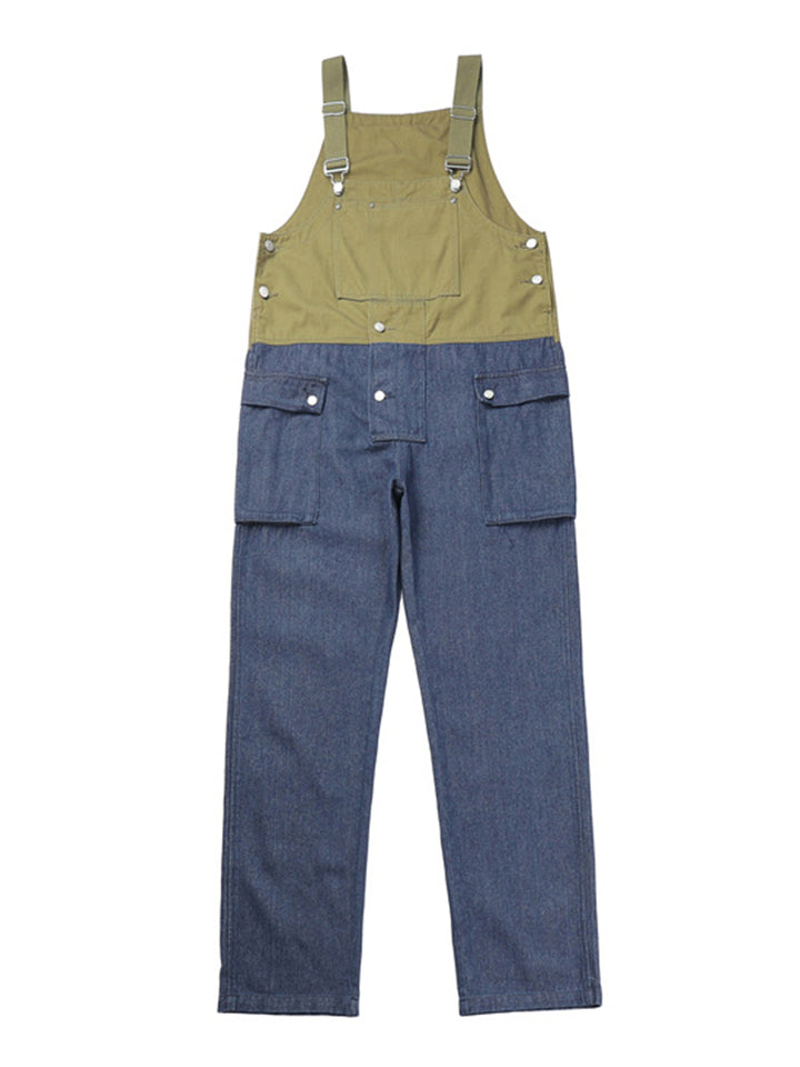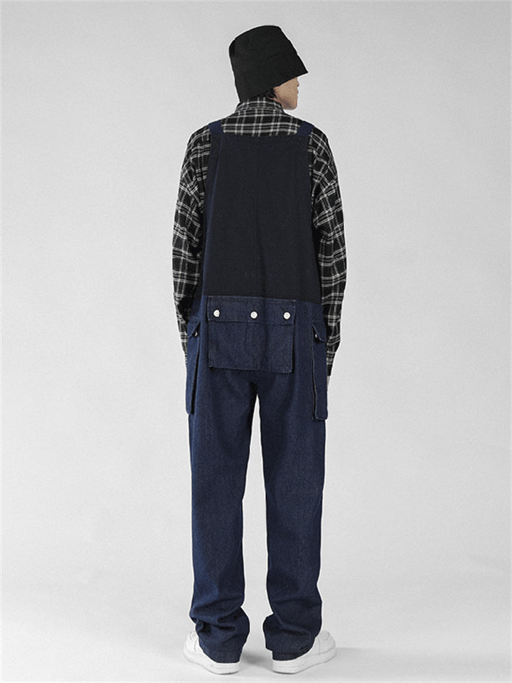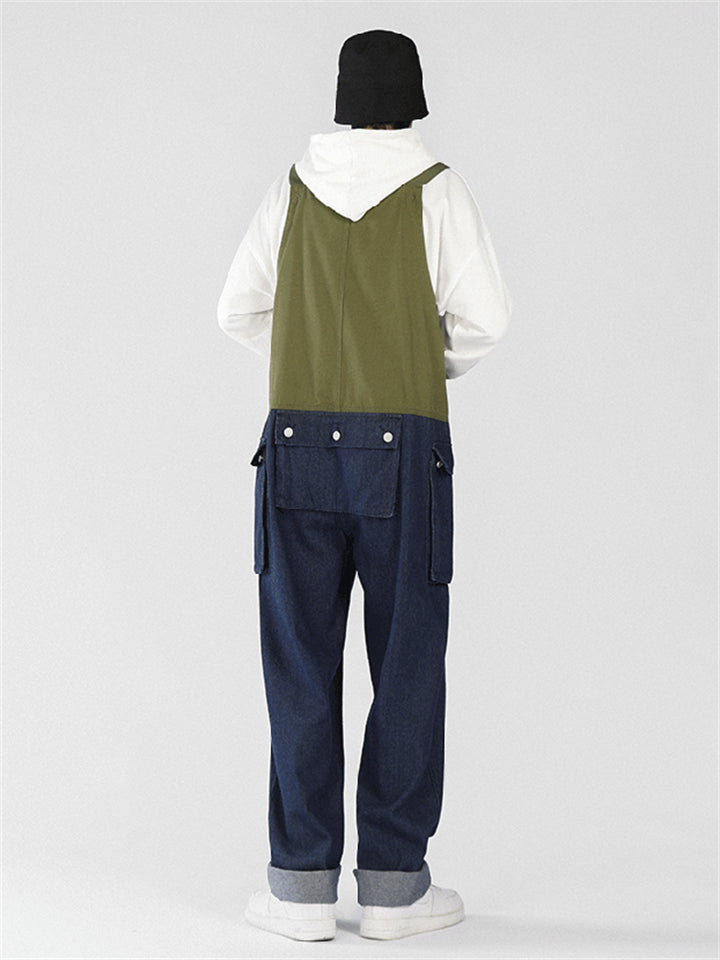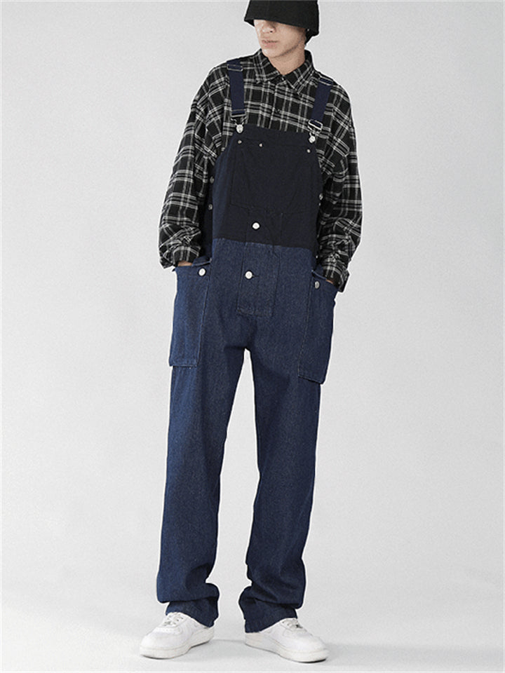 Men's Fashion Leisure Contrast Color Denim Overalls